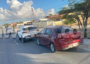 Diahuebs mainta a drenta informe di un accidente banda di Isla di Oro. Mesora a dirigi un patruya na e sitio. Na yegada di e patruya a bin compronde cu chauffeur di KIA cora lo no a regula velocidad ni mantene distancia y a dal tras di un KIA SUV blanco. Afortunadamente ningun persona a resulta herida.