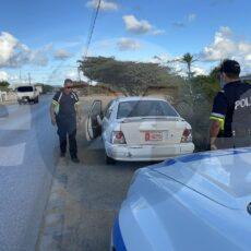 Chauffeur yegando cu velocidad halto a bay dal riba auto para na crusada y riba un baranca
