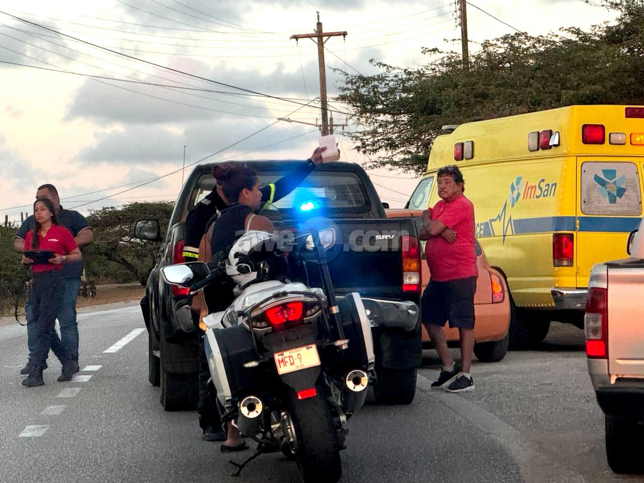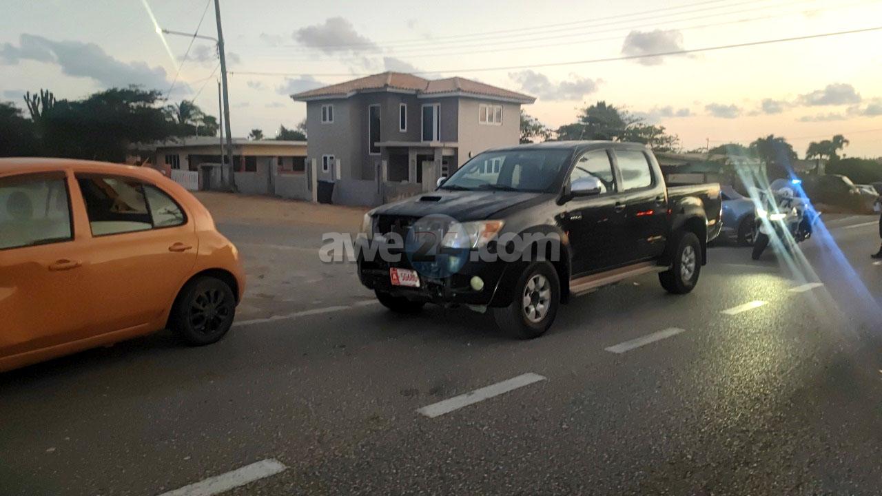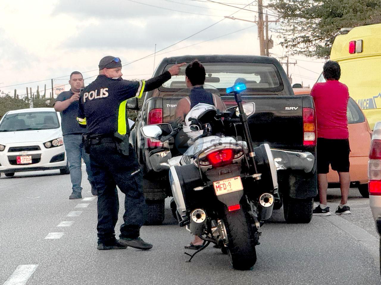 Diaranson atardi a drenta informe di un accidente cu hende levemente herida na Blumond, mesora a dirigi tanto polis como ambulans na e sitio. Na yegada di e patruya a bin compronde cu aki ta trata di un accidente unda e dama chauffeur cu baby den auto a sali sin duna preferencia na un pick-up y nan a dal den otro. Como cu den e March tabata tin un baby aden y e mama y nan a resulta levemente herida y a pidi pa un ambulans bin controla nan na e sitio mes.