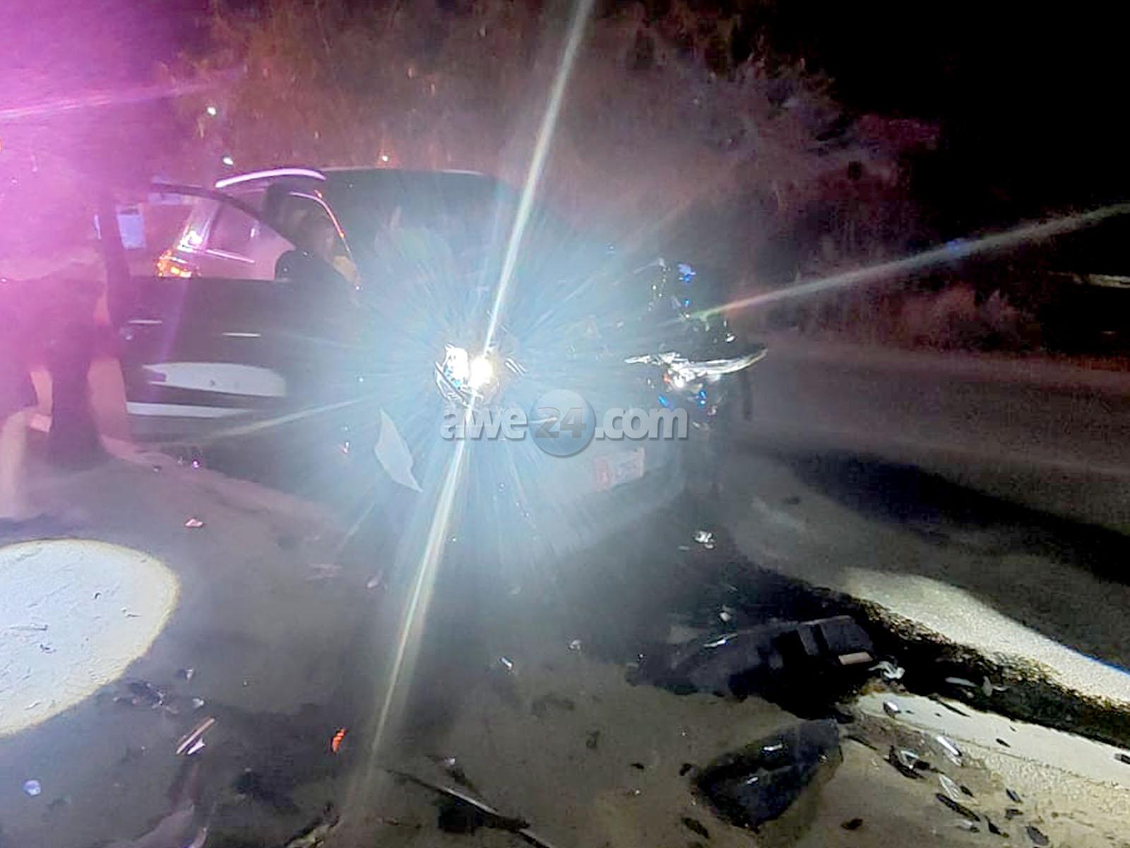Diahuebs anochi a drenta informe di un accidente cu hende herida na Bushiri, mesora a dirigi tanto polis como ambulans na e sitio. Na yegada di e patruya a bin compronde cu aki ta trata di un accidente unda cu e chauffeur coriendo cu velocidad halto a perde control den e bochtnan y a bay dal basta fuerte riba un auto contrario. Debi na e fuerte impacto algun persona a resulta herida. Na yegada di e ambulans nan a atende e personanan herida.