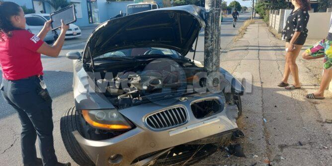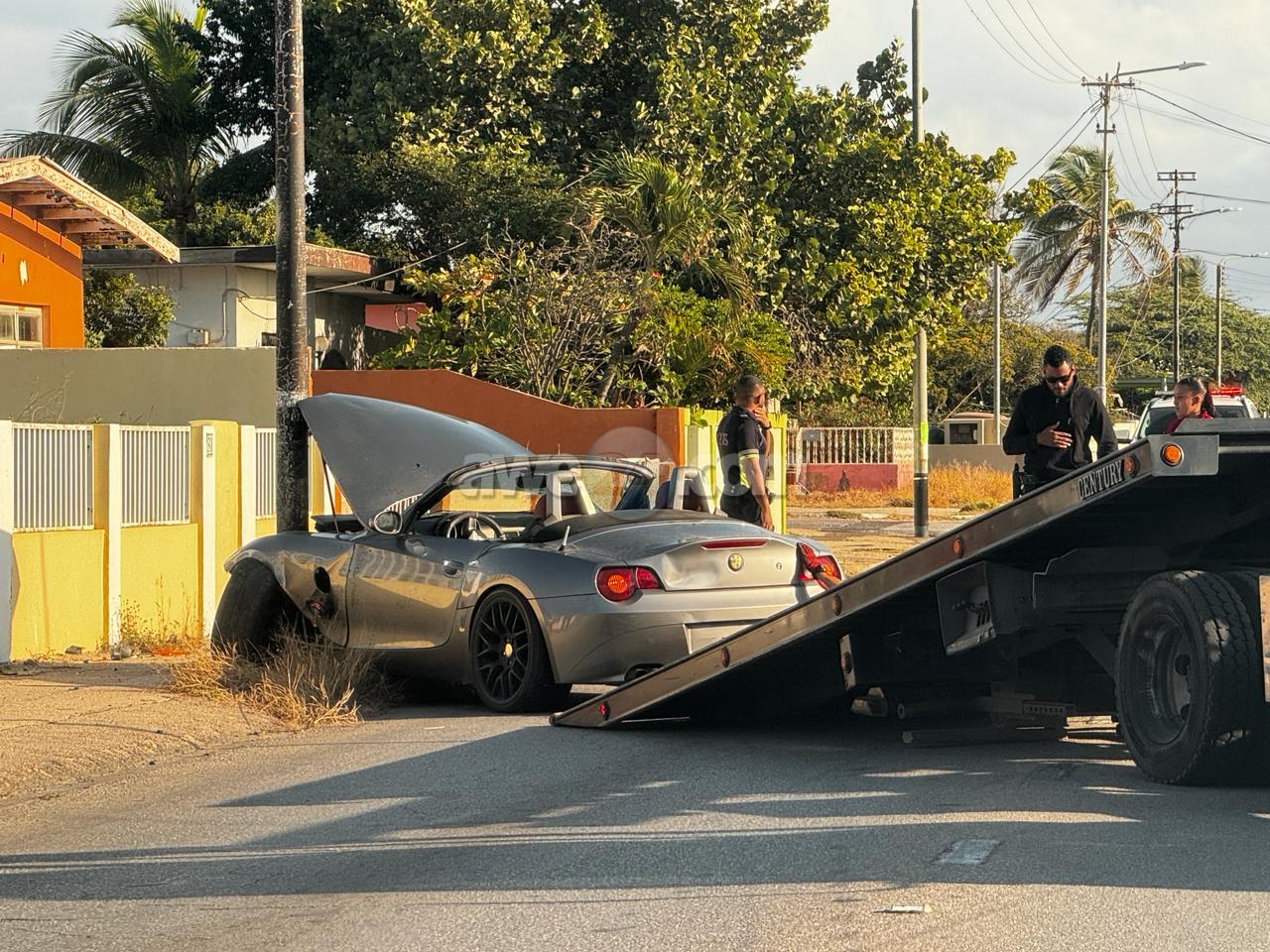 Diadomingo mainta a drenta informe di un accidente na Driemasterstraat, mesora a dirigi un patruya na e sitio. Na yegada di e patruya a bin encontra cu un B.M.W. Z4 color grijs sin plachi number na werki kibra riba un palo di lus. E chauffeur no a ricibi ningun herida. E chauffeur a declara di a coy e auto sin cu e doño sa y a bay plam’e riba un palo di lus. Polis a confisca e vehiculo pa mas investigacion.