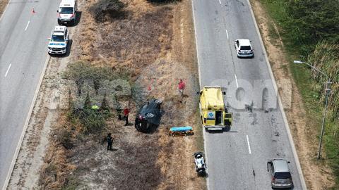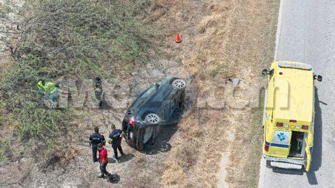 Diadomingo mainta a drenta informe di un accidente cu hende herida riba Sasakiweg, mesora a dirigi tanto polis como ambulans na e sitio. Na yegada di e patruya a bin compronde cu aki ta trata di un accidente unda cu e chauffeur a indica cu ela pega soño baha caminda y a kentel den banda. Door di e impacto e chauffeur a resulta herida. na yegada di e ambulans nan a atende e victima a transporte pa hospital.
