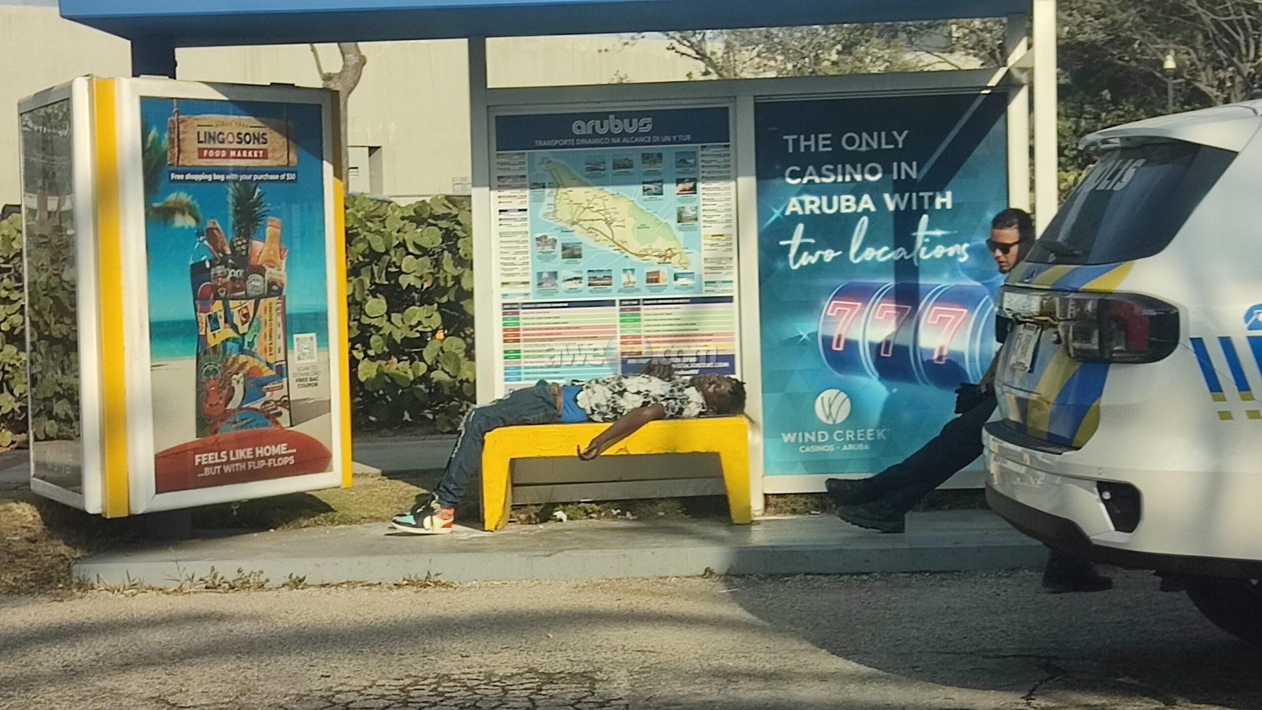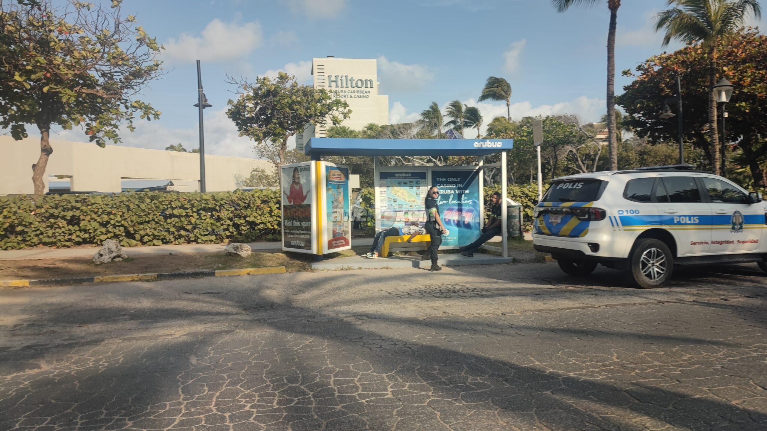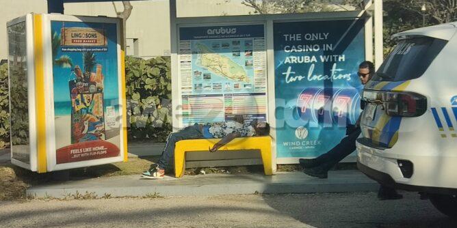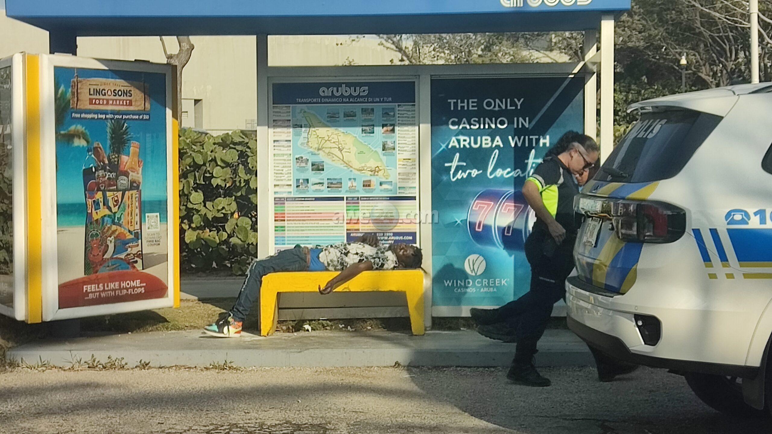 Dialuna mainta a drenta informe di cu tin un persona drumi na e parada di bus na Palm Beach dilanti di Hilton, mesora a dirigi un patruya na e sitio. Na yegada di e patruya a bin compronde cu aki ta trata di un persona basta cansa y bebi cu casi ni por a para riba su propio pia. Mirando su condicion polis a solicita e vehiculo di transporte pa asina hib’e warda di polis.