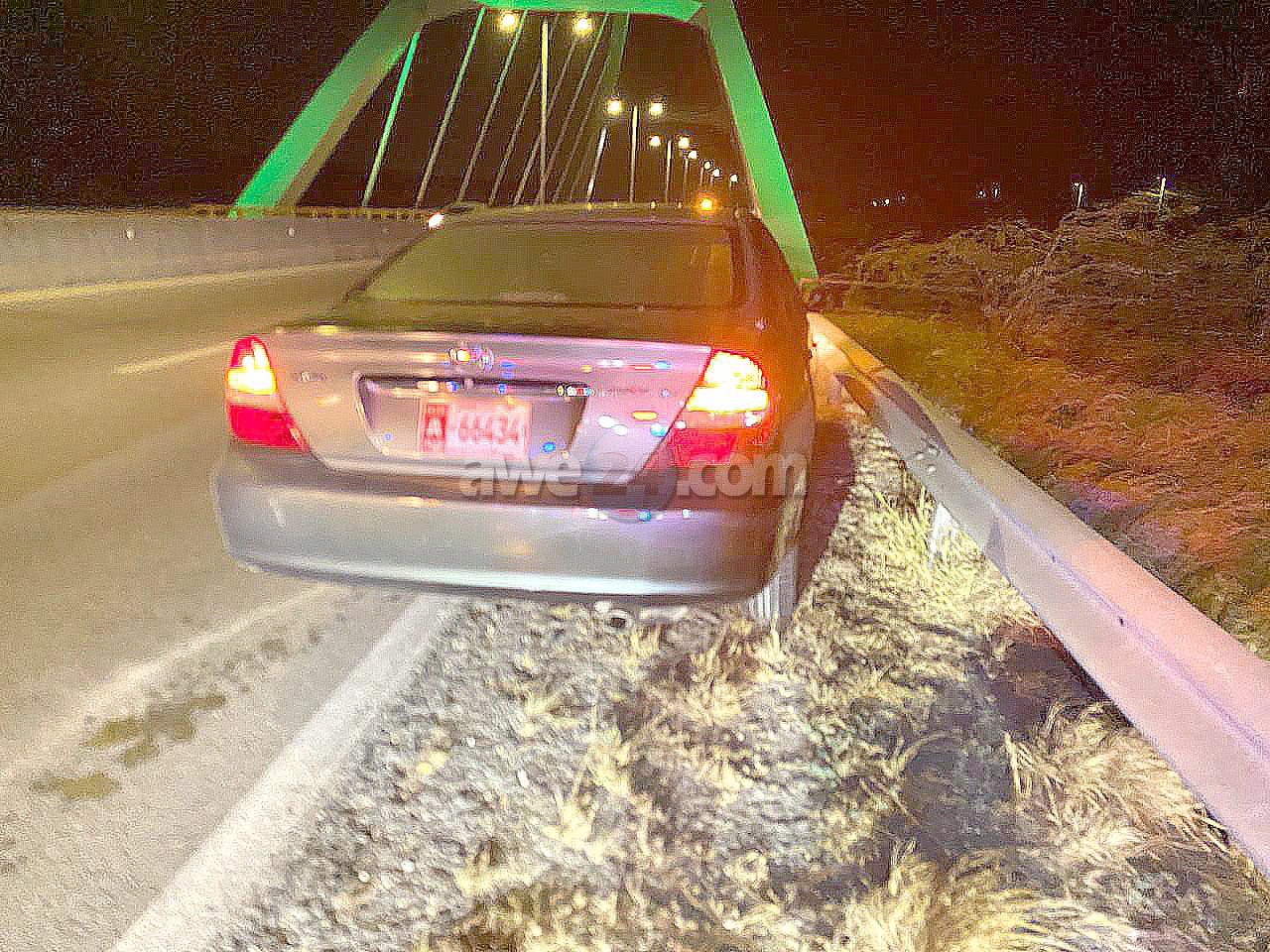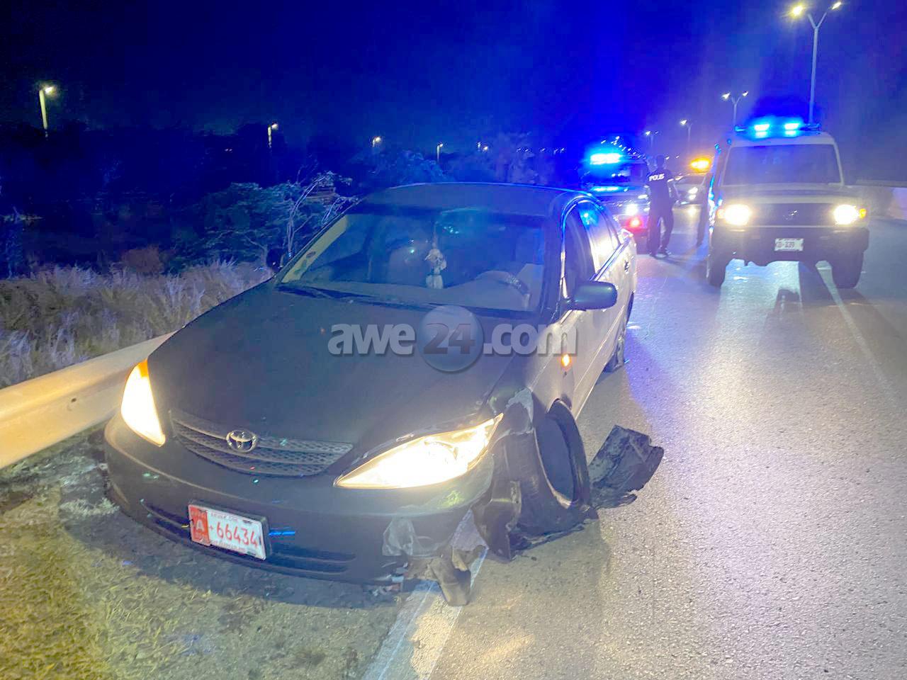 Diadomingo madruga a drenta informe di un accidente pariba di e rotonde di Balashi, mesora a dirigi un patruya na e sitio. na yegada di e patruya a bin compronde cu aki ta trata di un chauffeur cu lo a perde control y a bay dal riba e vangrailsnan. Polis a test e chauffeur y esaki a surpasa e limite permiti y a detene.