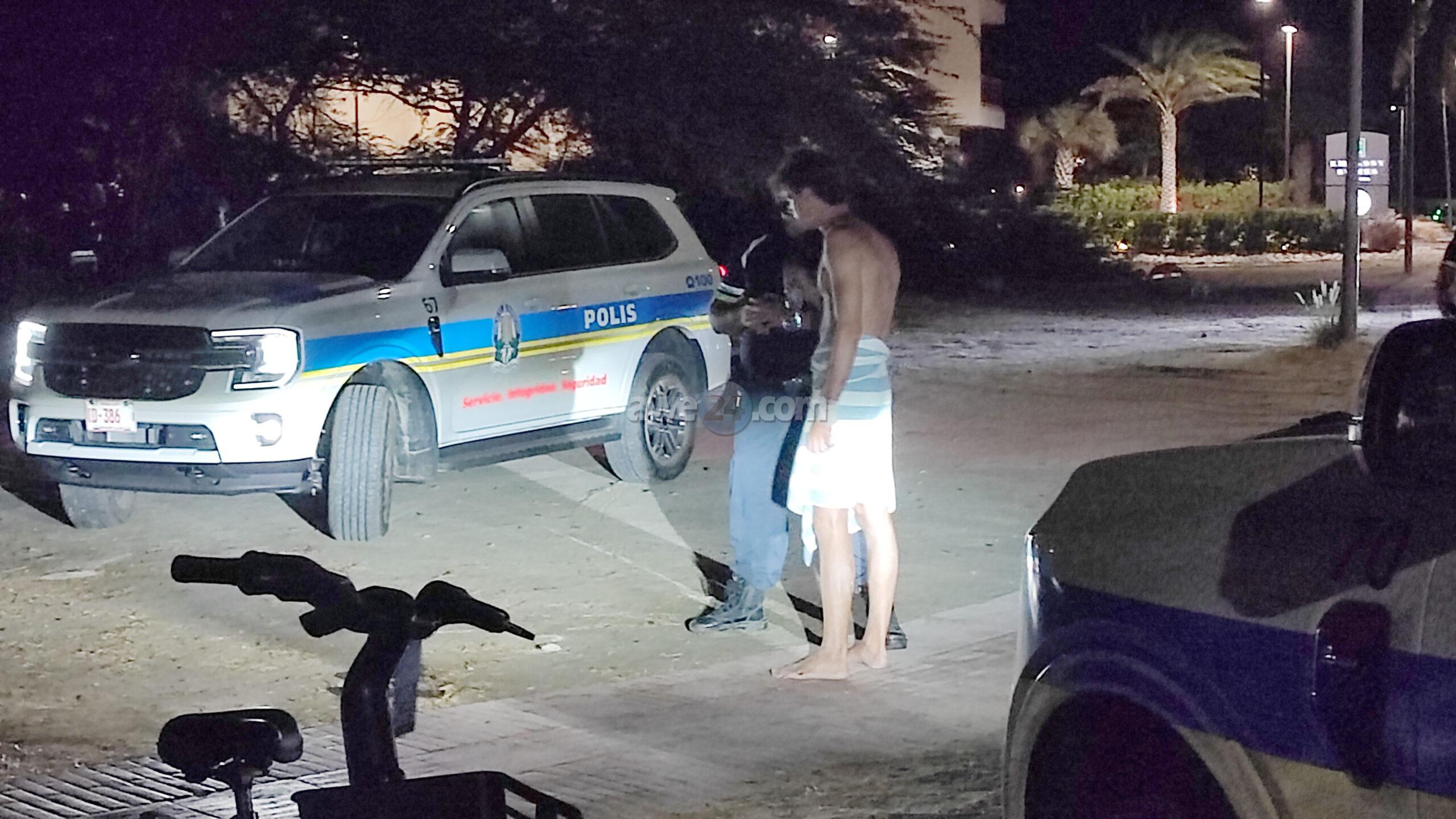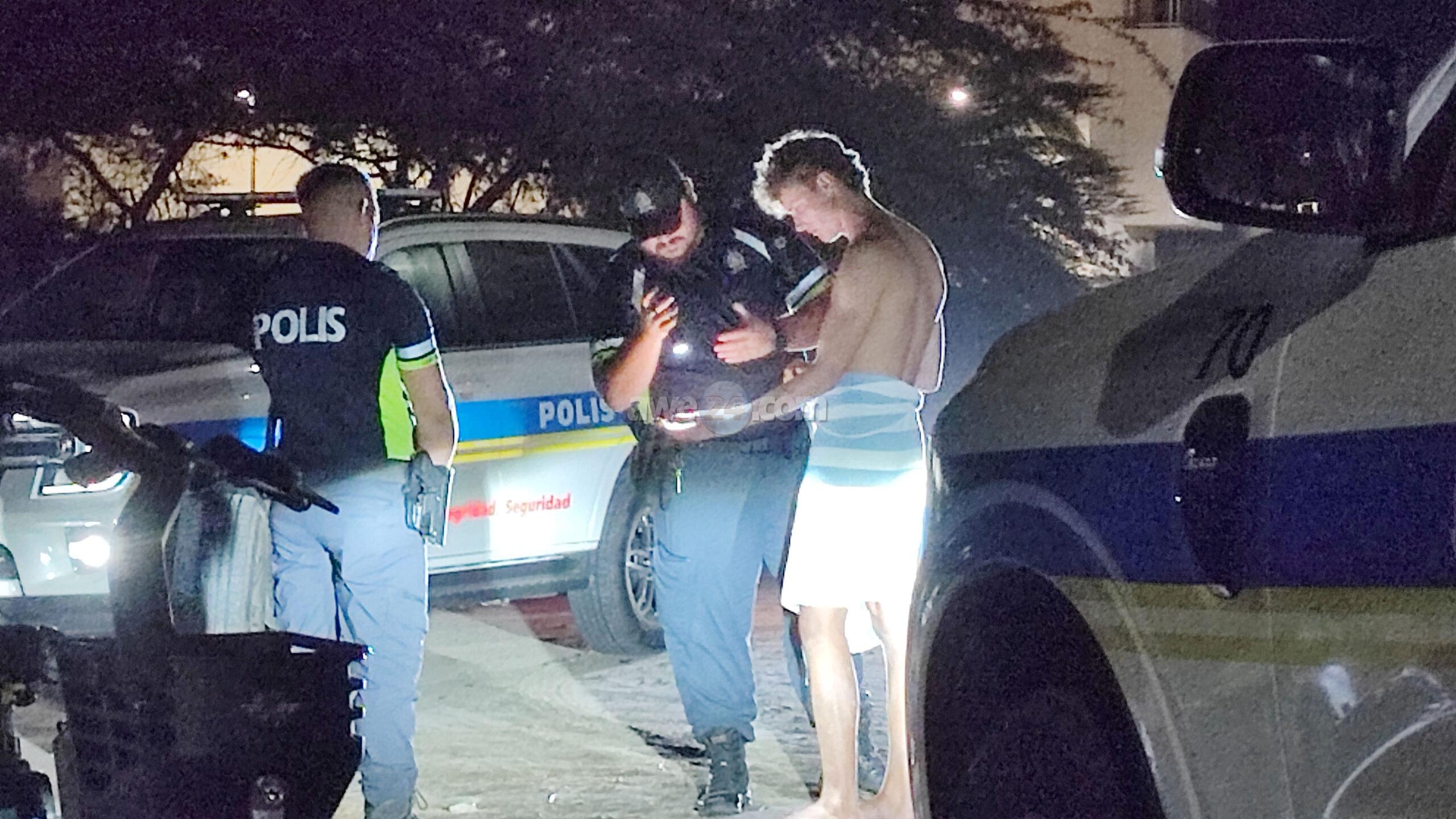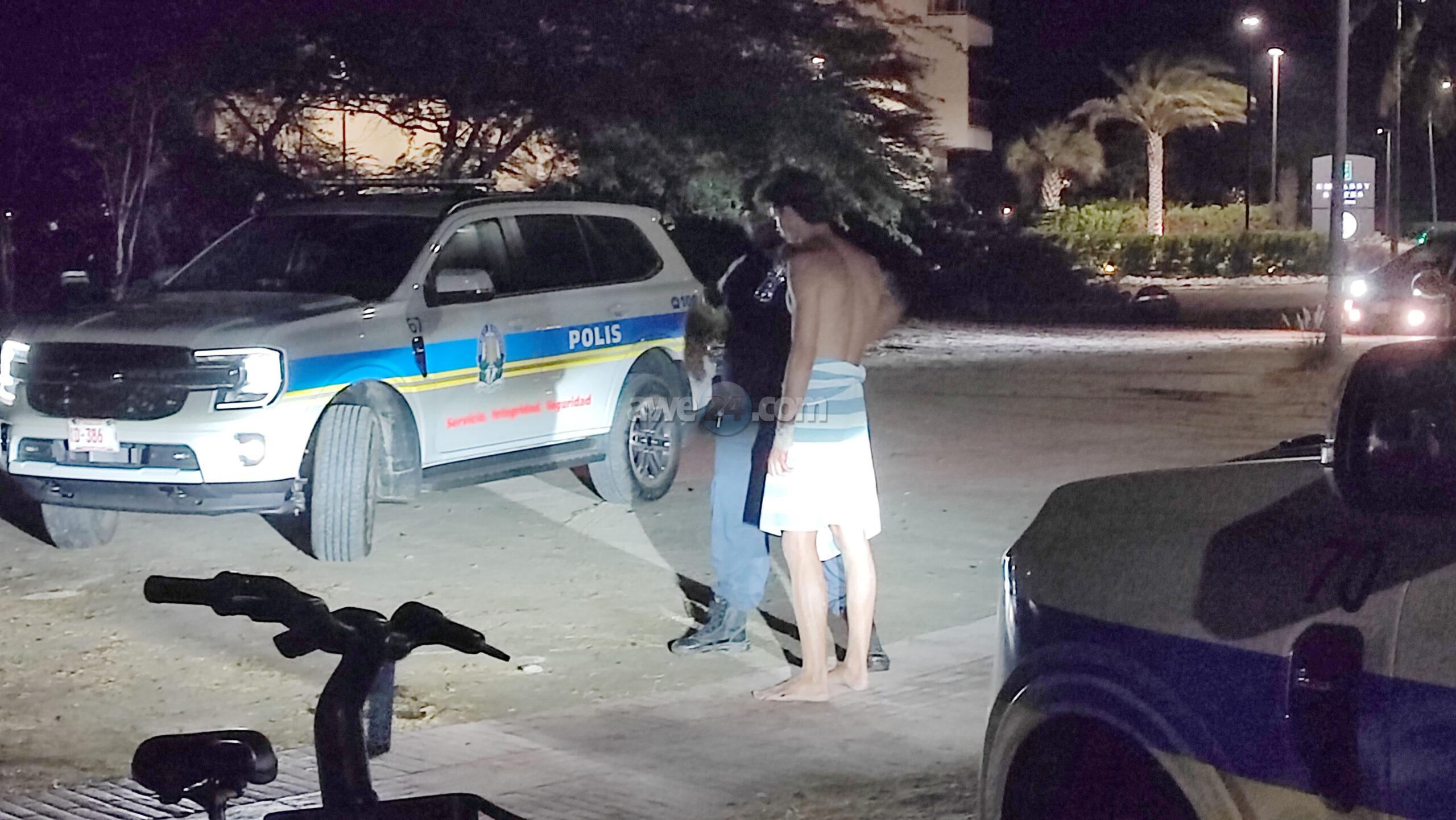Diadomingo madruga a drenta informe di cu tin un hulandes europeo canando cu unicamente un jockey bisti cu serbete lora rond y cu un corta na su man banda di e hotelnan na Palm Beach, mesora a dirigi patruya na e sitio. Na yegada di e patruya banda di Divi phoenix eynan a bin topa cu e persona manera describi polis a want’e y a papia cun’e y a dune un lift pa su cas na Babijn.