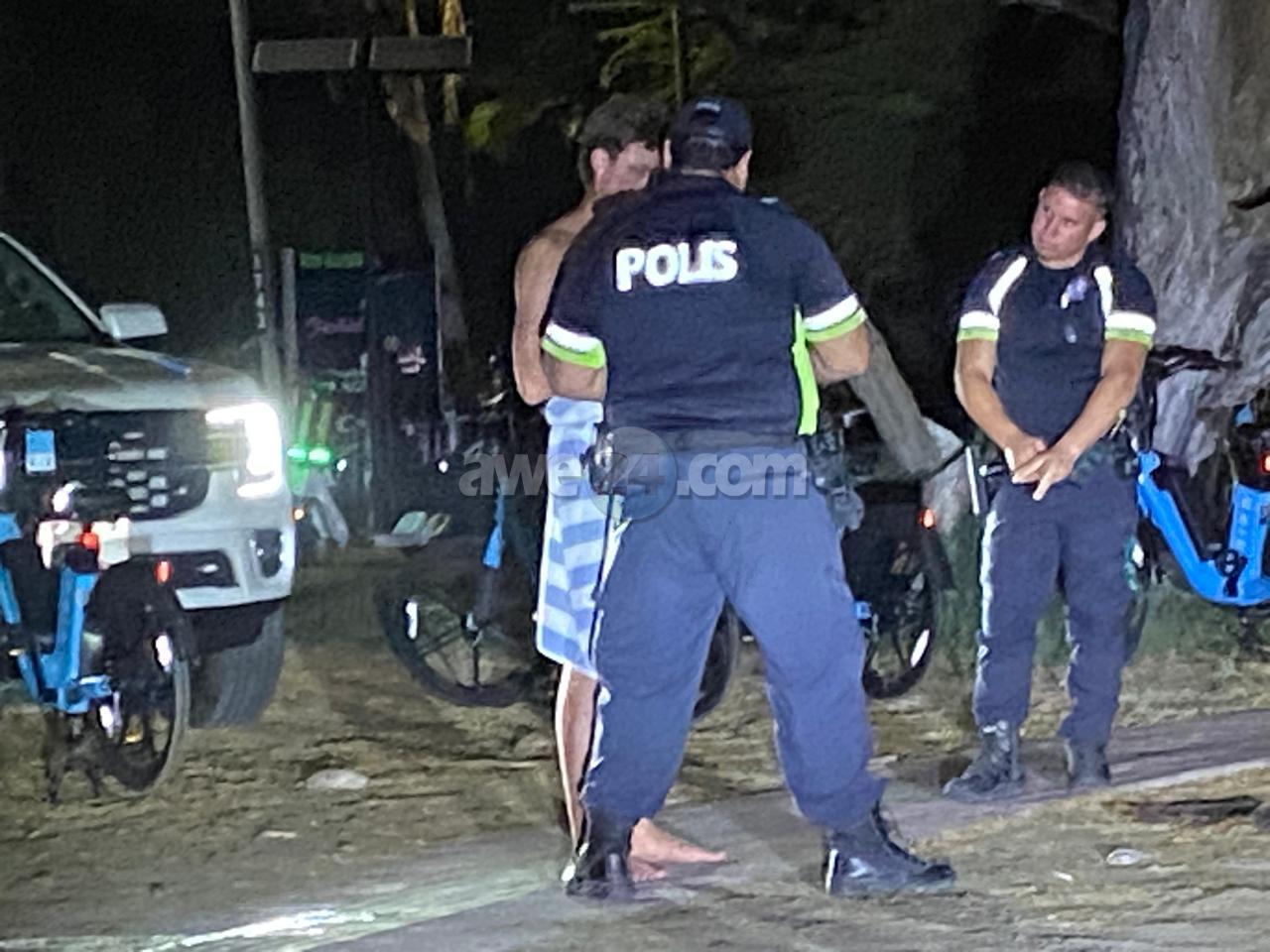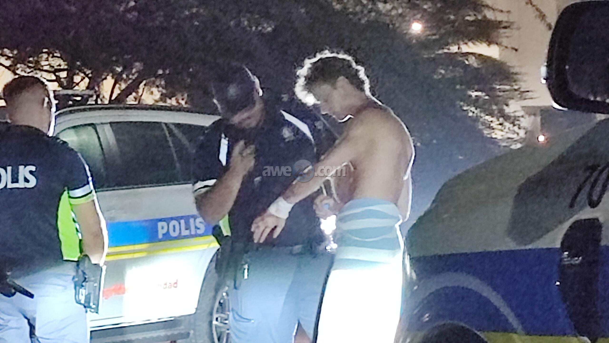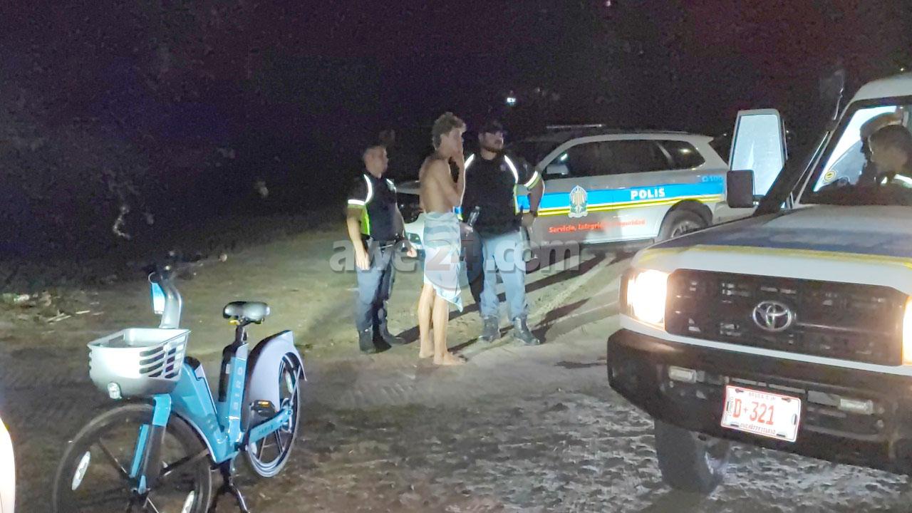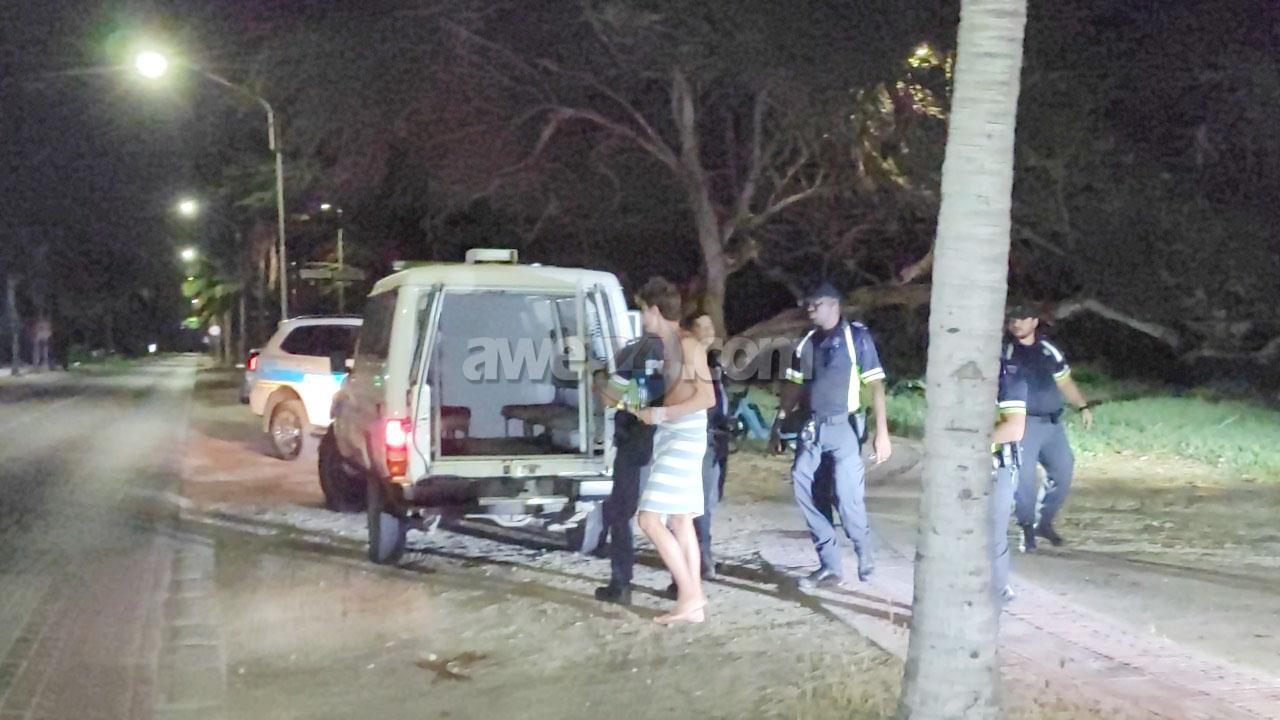 Diadomingo madruga a drenta informe di cu tin un hulandes europeo canando cu unicamente un jockey bisti cu serbete lora rond y cu un corta na su man banda di e hotelnan na Palm Beach, mesora a dirigi patruya na e sitio. Na yegada di e patruya banda di Divi phoenix eynan a bin topa cu e persona manera describi polis a want’e y a papia cun’e y a dune un lift pa su cas na Babijn.