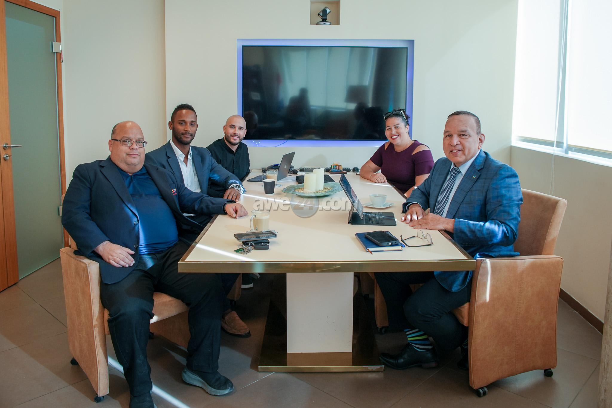 ORANJESTAD: Recientemente, Minister di Enseñansa y Deporte Endy Croes a reuni cu representante di FIFA den e area di Caribe Sr. Jordan Victoire, presidente di Arubaanse Voetbal Bond (AVB) Sr. Randolf Lacle y secretaria general Sra. Dyane Wiersma. Durante e reunion a dialoga tocante un proyecto grandi cu tanto AVB, FIFA y Gobierno di Aruba como stakeholder ta sostene. Dentro di poco, shete (7) veld di futbol na Aruba lo haya yerbe artificial. A repasa kico ta e obligacionnan di Gobierno di Aruba pa e proyecto aki. A base di e rekisitonan di FIFA y AVB, a haci un escogencia di e shete (7) veldnan y a reuni cu cada un di nan caba pa cuadra loke nan tin cu haci. Ta planifica pa FIFA bin Aruba den e luna di september di e aña aki pa firma un acuerdo cu e shete (7) clubnan, AVB y Gobierno di Aruba, pa asina inicia cu e proyecto aki oficialmente. Den e di tres kwartaal di e aña aki, lo cuminsa mira movecion riba e veldnan aki. Un bon reunion, unda a intercambia informacion importante pa e mundo di futbol.