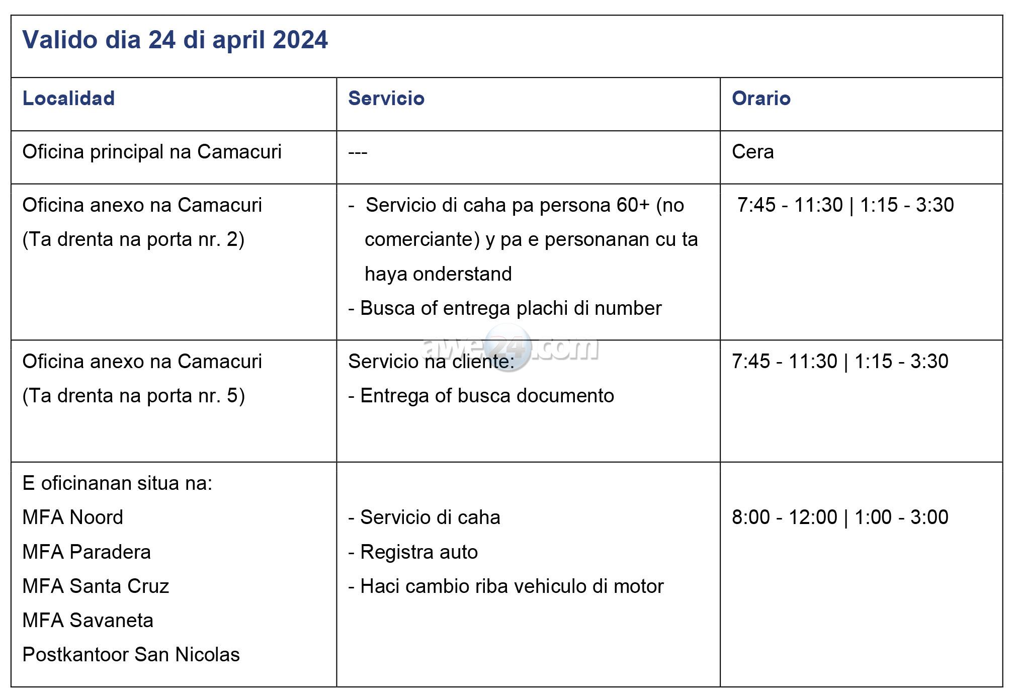 ORANJESTAD – Departamento di Impuesto ta anuncia cu su oficina principal na Camacuri lo ta cera pa