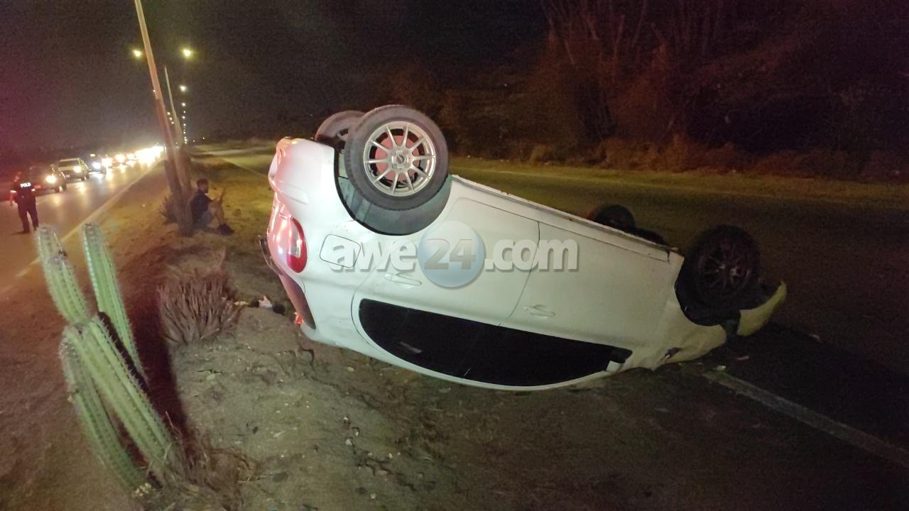 Diabierna anochi a drenta informe di un accidente cu hende herida na Ser’i Teishi, mesora a dirigi tanto polis como ambulans na e sitio. Na yegada di e patruya a bin compronde cu aki ta trata di un accidente unda e chauffeur di e Nissan March a desvia pa e miobra di un auto pasando e y a pon’e perde control bolter bay cay otro banda di caminda. Debi na e impacto y boltermento tanto e chauffeur como un mucha ocupante a resulta herida. Na yegada di e ambulans nan a atende e victimanan na e sitio mes.