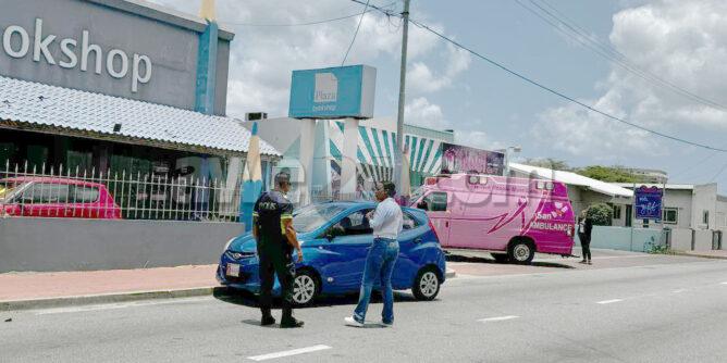Diamars merdia a drenta informe di un accidente cu hende herida na Avenida Milo Croes, mesora a dirigi tanto polis como ambulans na e sitio. Na yegada di e patruya a bin compronde cu aki ta trata di un accidente unda e chauffeur di un Hyundai Tucson a haya chens pa sali for di banda robes pero e no a mira e auto ta bini di banda drechi y ela sali toch sin a duna preferencia y a ocasiona e accidente. Debi na e impacto un persona a resulta levemente herida. Na yegada di e ambulans nan a atende e victima na e sitio mes.