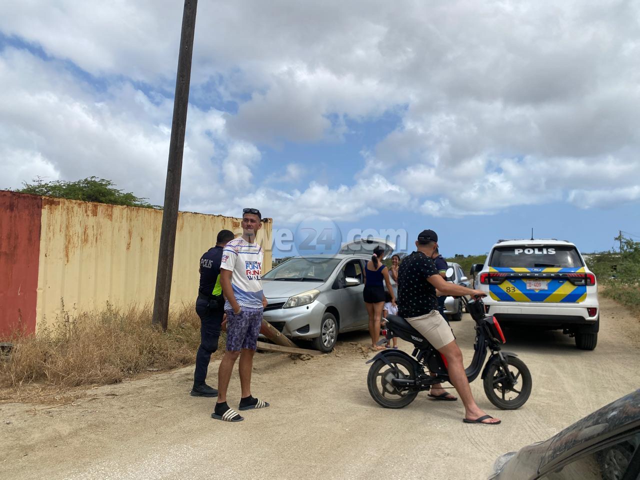 Diaranson atardi a drenta informe di un accidente na e veld pazuid di e schoolnan na Tanki Leendert, mesora a dirigi un patruya na e sitio. Na yegada di e patruya a bin compronde cu un dama chauffeur a bay dal riba un palo di sosten na e veld pazuid di e schoolnan. Aki ta trata di un accidente singular y tur cos ta na ordo. Forensys a bini y a atende e accidente aki cu ayudo di algun persona a logra saca e auto cu a keda pega.