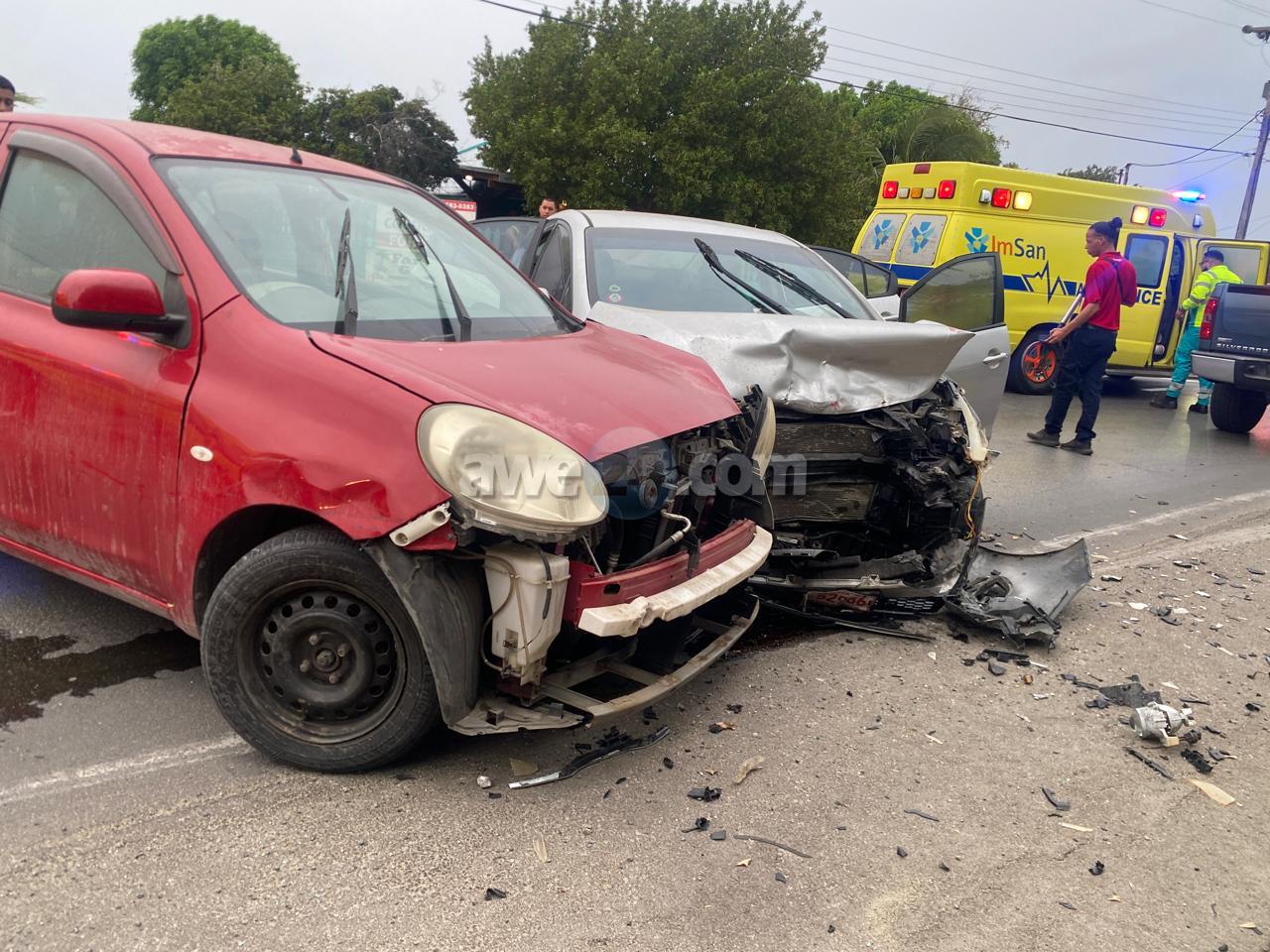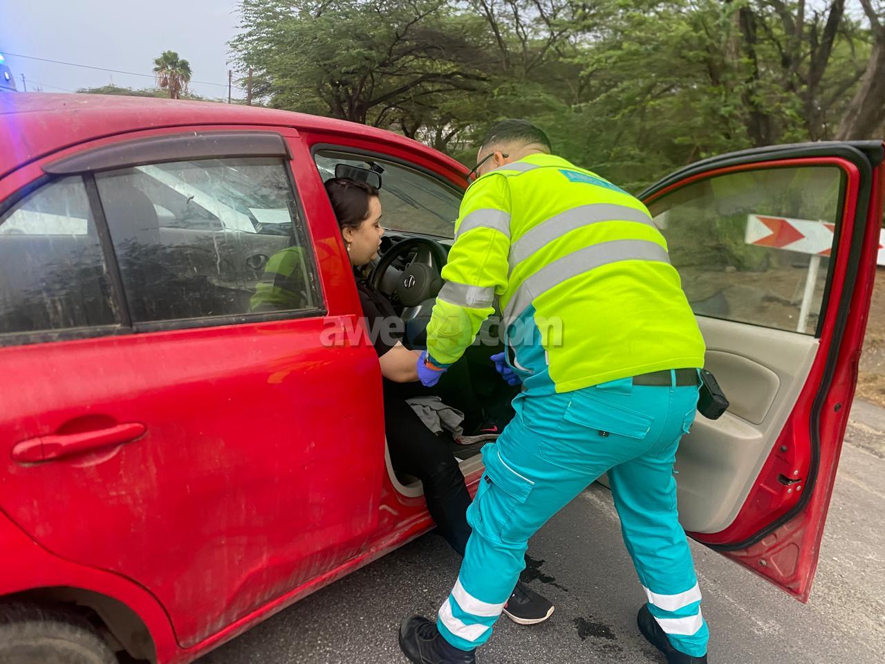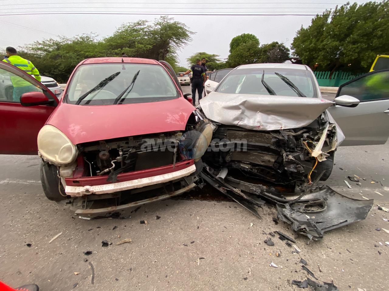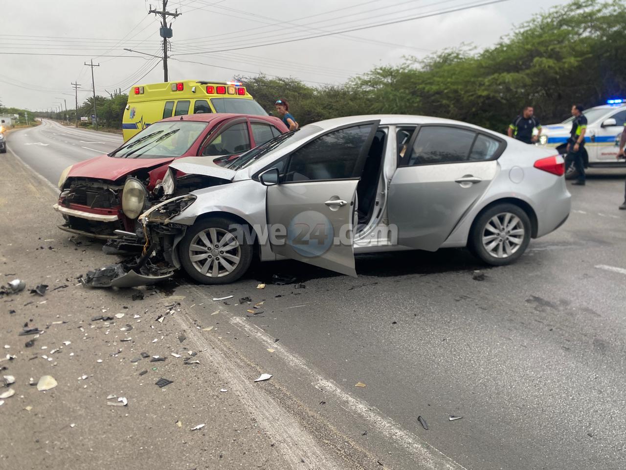 Diabierna mainta a drenta informe di un accidente cu hendenan herida na e crusada na Pos Abao, mesora a dirigi tanto polis como ambulansnan na e sitio. Na yegada di e patruya a bin compronde cu aki ta trata di un accidente unda e dama chauffeur di un Nissan March a sali dilanti sin duna preferencia na un Kia Cerato biniendo for di pabao y nan a dal den otro. Debi na e fuerte impacto ambos chauffeur femenino a resulta herida. Nan yegada di e 2 ambulansnan nan a atende ambos victima y a transporta nan pa hospital.