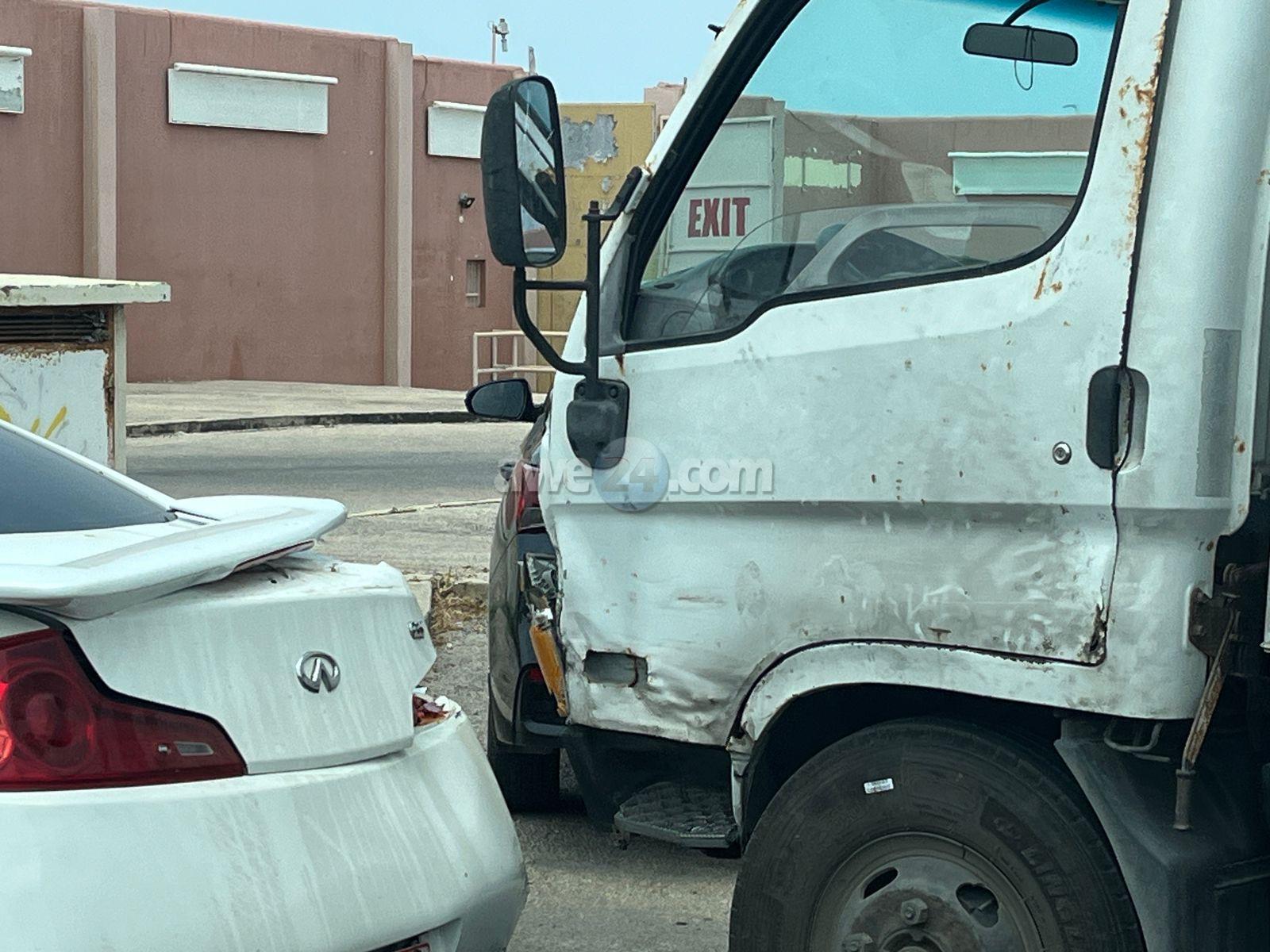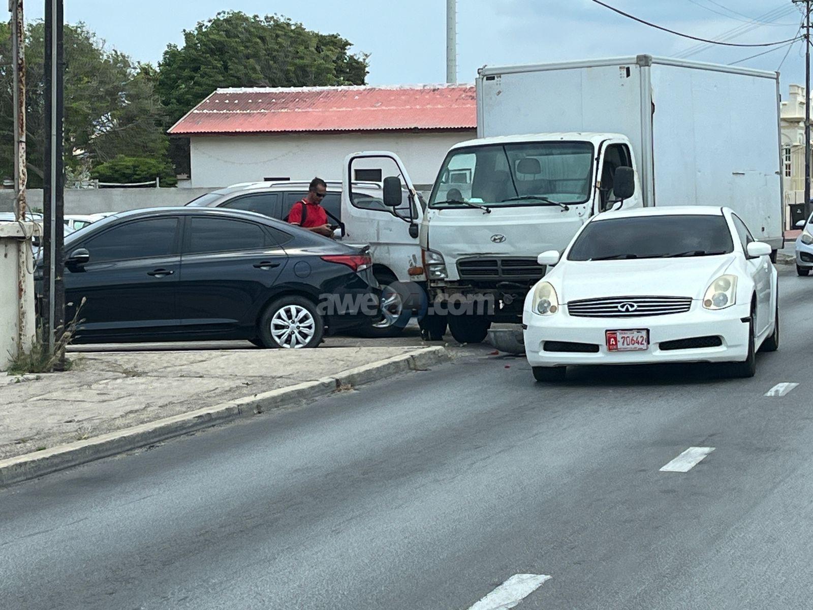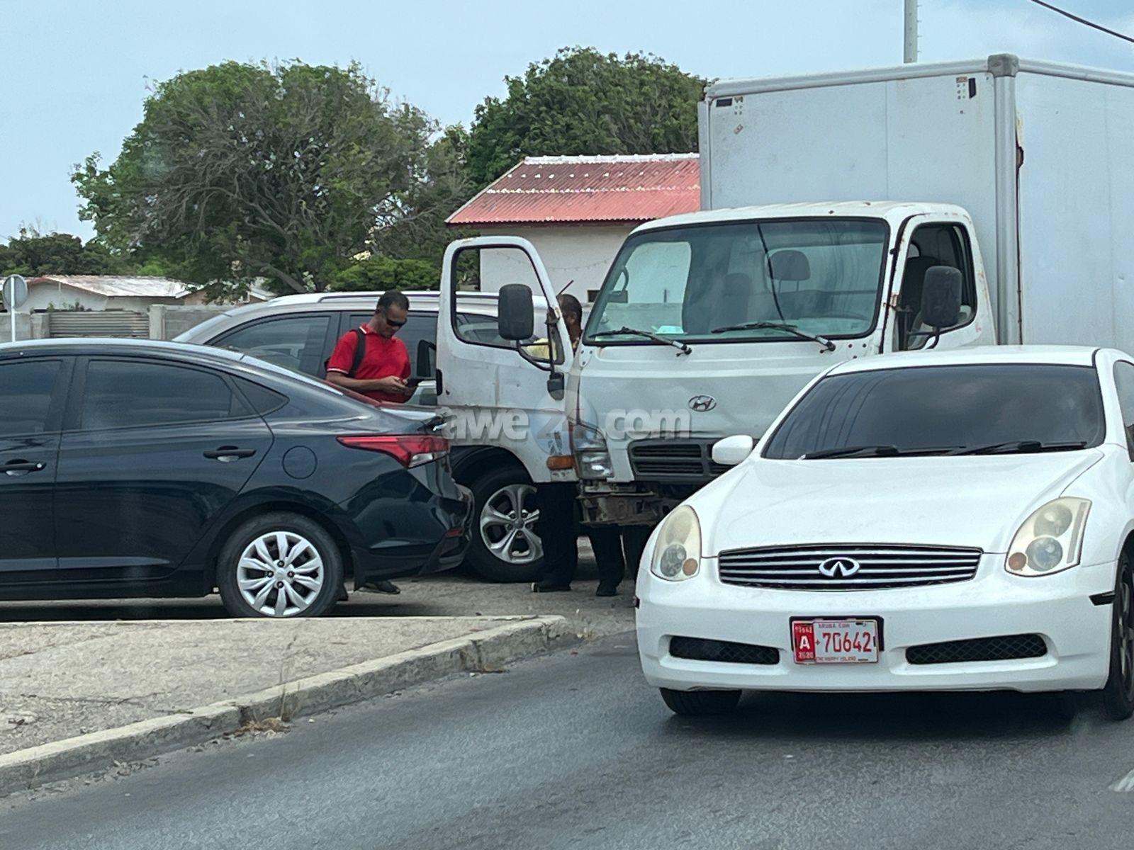 Diabierna mainta a drenta informe di un accidente na Avenida Milio Croes, mesora a dirigi un patruya na e sitio. Na yegada di e patruya a bin compronde cu aki ta trata di un accidente unda e chauffeur di un boxtruck no a regula su velocidad ni a mantene distancia y a bay purba desvia pa e auto su dilanti y a dal e toch y a dal un otro auto staciona tambe. Afortunadamente ningun hende a resulta herida.