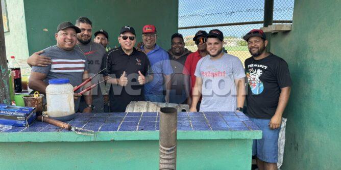 ORANJESTAD: Recientemente, Minister di Enseñansa y Deporte Endy Croes a acudi na e veld di Sabana Grandi den e curason di Santa Cruz, unda cu e ekipo di softball Happy Brothers di Sr. Poy Flanegin tabatin bendemento di BBQ. E meta di esaki tabata pa recauda fondo pa por biaha den e luna di mei pa participa den Copa ABC cu lo tuma luga e aña aki na Sint Maarten. Mirando cu e ticketnan di biahe pa Sint Maarten a bira hopi costoso, e ekipo di Happy Brothers a cuminsa prepara di basta tempo caba pa por representa Aruba den Copa ABC. Minister Endy Croes a pasa duna su aporte na nos atletanan local. Finalmente, e mandatario di Deporte ta desea e hoben atletanan di Happy Brothers hopi exito durante e competencia di Copa ABC na Sint Maarten e siman aki. Cu deseo, disciplina, dedicacion y determinacion ta logra.
