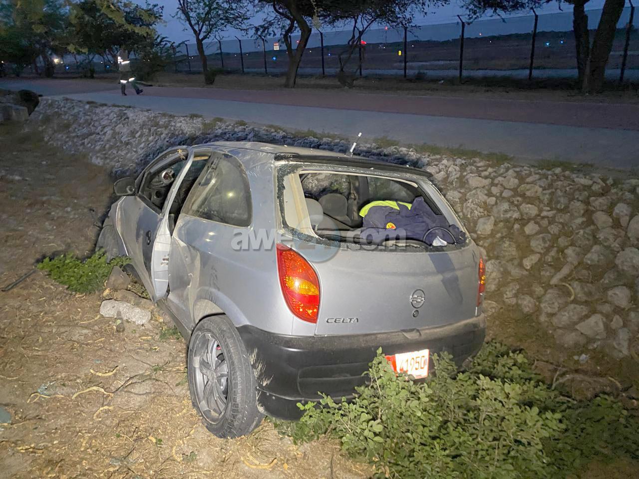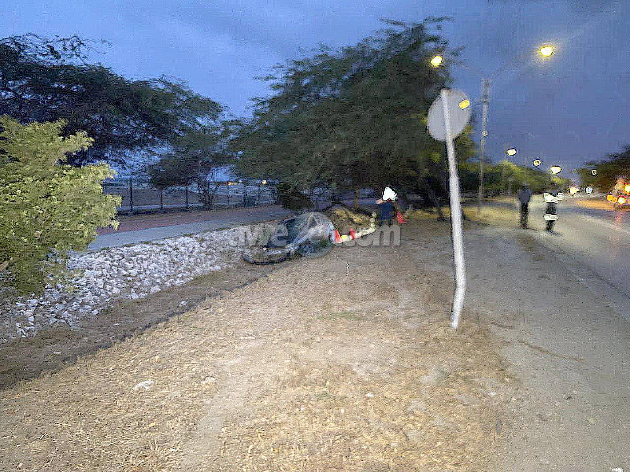 Diahuebs madruga a drenta informe di un accidente cu hende herida na Camacuri, mesora a dirigi tanto polis como ambulans na e sitio. Na yegada di e patruya a bin comprone cu e chauffeur di e Chevrolet Celta a perde control bay banda robes di caminda dal riba borchi trafico sigi bay para te den e rooi. Debi na e impactonan y movecion brutal e chauffeur a resulta herida. Na yegada di e ambulans a djies controla e chauffeur pero e no a ricibi nada di gravedad y ambulans a sigi su caminda.