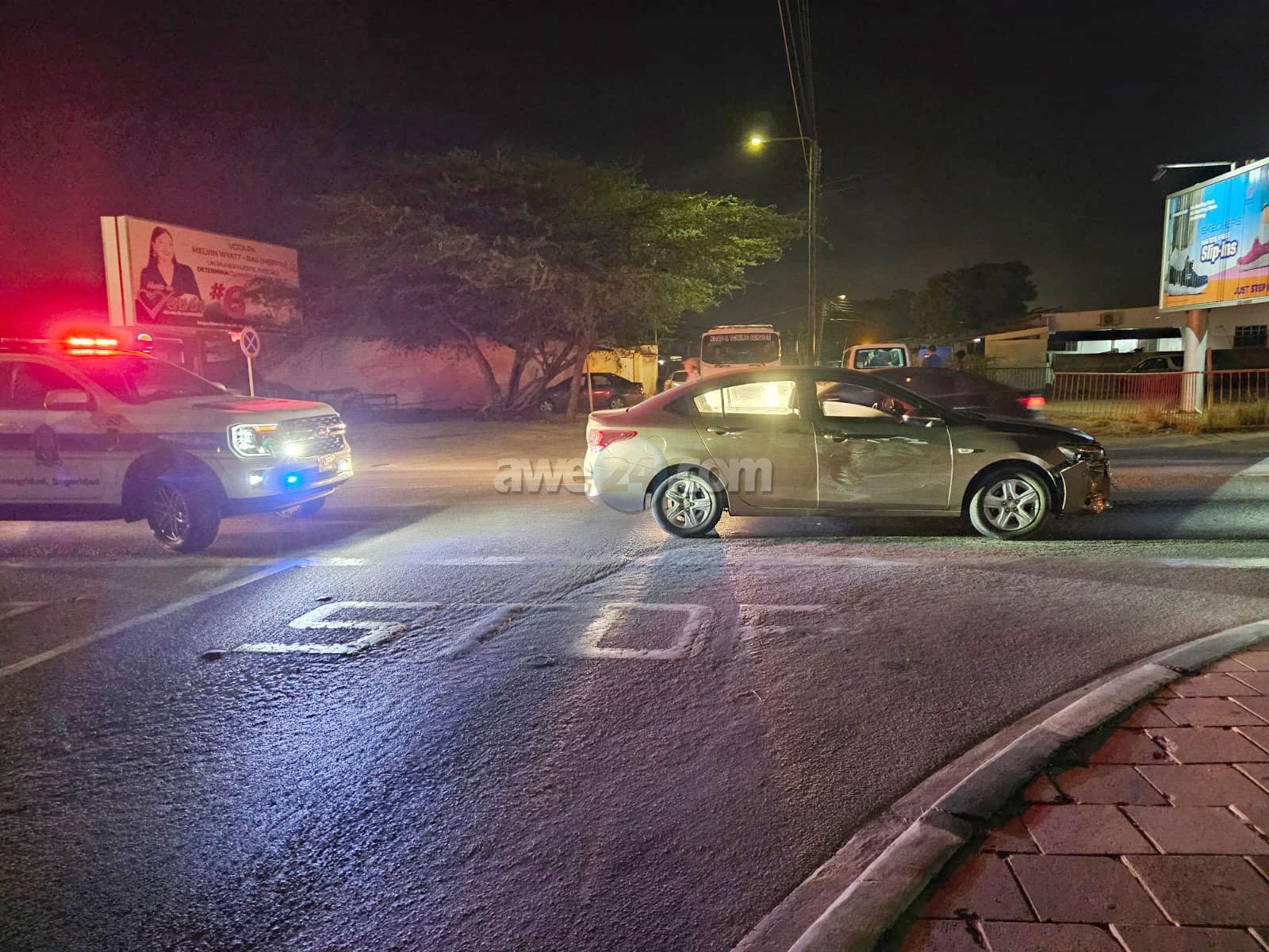 Diahuebs anochi a drenta informe di un accidente na De La Sallestraat, mesora a dirigi un patruya na e sitio. Na yegada di e patruya a bin compronde cu aki ta trata di un accidente unda cu un chauffeur a bay sali for di KFC y a dal 2 auto simultanianmente. Polis a test tur chauffeur pero ningun tabata bao influencia. Afortunadamente ningun hende a resulta herida.