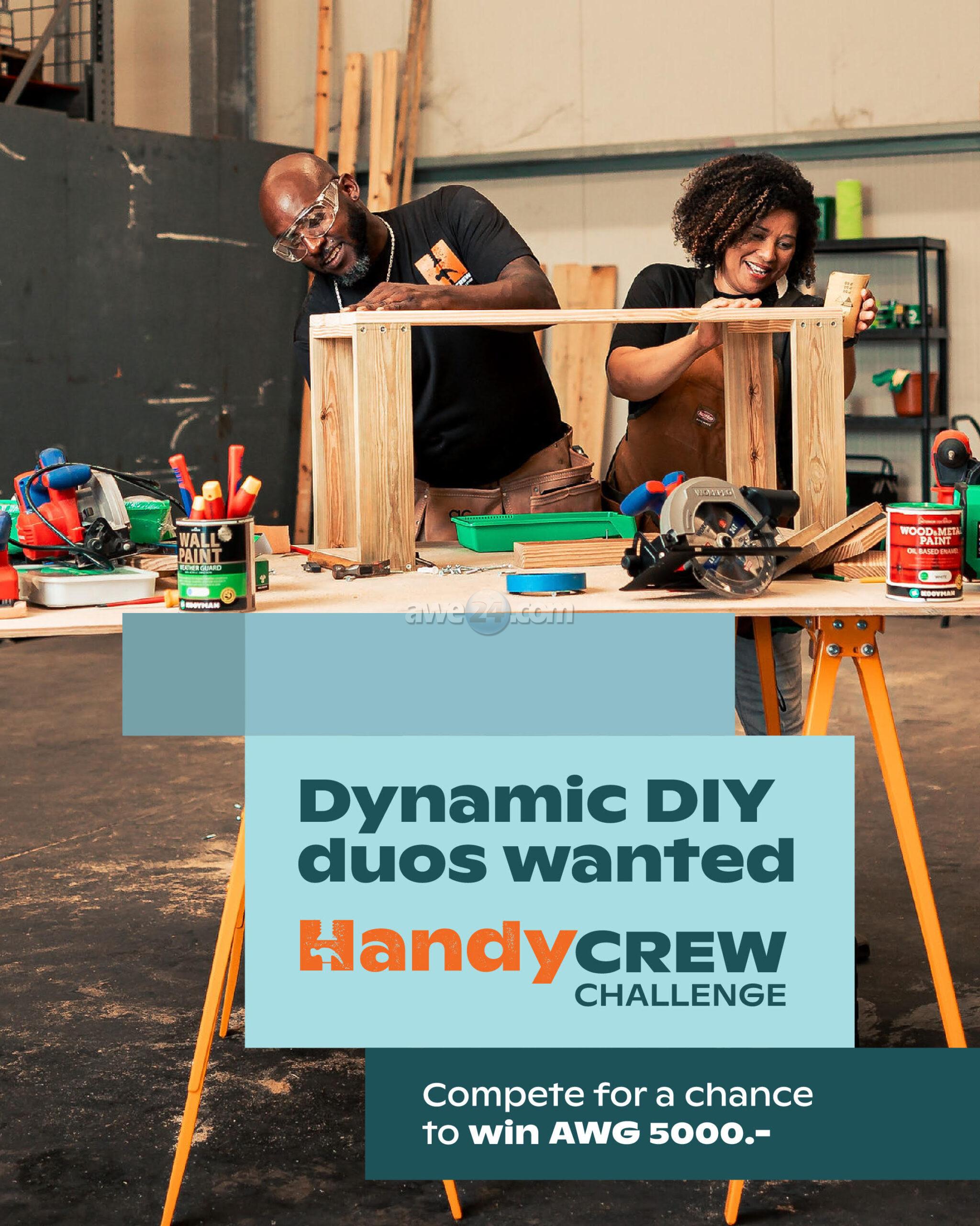 Si bo ta creativo, “handy” y competitivo, busca bo partner y registra pa participa cu chance pa gana AWG 5000 na gift card di Kooyman y un set completo di tools di WorkPRO.