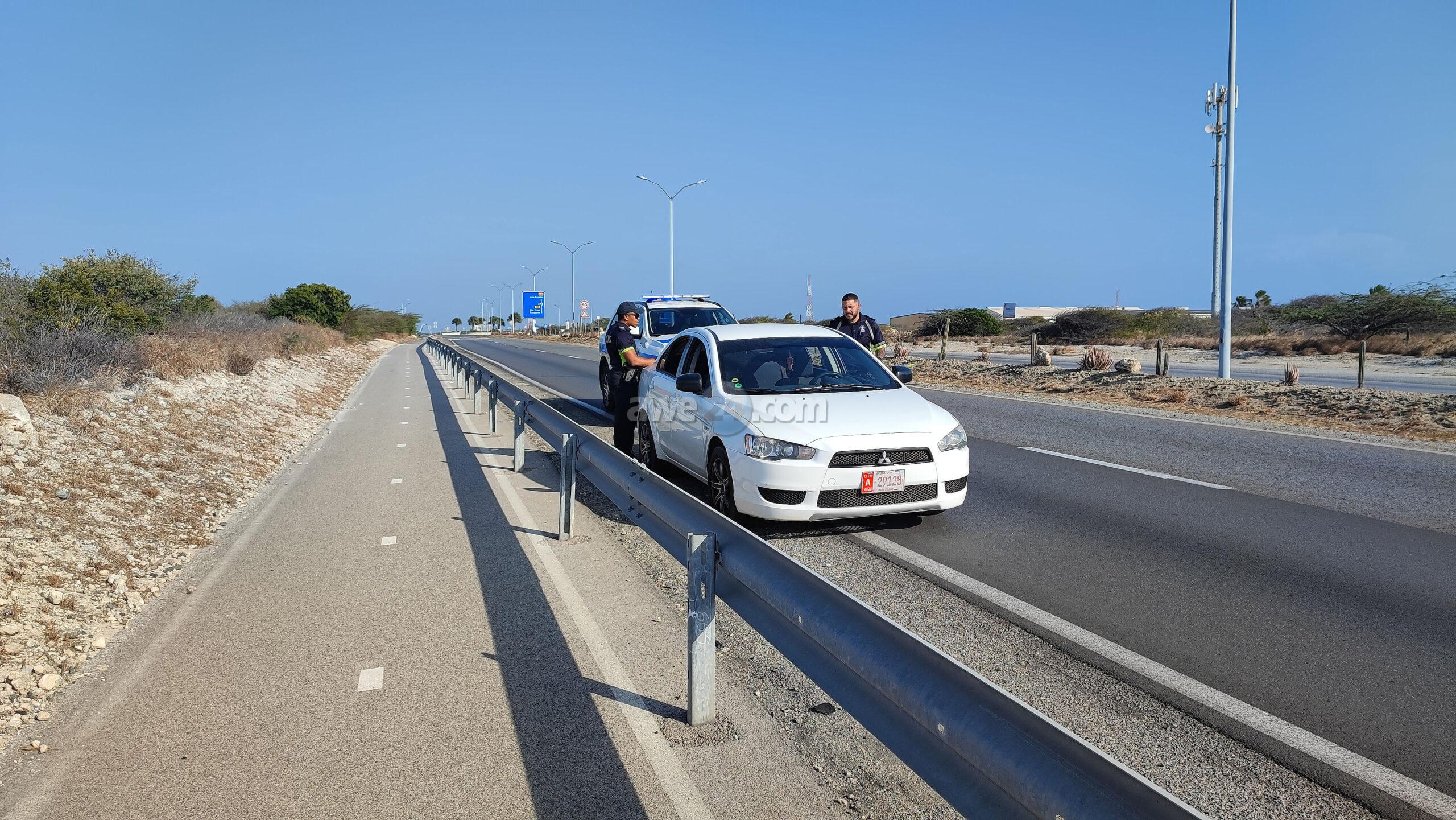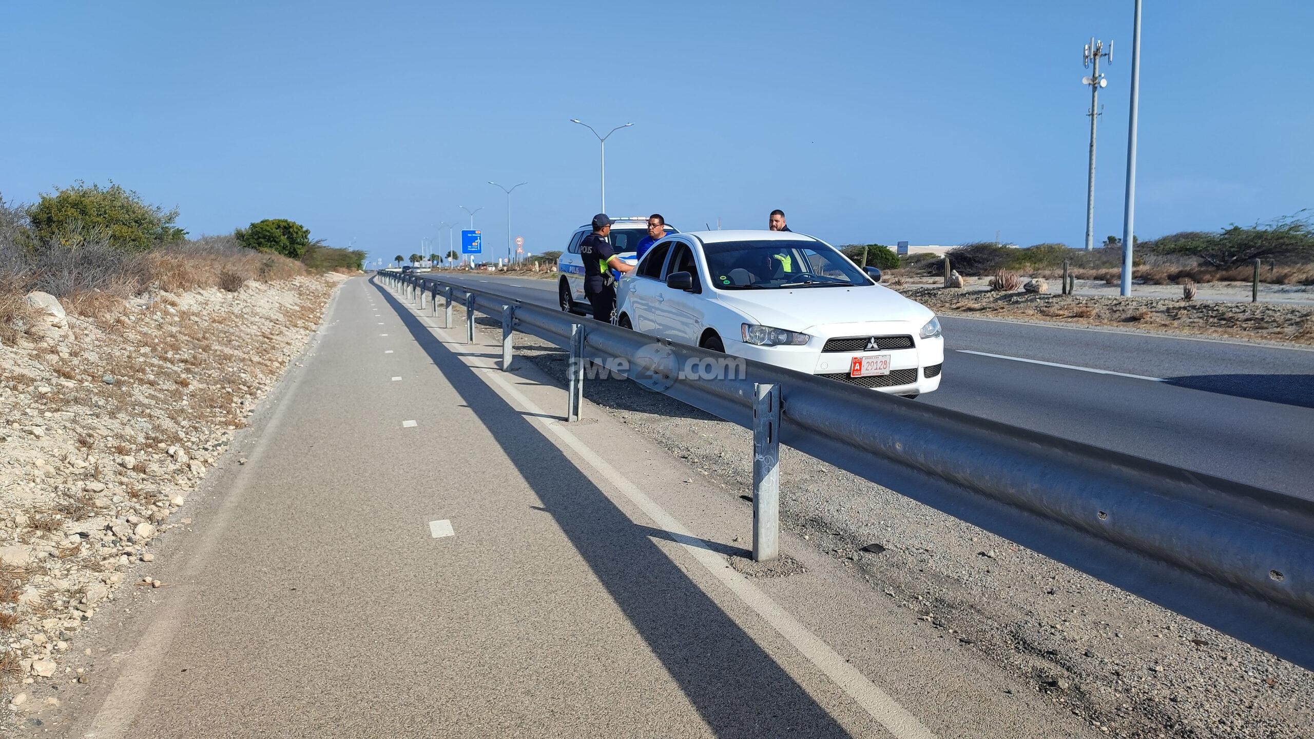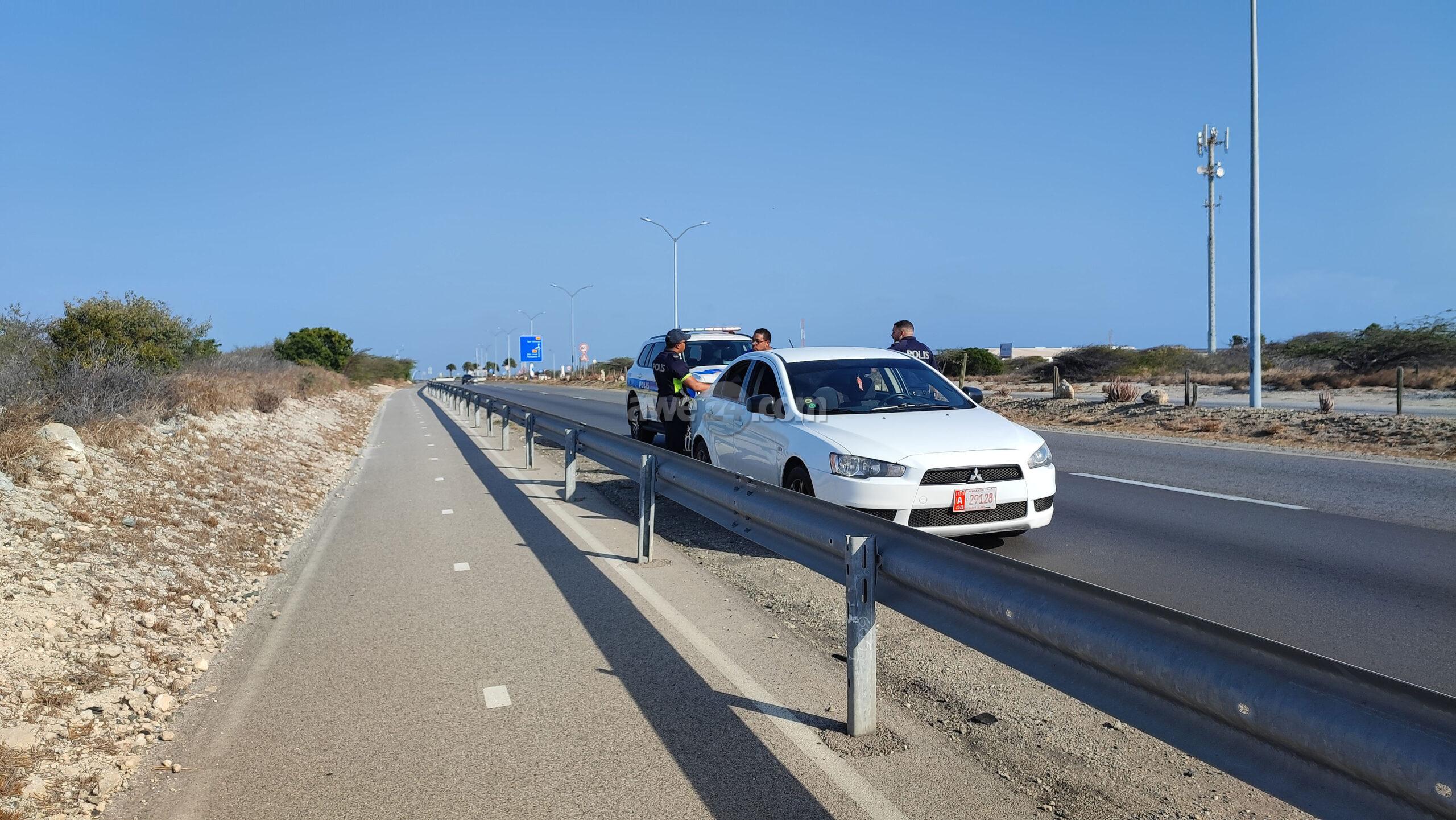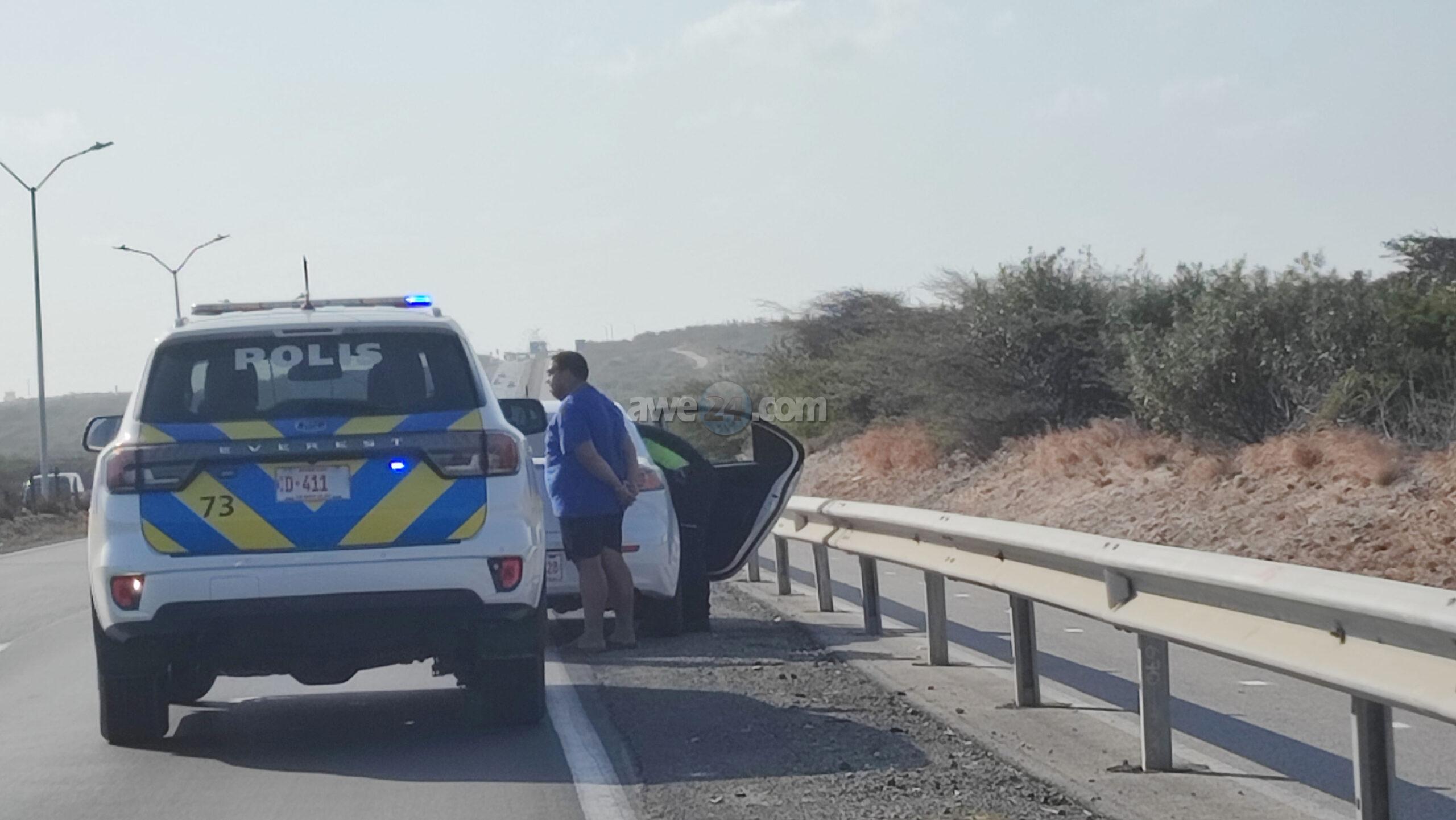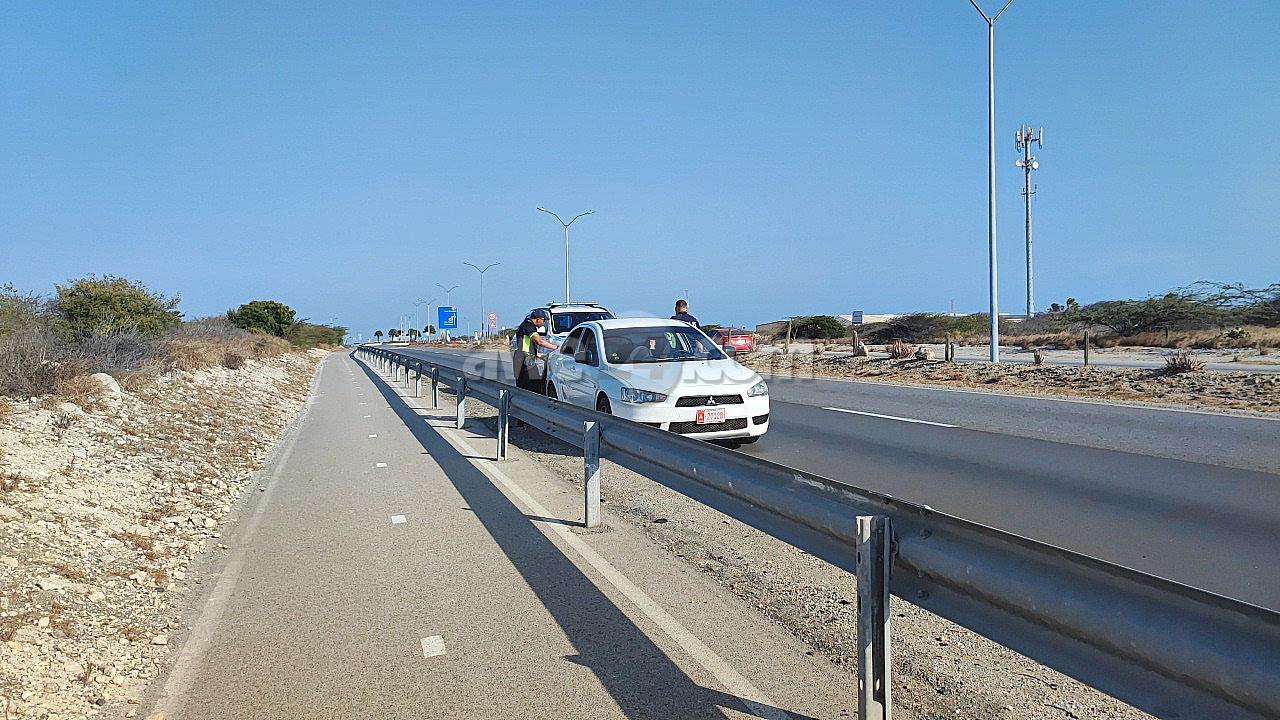 Diasabra atardi polis tabata en busca cu un Mitsubishi Lancer unda cu e homber tabata maltrata y choca e muher, polis a nota un otro mitsubishi Lance coriendo cu velocidad halto na altura di Pos Chikito y a bay su tras y a logra pare poco mas pabao di rotonde Balashi unda eynan a haya holor fuerte di marihuana y ora a listra den e auto a haya pakinan di droga. Eynan a detene y a confisca tur e droga.