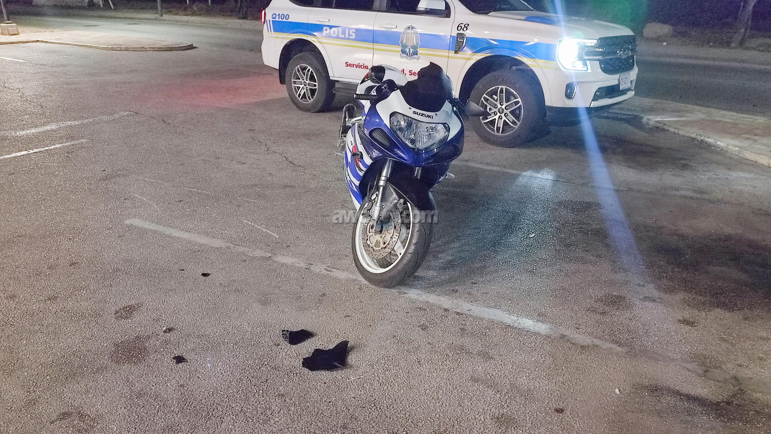 Dialuna madruga den e area di un nightclub na Palm Beach un motociclista cu a tuma nota di presencia di polis a bay provoca polis cu ref y draai cu brommer, na prome instante polis no a worry mucho cun’e. Pero despues cu e mes a dal abao polis a acerke y a detene ademas a confisca su brommer y e show a caba tambe!
