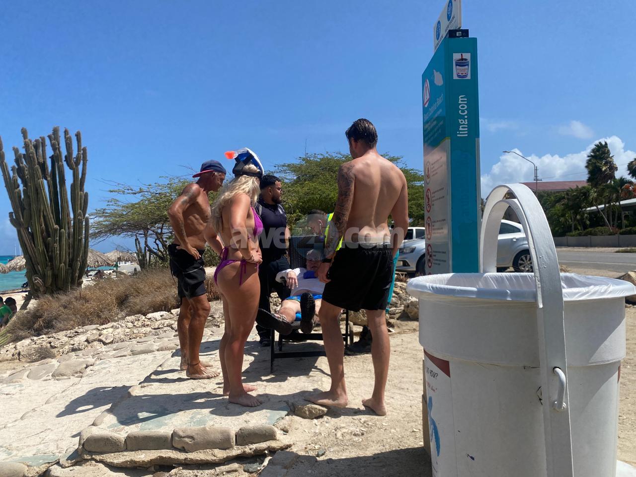 Diahuebs mainta a drenta informe di cu un hende lo a hoga na Boca Catalina, mesora a dirigi tanto polis como ambulans na e sitio. Na yegada di e patruya a bin compronde cu un turista di 80 aña debi na e olanan halto lo a guli hopi awa y a bira malo. E tabata sinta na e canto di lama. Na yegada di e ambulans nan a atende y a transporte pa hospital.