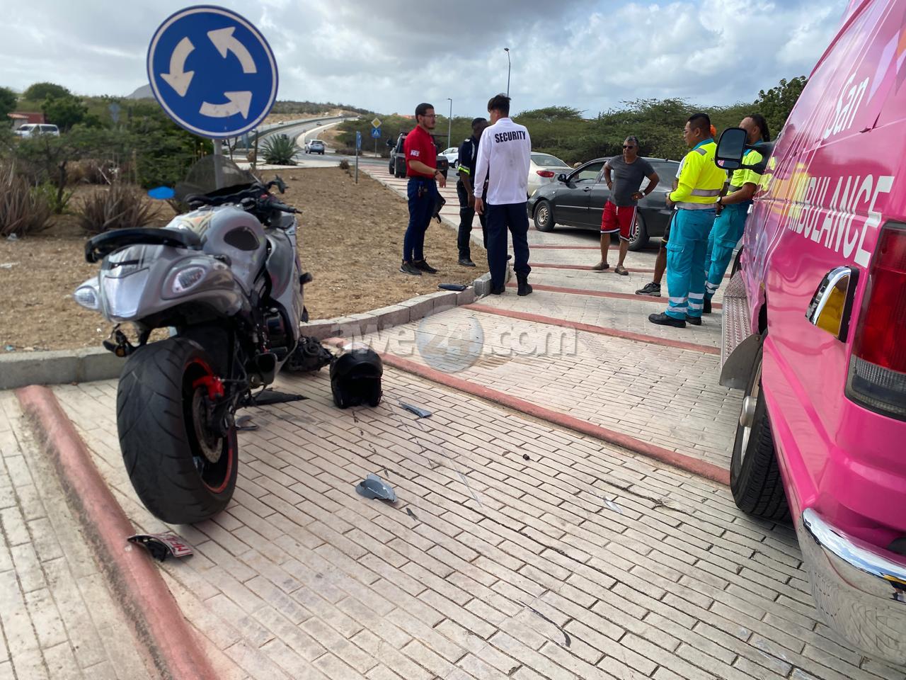 Diadomingo mainta a drenta informe di un accidente cu hende herida na e Paperclip rotonde na Sero Patrishi, mesora a dirigi tanto polis como ambulans na e sitio. Na yegada di e patruya a bin compronde cu aki ta trata di un accidente entre un auto y un motociclista unda e auto no a duna preferencia na e motociclista cu tabata riba e rotonde y e motociclista a bay dal riba e auto. Debi na e impacto e motociclista a dal abao y a resulta levemente herida. Na yegada di e ambulans nan a atende e victima na e sitio mes.