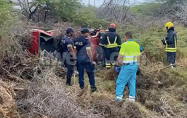 Diadomingo mainta a drenta informe di un accidente cu hende herida y pega den auto na Sasakiweg. Mesora a dirigi tanto polis, ambulans y brandweer na e sitio. Na yegada di e patruya a bin compronde cu chauffeur di un pick-up Colorado lo a slip riba caminda tiki muha perde control kentel bay den bay den mondi banda di caminda. Na yegada di brandweer nan a logra saca e chauffeur cu lo tabata pega den e pick-up y a yud’e cana pa bai na e ambulans. Na yegada di e ambulans nan a atende cu e victima y a transporte pa hospital. Polis a tuma datos di e accidente aki.