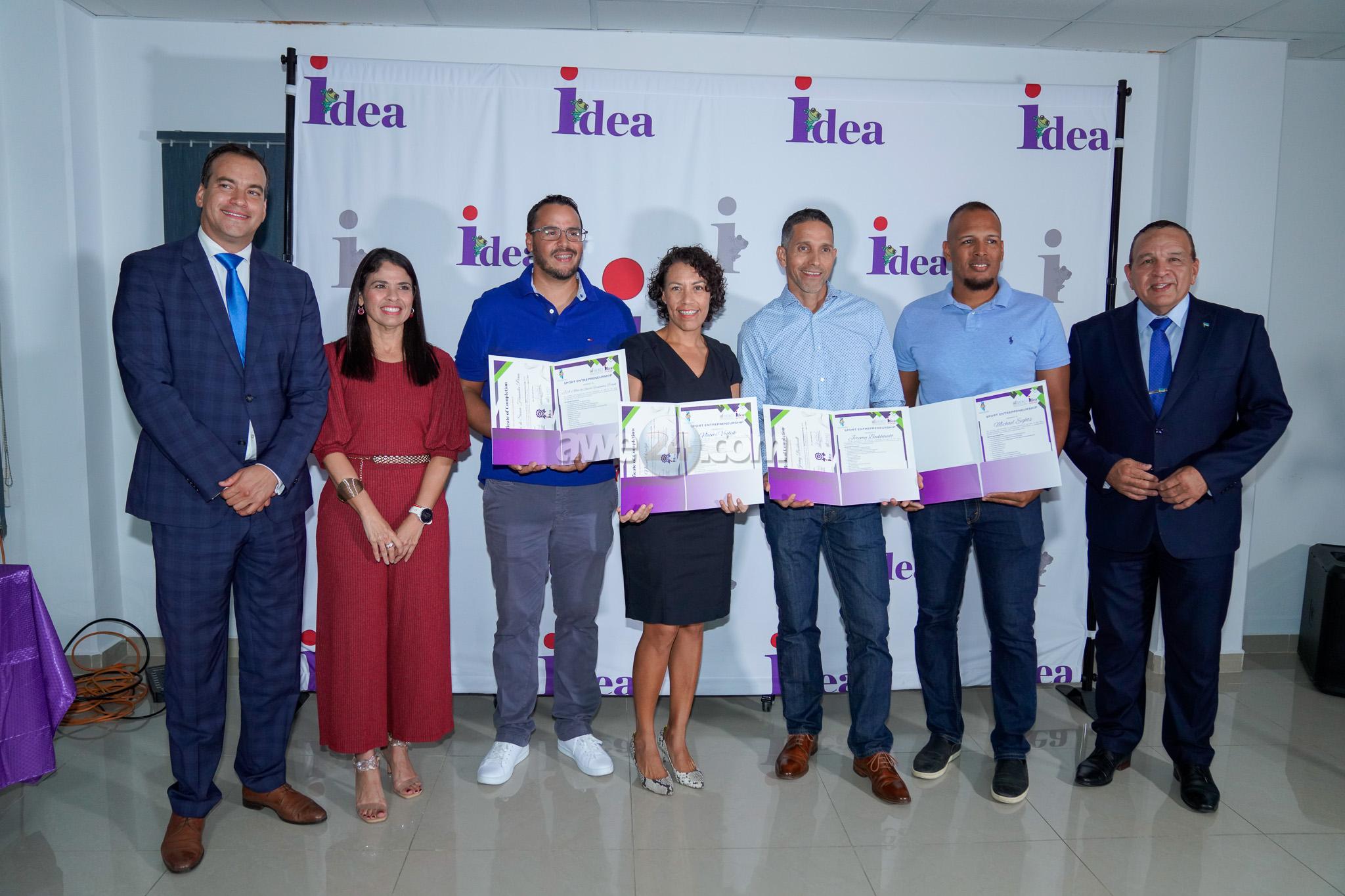 ORANJESTAD: Diabierna ultimo, Minister di Enseñansa y Deporte Endy Croes hunto cu colega Colega Geoffrey Wever a acudi na Ceremonia di Certificacion di Emprendimento den Deporte (Sport Entrepreneurship) di Iniciativa pa Desaroyo di Empresa Arubano (IDEA). Esaki ta un momento di orguyo pa nos deporte y pa nos pais Aruba. Di e 18 participantenan, un total di 13 persona a logra e certificado, demostrando nan dedicacion cu nan a participa na 70% of mas di 70% di e tayernan. Ademas, tin 5 otro participante cu a logra un parti di nan participacion di entre 50% y 68%. Durante e curso di 22 dia, nan a trata 9 diferente topico. E curso a inicia día 30 di october 2023 y a culmina dia 26 di februari 2024. Minister Endy Croes ta gradici Departamento di Asuntonan Economico, Comercio y Industria/IDEA y colega Minister Geoffrey Wever pa nan esfuerso y liderazgo den e promocion y realisacion di e proyecto pionero di Emprendimento den Deporte cu a termina cu un exito total. Alabes, ta gradici e facilitadonan cu a duna e cursonan. Nan innovacion y dedicacion ta un ehempel di inspiracion pa nos tur. Finalmente, ta felicita tur esnan cu a logra pasa e curso aki exitosamente.