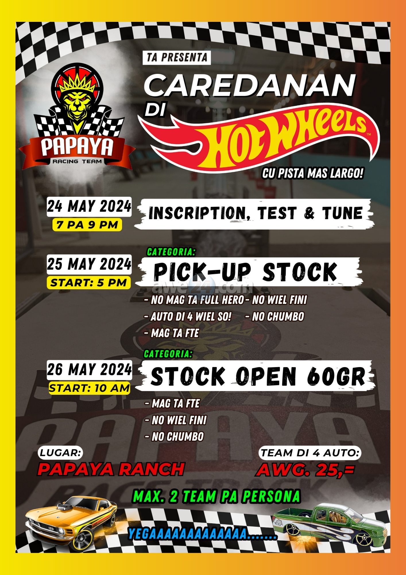 Despues di exitoso inauguracion di pista y caredanan di Hot Wheels na mei 2023 na Papaya Ranch, e peticion a bira uno grandi pa organisa un careda di Hot Wheels categoria Pick-up Stock y Stock Open 60 gram riba un pista un poco mas largo.