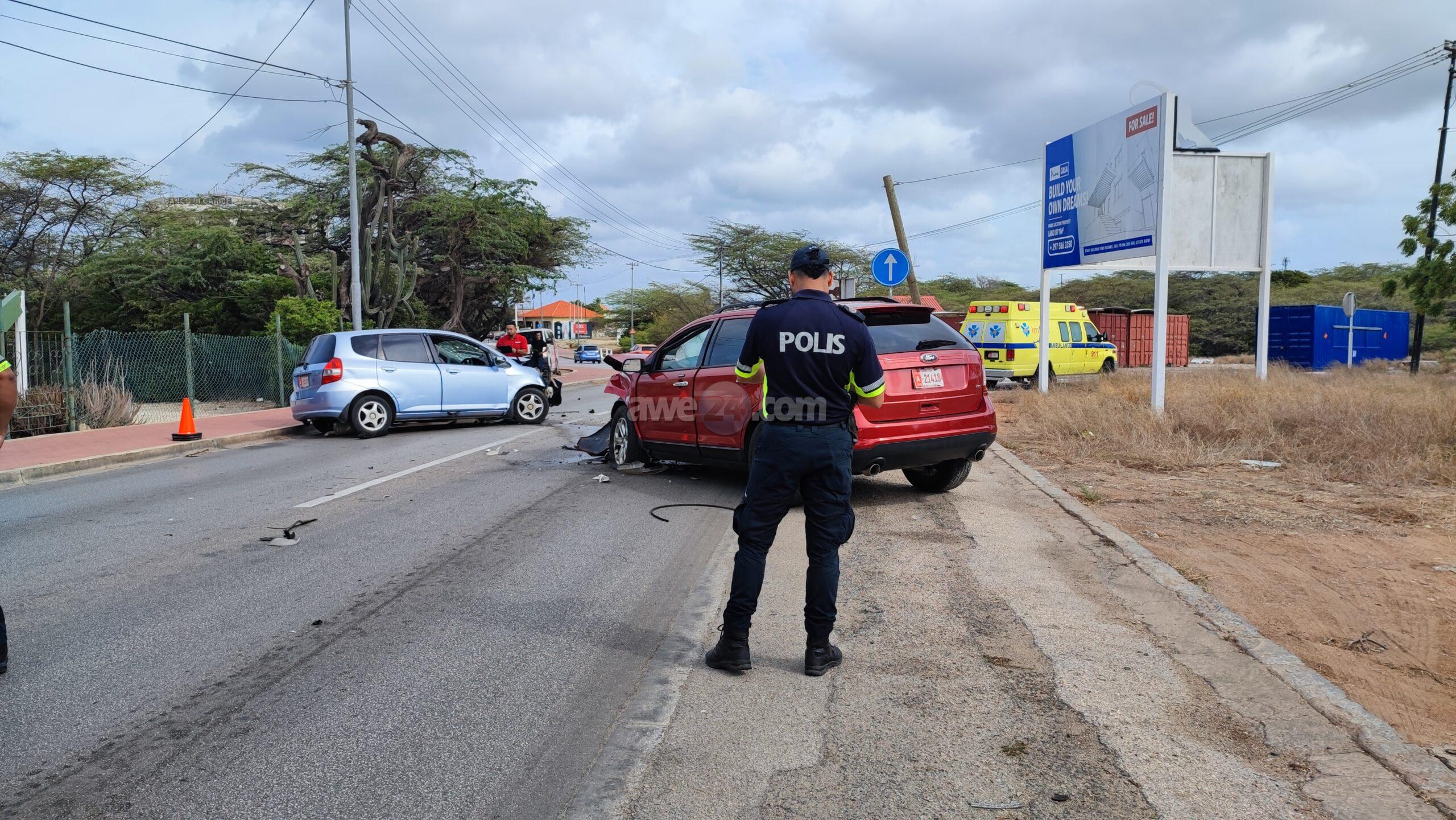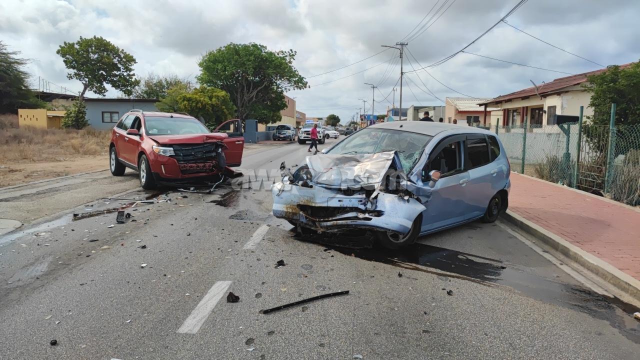 Diabierna mainta a drenta informe di un accidente cu hende herida y benta meymey di caminda na splitsing panort di Home Sweet Home 520 na Avenida Milio Croes, mesora a dirigi tanto polis como ambulans na e sitio. Na yegada di e patruya a bin compronde cu aki ta trata di un accidente semi-frontal unda un Honda Fit a bay mucho na man robes y a bay dal semi frontal riba e suv. Debi na e fuerte impacto ambos chauffeur a resulta herida. Na yegada di e 2 ambulansnan nan a atende ambos victima y a transporta nan pa hospital.