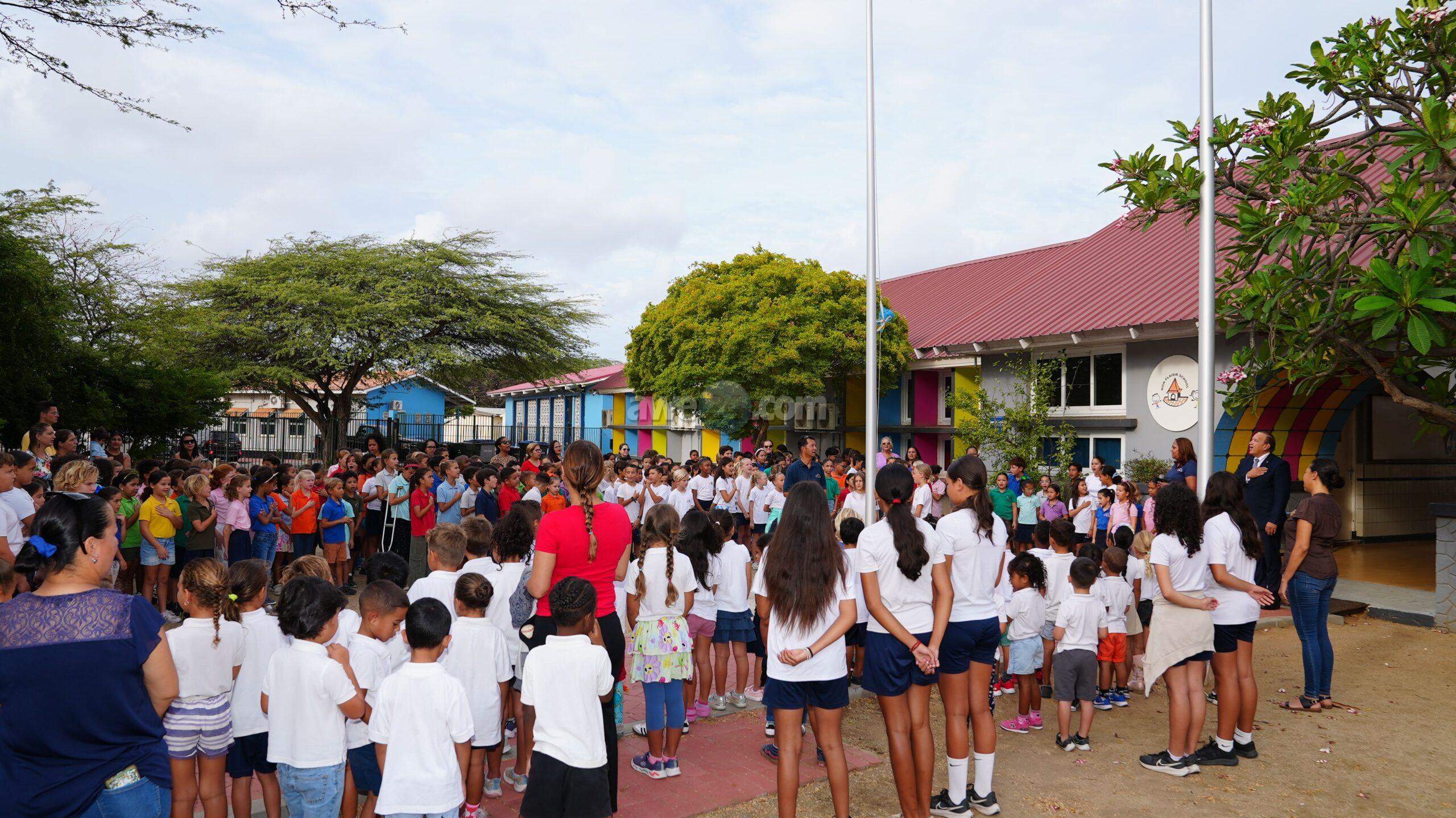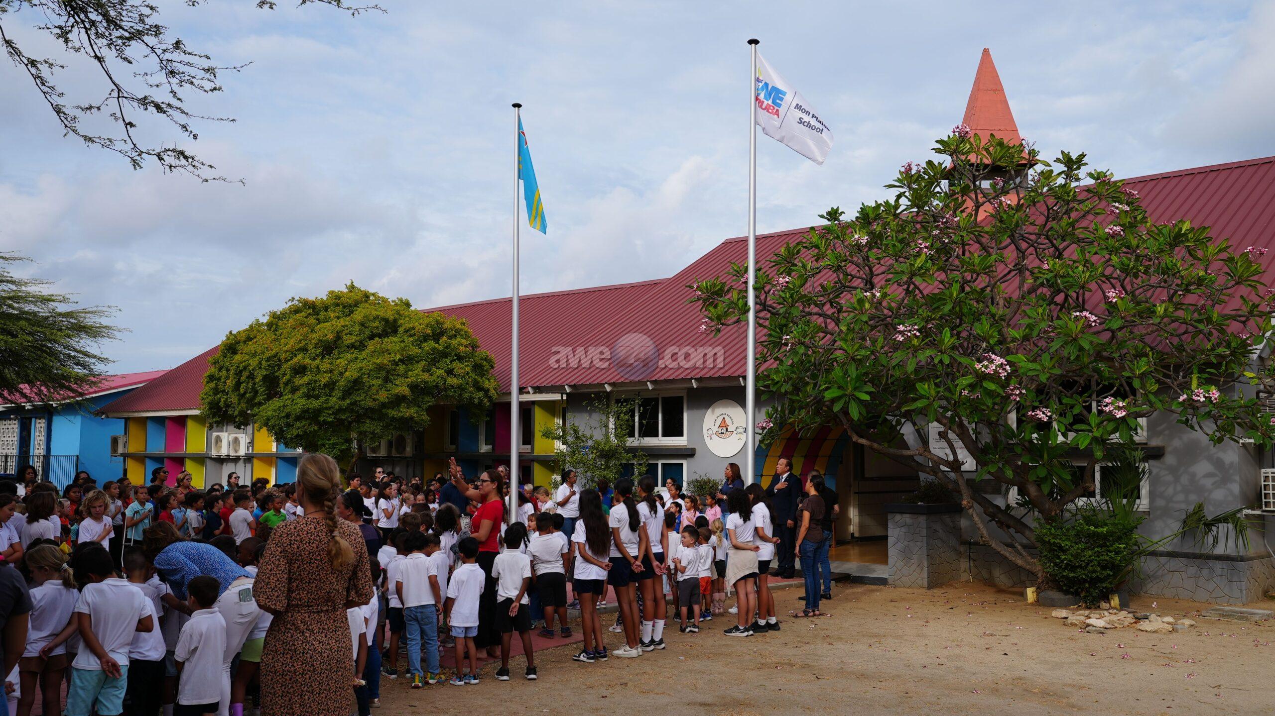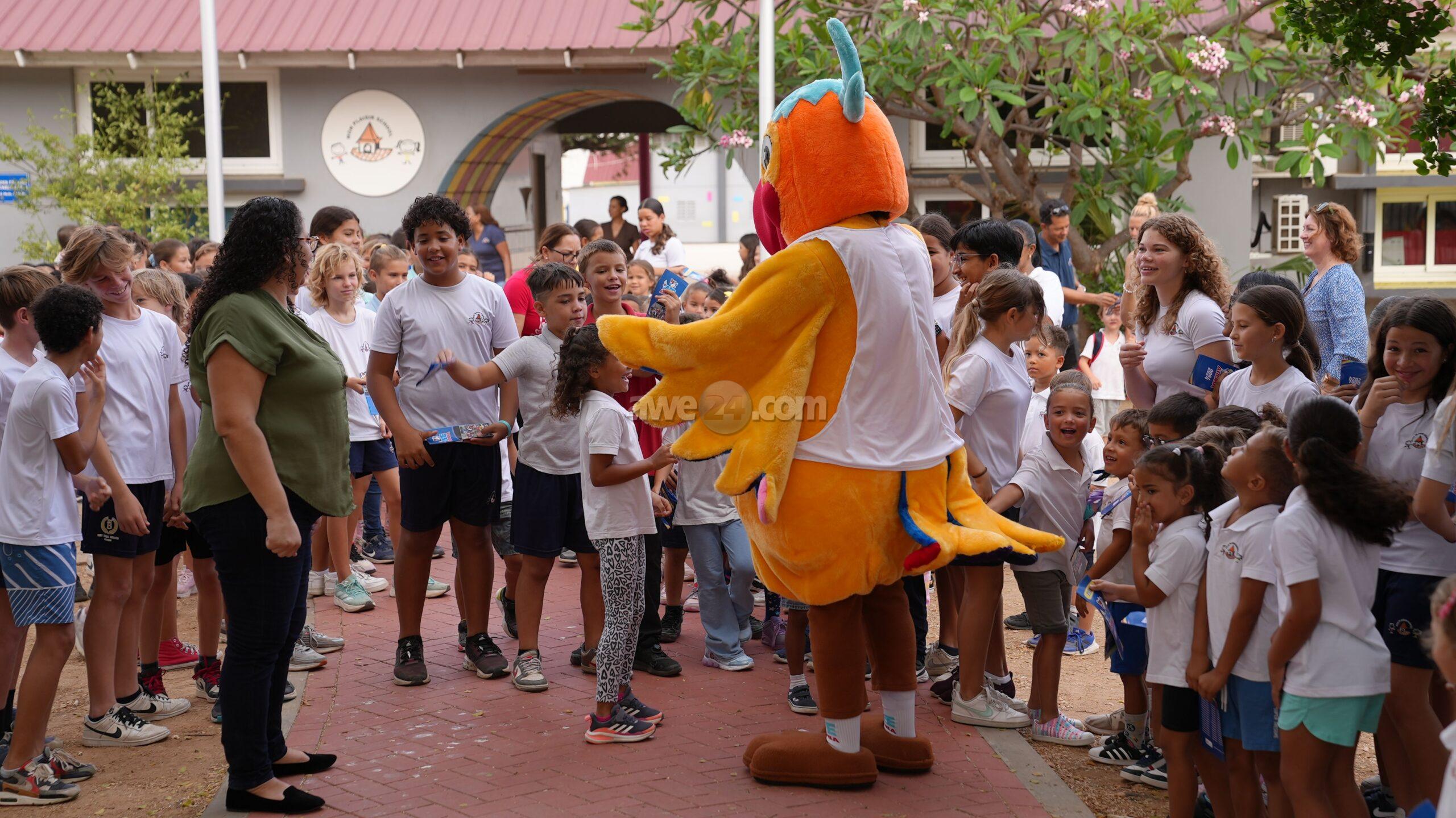 ORANJESTAD: Dialuna mainta, Minister Endy Croes huntocu mascota Wiwi a bishita scol preparatorio y basico di Mon Plaisir. Manera ta conoci, Weganan Escolar 2024 ta inicia dia1 di juni pa 15 di juni proximo. Weganan Escolar ta un competencia pa e alumnonan di scol preparatorio, basico y secundario cu ta competi den diferente disciplina e.o. futbol, volleyball, beach tennis, badminton, “kids athletics”, We Mente y We Baile. Pues dos siman di competencia, unda cu 1300 alumno di 45 scol lo bataya contra otro pa conkista e titulo maximo. A base di peticion di e mandatario di Deporte,tur scol cu ta participa na Weganan Escolar ta hisa bandera diAruba y bandera di Weganan Escolar riba dialuna. E meta diesaki ta pa inculca e amor patria den nos hobennan y crea e espirito di competencia. E mandatario di Deporte a presenciae ceremonia, unda cu a hisa e bandera y canta e himno diAruba y di Weganan Escolar. Por ultimo, Minister Endy Croesta gradici cabesante, maestro-, staf y alumno di Mon PlaisirSchool pa e caluroso recepcion y e bunita y exitoso mainta. Cu e deseo, disciplina, dedicacion y determinacion ta logra. Alabes, ta invita Pueblo di Aruba pa duna sosten y apoyo na nos muchanan durante e competencia di Weganan Escolar 2024.