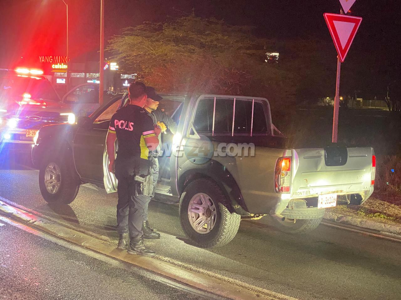 Diabierna madruga a drenta informe di un caso serio di menasa cu arma di candela na King Plaza Mall, mesora a dirigi patruya na e sitio. Na yegada di e patruyanan e security a bin bisa polis cu un rato prome 3 vehiculo a presenta y 2 hende cu arma di candela a baha bin cerca dje y a menase un tabata tin un revolver y e otro un Glock. Nan a bis’e cu nan ta bay bolbe p’e. E security a bisa cu un di e autonan ta un pick-up shinishi y su respectivo number. Un rato despues un oficial ta nota e pick-up subiendo Sasakiweg y a bati alarma. Varios patruya a yega y para e pick-up net na e rotonde Sasaki. Eynan a rista den e pickup pero no a haya nada. Como cu e chauffeur tabata burachi polis a dune un prohibicion pa stuur y a para e pickup un banda.