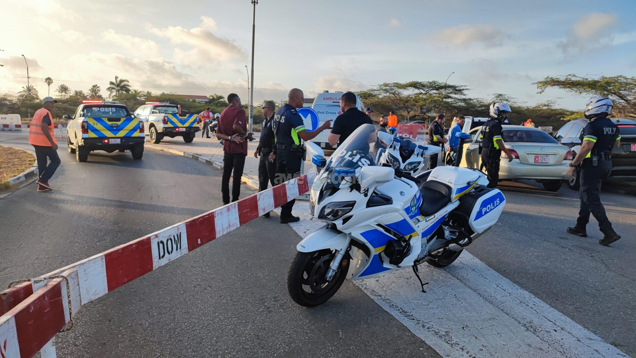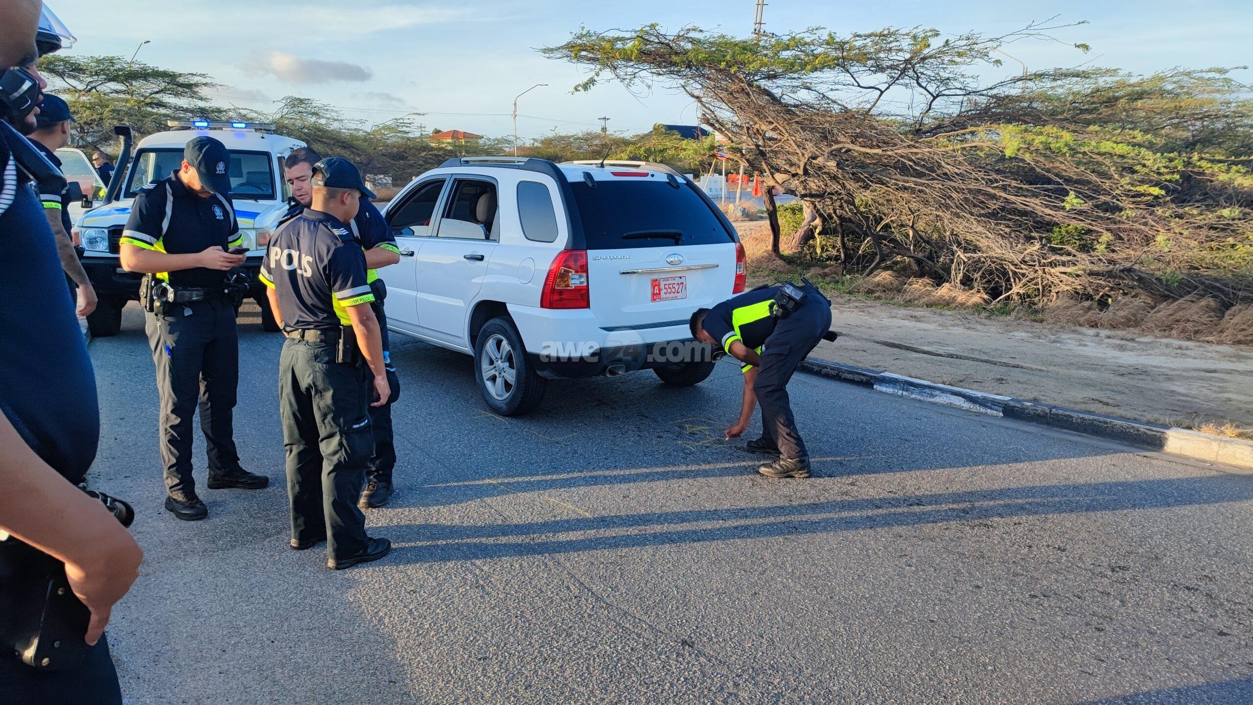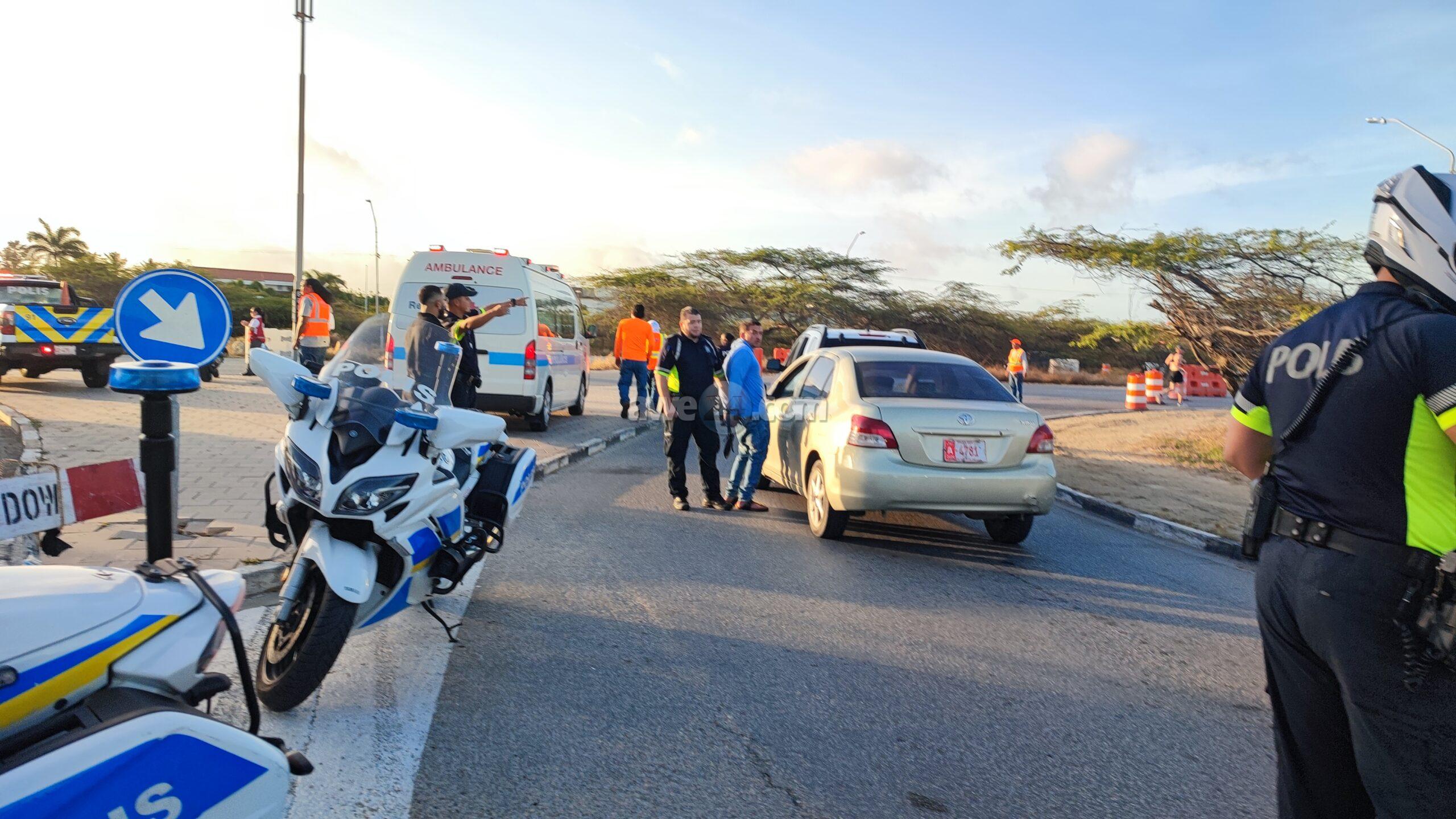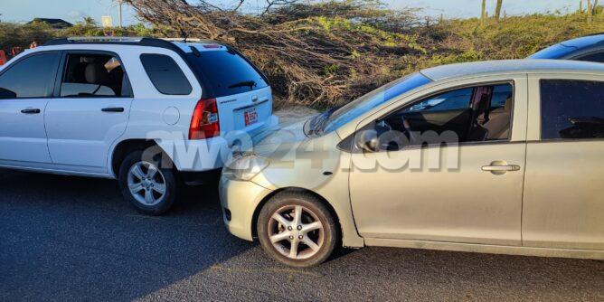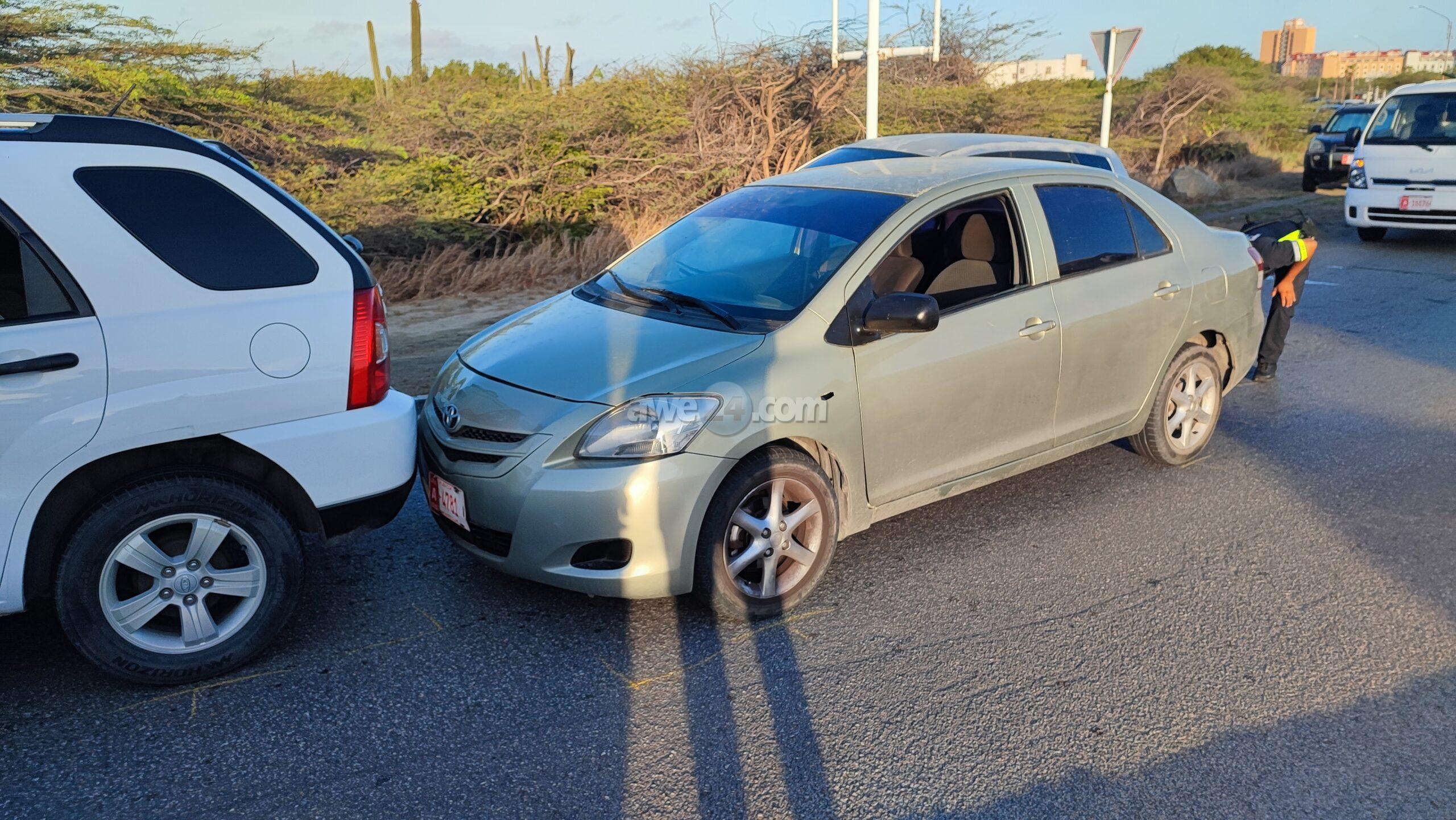 Diadomingo mainta durante cu e camindanan tabata sera banda di e hotelnan a sosode un accidente na e crusada di ex-House of Cheng riba Sasakiweg, mesora un patruya a bay na e sitio. Na yegada di e patruya a bin compronde cu aki ta trata di un accidente unda un chauffeur burachi no a regula su velocidad ni a mantene distancia a bay dal tras di un otro auto. Mesora polis a detene e chauffeur na e momentonan ey a bin un persona stroba trabao di polis y despues di varios advertencia polis a detene tambe. Na yegada di e vehiculo di transporte a bay cu e 2 detenidonan na warda di Shaba. Afortunadamente ningun hende a resulta herida.