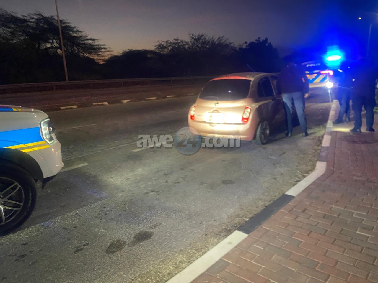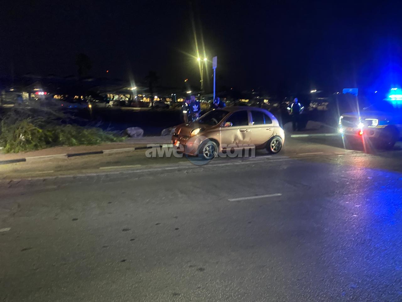 Dialuna madruga a drenta informe di cu tin un Nissan March roos biniendo di pariba lo a dal un palo di lus na Camacuri y a bira bay bek pariba, mesora a dirigi patruyanan di Oranjestad como tambe esun di Santa Cruz. Esun di Oranjestad no a haya nada pero esun di Santa Cruz si a logra para e March pariba di e rotonde airport. Afortunadamente ningun hende a resulta herida.