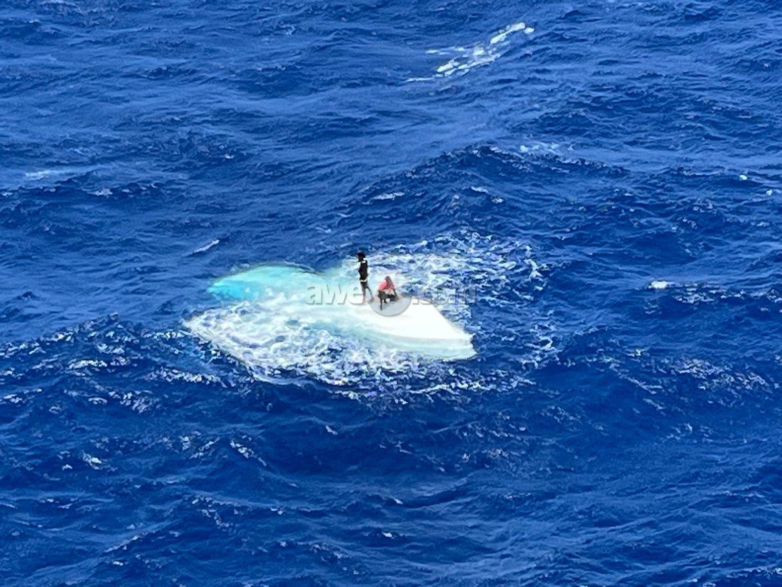 Den ora nan di dialuna madruga, Centro Maritimo Operacional di Wardacosta a ricibi un mensahe di un boto den necesidad pidiendo asistencia riba lama. E boto a bolter aproximadamente 74 miya noordwest di Aruba. E avion DASH di Wardacosta a sali pa hasi un buskeda den e area y a haya e boto cu a bolter cu e 2 personanan riba dje. Inmediatamente a pidi e helicopter di Wardacosta pa bai den direccion di e incidente, pa asina rescata e dos personanan cu a logra di subi riba e boto cu a bolter. A saca nan for di lama y a transporta nan sano y salvo pa Aruba. Miembronan di Wardacosta na Aruba a ricibi nan debidamente, y lo cana e caminda necesario, hunto cu nos partnernan, pa e dos persona nan di nacionalidad Dominicano por bai nan pais bek.