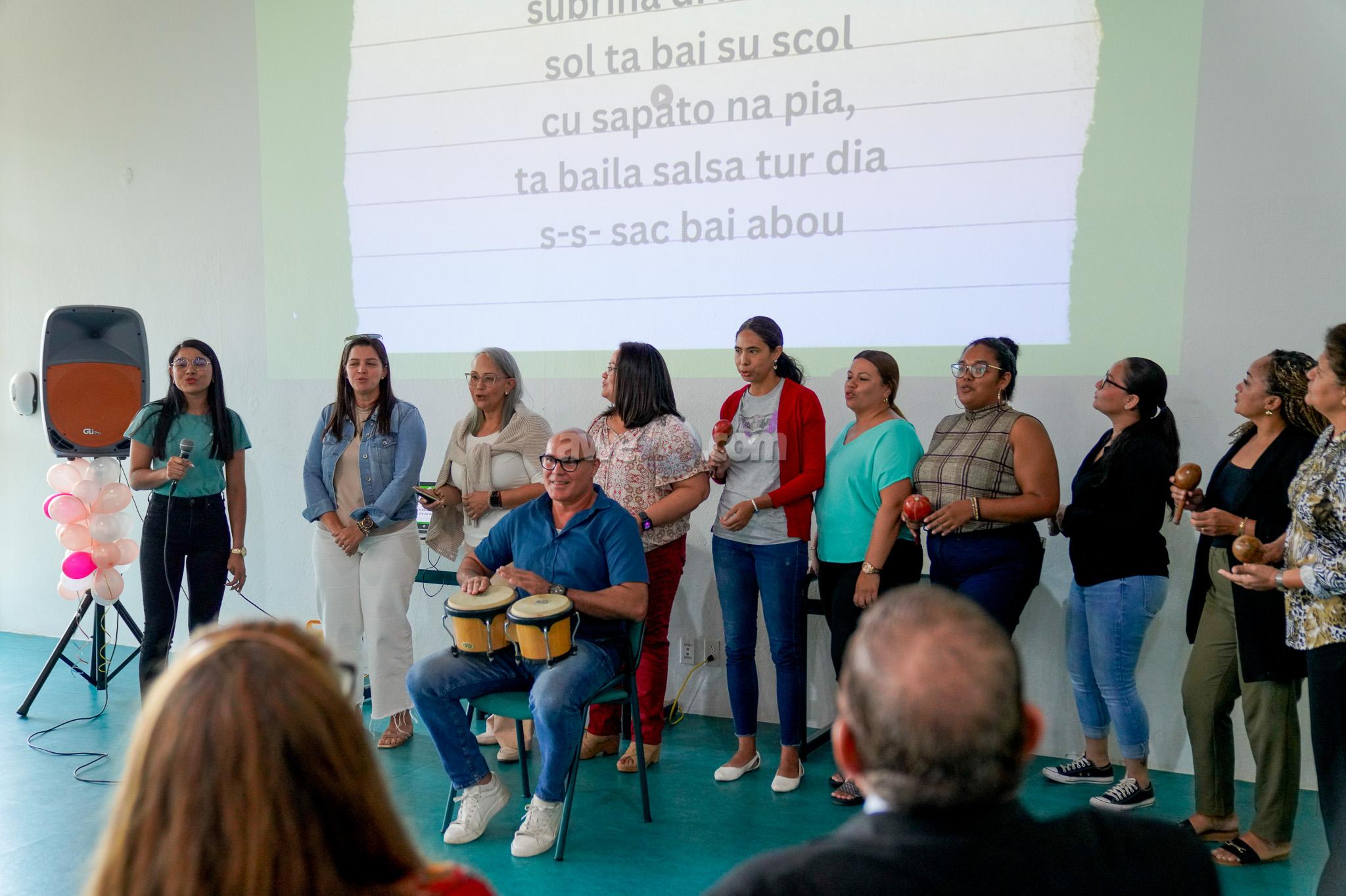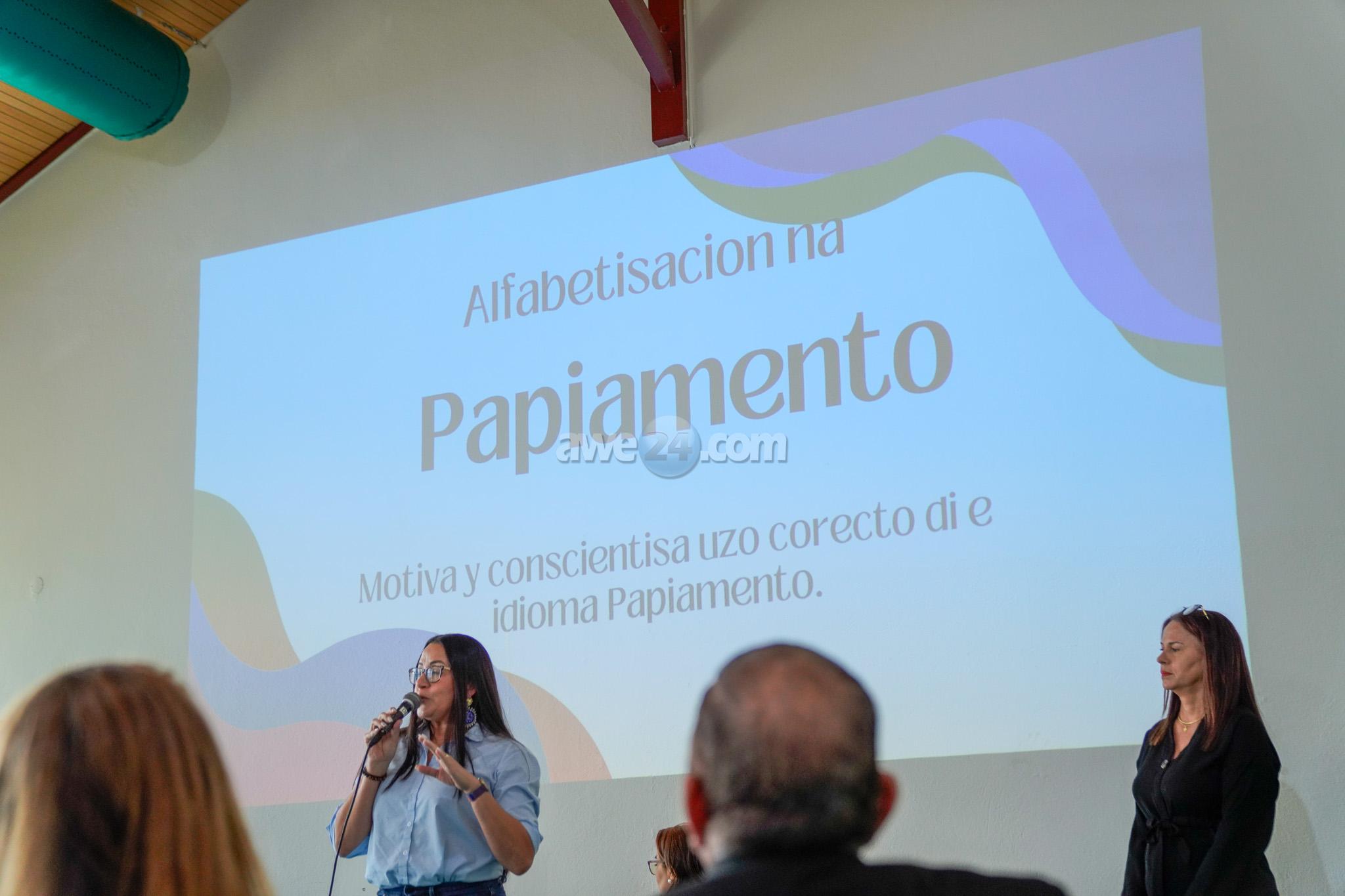 ORANJESTAD: Diabierna ultimo, Trayecto di Preparacion pa Alfabetisacion na Papiamento a culmina den un manera festivo. Minister Endy Croes a acudi na John F. Kennedy Education Center Aruba, unda e maestronan a presenta tur material cu nan a desaroya durante e trayecto. Manera ta conoci, den cuadro di maneho di idioma nobo, lo introduci Alfabetisacion na Papiamento e aña escolar benidero. Esaki ta nifica cu desde aña escolar 2024-2025, e alumnonan di klas 1 di scol basico lo siña lesa y skirbi na Papiamento. Lo duna Hulandes cu un acercamento nobo cu ta pas mas den e contexto di nos muchanan. Alrededor di 50 maestro di klas 1 hunto cu 35 cabesante di scol basico na Aruba a haya seis (6) dia di estudio durante e trayecto di preparacion cu a inicia november 2023 y a culmina den e luna di mei di e aña aki. Durante e lesnan nan a trata: e metanan nucleo di idioma y comunicacion, conocemento di e material, didactica di idioma materno y didactica di idioma stranhero y dominio di Papiamento. Sra. Gina de Kort a indica cu e ta hopi orguyoso di e maestronan cu a haci tur nan esfuerso pa haci e introduccion di Papiamento posibel e aña escolar benidero. Sra. Anne-Marie Proveyer a expresa cu esaki sigur ta un stap hopi grandi den enseñansa di Aruba, den cual den futuro nos por bay mira su frutonan. Minister Endy Croes a gradici directora Sra. Anne-Marie Proveyer y Sra. Gina de kort di Departamento di Enseñansa Aruba y e facilitadonan cu a contribui den e gran proyecto aki. Alabes, ta felicita e maestronan cu a finalisa nan seis (6) dia di estudio pa e introduccion di Papiamento na tur klas 1 di scol basico na Aruba augustus benidero.