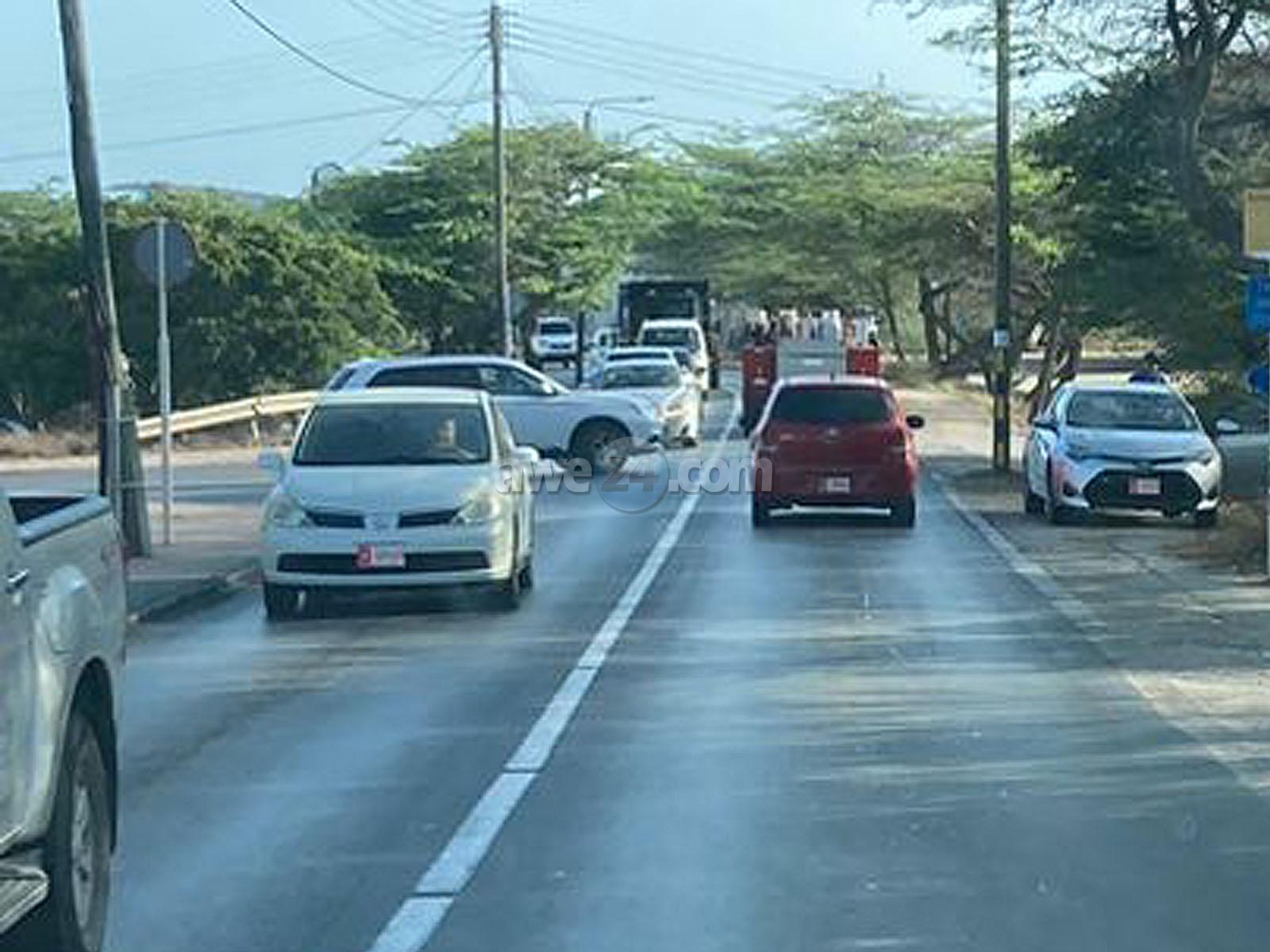 Diahuebs mainta a drenta informe di un accidente banda di e cede di M.E.P. na Santa Cruz, mesora a dirigi un patruya na e sitio. Na yegada dibe patruya a bin compronde cu aki ta trata di un accidente pa falta di preferencia unda e s.u.v. biniendo for di pabao no a para duna preferencia na e Toyota cu tabata bini di nort y e s.u.v. a dal e Toyota den banda. Afortunadamente ningun hende a resulta herida.