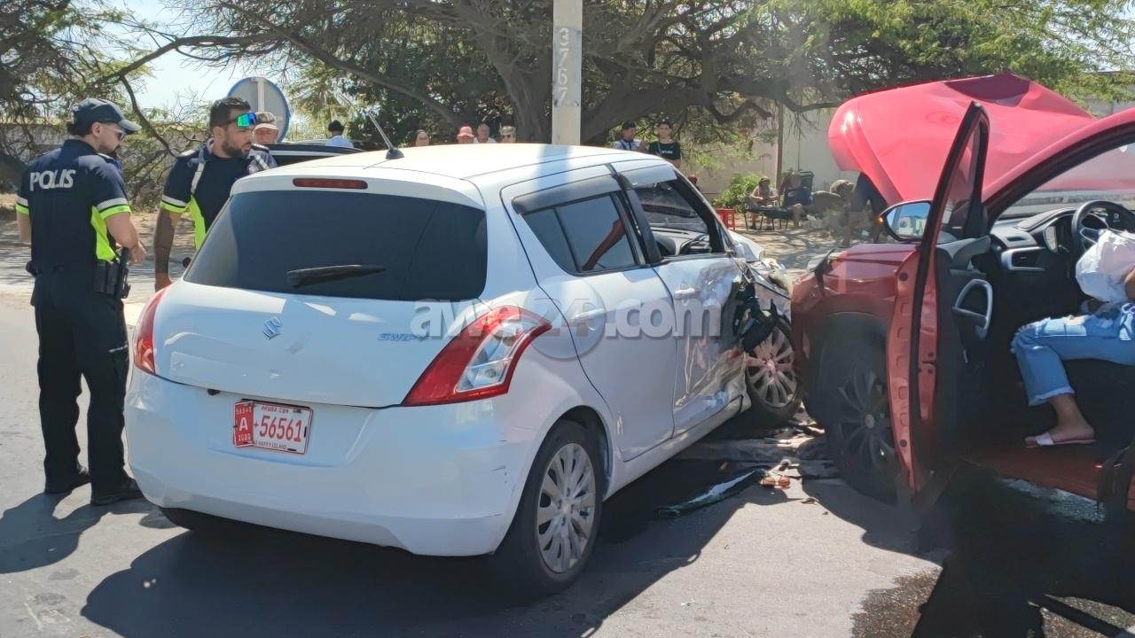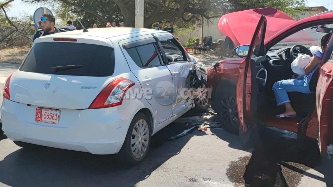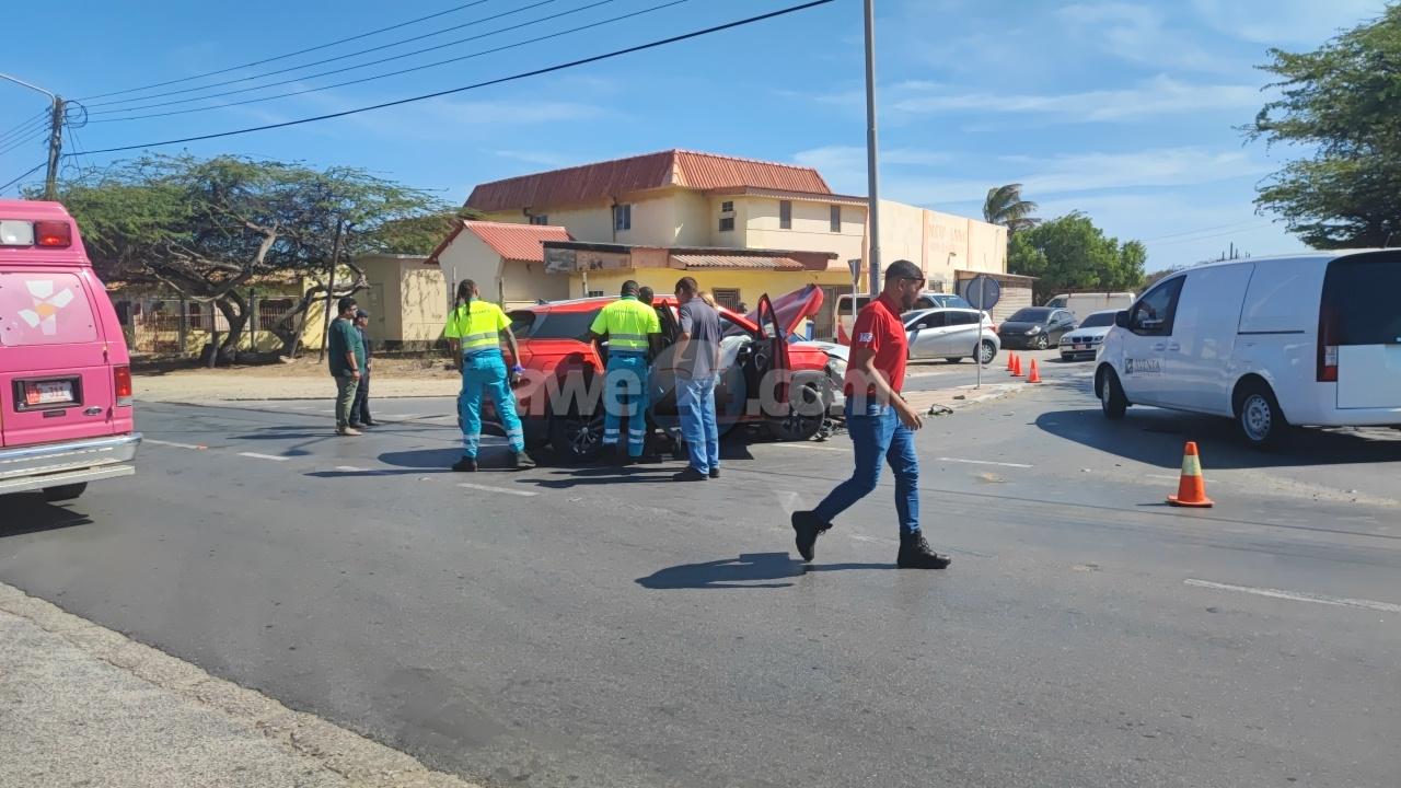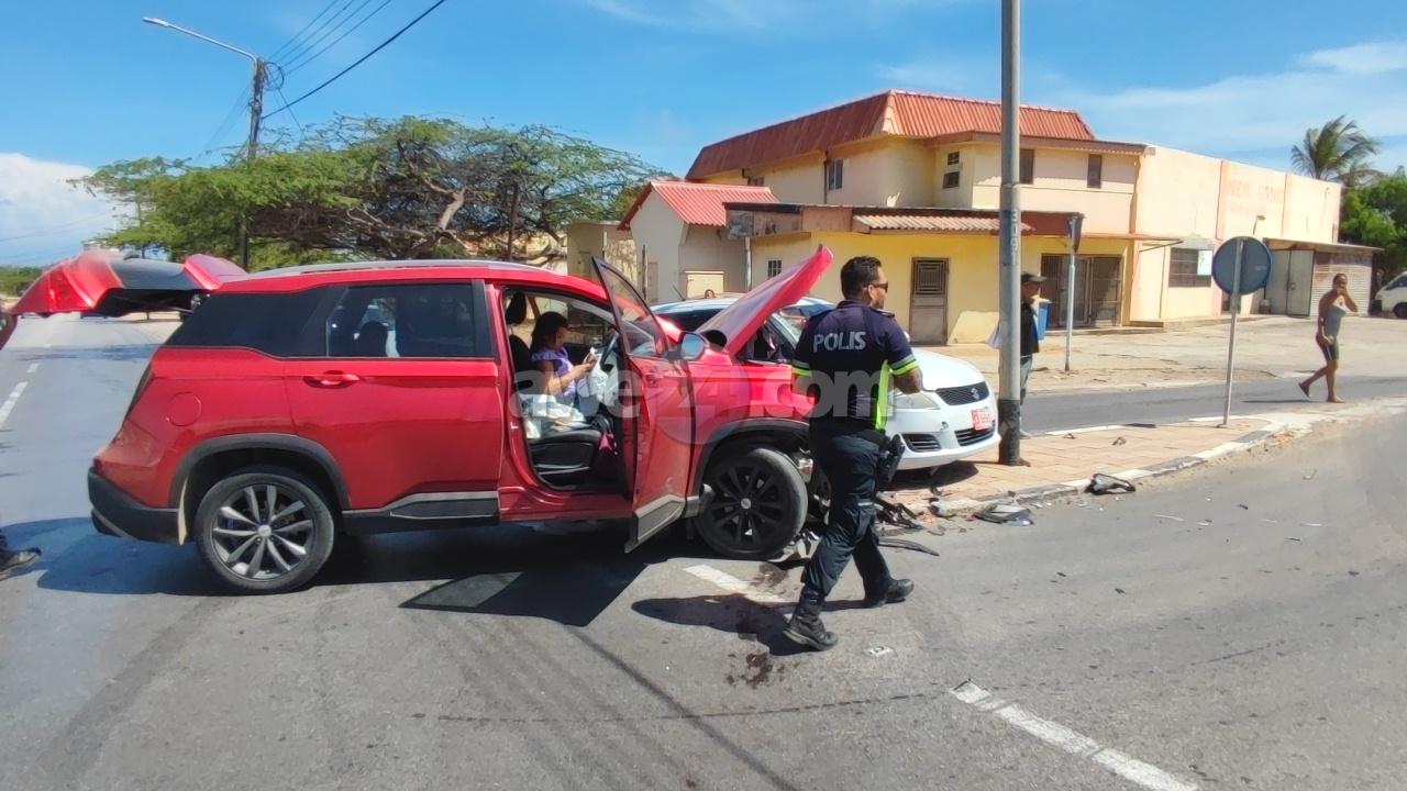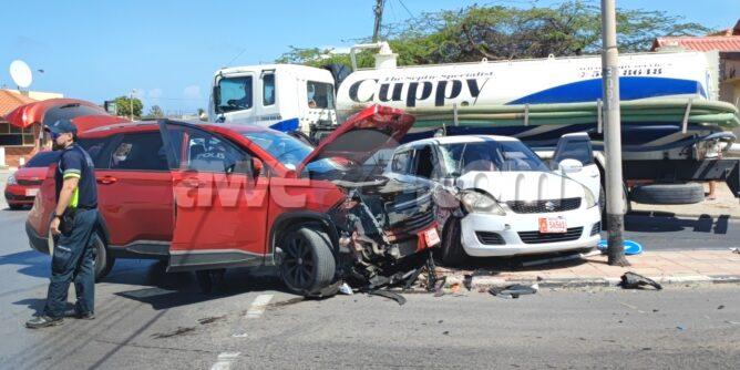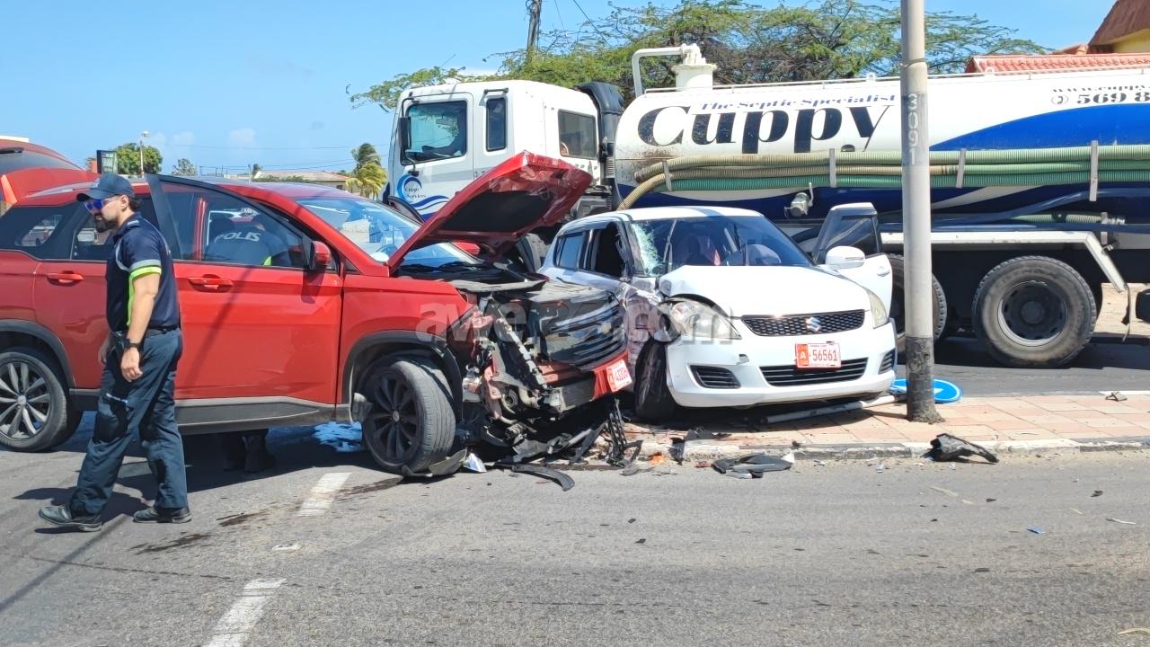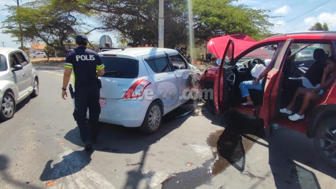 Diahuebs atardi a drenta informe di un accidente cu hende herida dilanti 88 Foodmart na Macuarima, mesora a dirigi tanto polis como ambulans na e sitio. Na yegada di e patruya a bin compronde cu aki ta trata di un accidente unda e chauffeur di e Suzuki blanco biniendo di zuid a bay bira na man robes pero no a duna preferencia na e trafico contrario y nan a dal basta duro contra otro. Debi na e fuerte impacto ambos chauffeur a resulta herida y tambe un mucha sinta patras den e auto contrario. Na yegada di e ambulans nan a atende e victimanan y a transporta nan pa hospital.