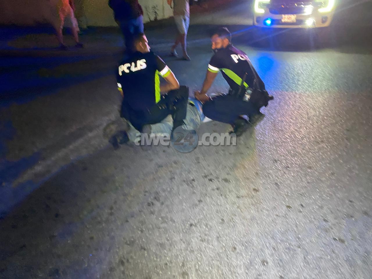 Diasabra madruga a drenta informe di un accidente na Tanki Leendert, mesora a dirigi un patruya na e sitio. Na yegada di e patruya a bin compronde cu aki ta trata di un accidente unda cu e chauffeur na e final di e “t-weg” a sigui stret y a drenta e cura y bay dal riba e muraya kibra esaki. Polis a test e chauffeur y ela surpasa e limite permiti. Polis a detene y den e proceso di detencion e chauffeur a resisti pero polis mester a usa man fuerte pa control’e.