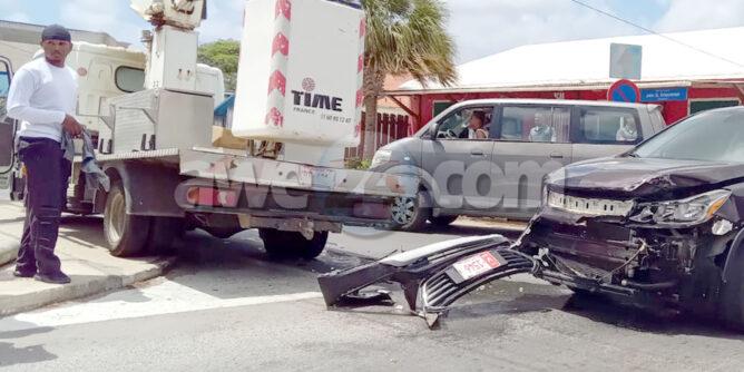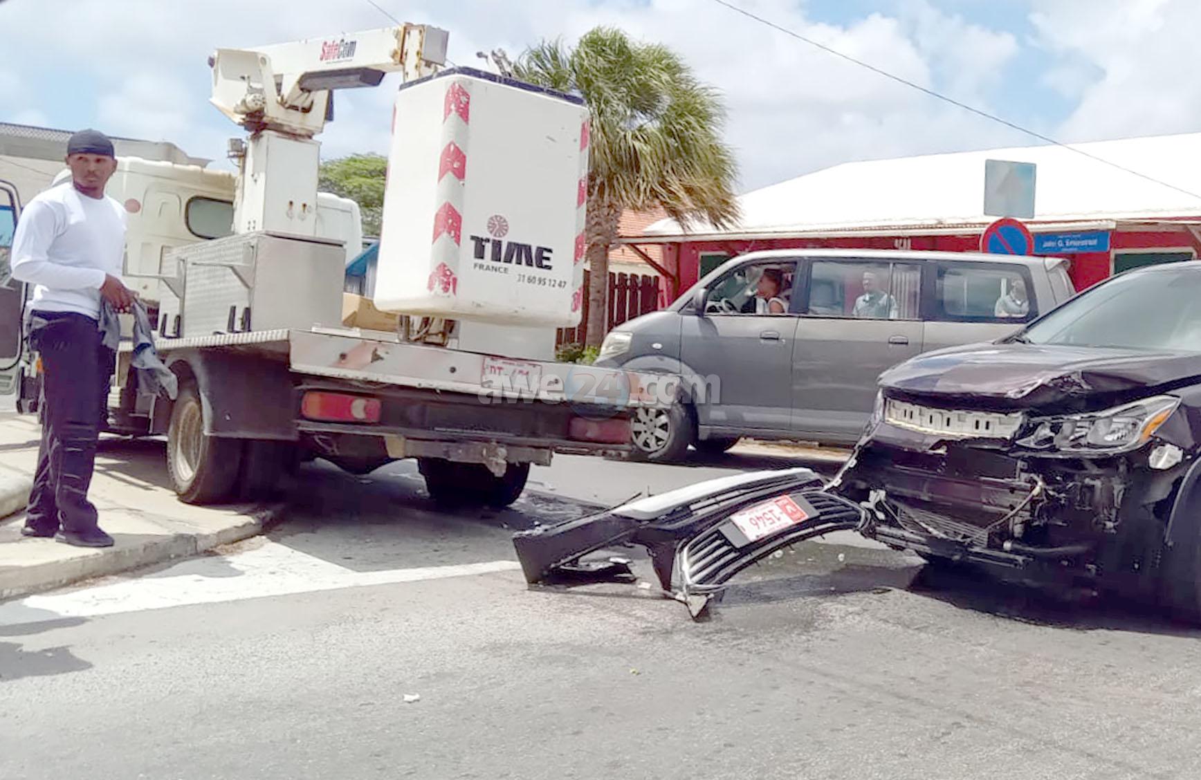 Diamars mainta a drenta informe di un accidente na e crusada di Hendrikstraat cu J.G. Emanstraat banda di Corte, mesora a dirigi un patruya na e sitio. Na yegada di e patruya a bin compronde cu aki ta trata di un accidente unda un auto di huur biniendo for di Hendrikstraat no a para pa duna preferencia na e truck biniendo for di pabao den J.G. Emanstraat y e auto di huur a bay dal riba e truck. Aunke e impacto tabata fuerte afortunadamente ningun hende a resulta herida.