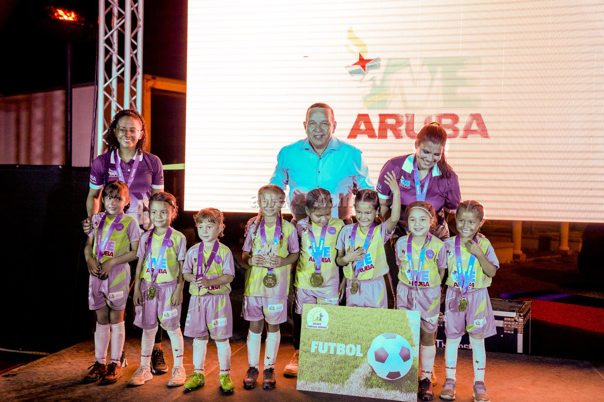 ORANJESTAD: Diasabra, 15 di juni, den un esfera festivo a tuma luga e gran clausura diWeganan Escolar 2024 na Joe Laveist Sport Park na San Nicolas. Presente na e ocasion akitabata Minister di Enseñansa y Deporte Endy Croes hunto cu su kerida esposa Dilailah Croes– Odor, Minister Rocco Tjon, Presidente di Parlamento di Aruba mr. Edgard Vrolijk, parlamentario Setty Christiaans – Yarzagaray, Shailiny Tromp – Lee, Darlaine Guedez –Erasmus y Alvin Molina, director di IBiSA Sr. Isnardo “Juni” Faro, cabesante di scol, representante di diferente federacion deportivo, director di departamentonan, stakeholders y demas invitadonan special. Un total di 1300 alumno di 45 scol preperatorio, basico y secundario a competi contra otro durante dos (2) siman den diferente disciplina entre otro, beach tennis, volleyball, futbol, badminton y “kids athletics”. Ademas di esaki, e aña a introduci WE Baile y WE Mente, cual a haya hopi acogida. E atardi a inicia cu final di futboldi scol preparatorio di mucha muhe, wega di futbol di scol preparatorio di mucha homber, unda famia, docente y amigonan tabata presente pa apoya nan scol. Colegio Conrado Coronela titula Campeon di Futbol di Mucha Homber di Weganan Escolar 2024 y Colegio Conrado Coronel a conkista titulo maximo di Campeon di Futbol di Mucha Muhe.