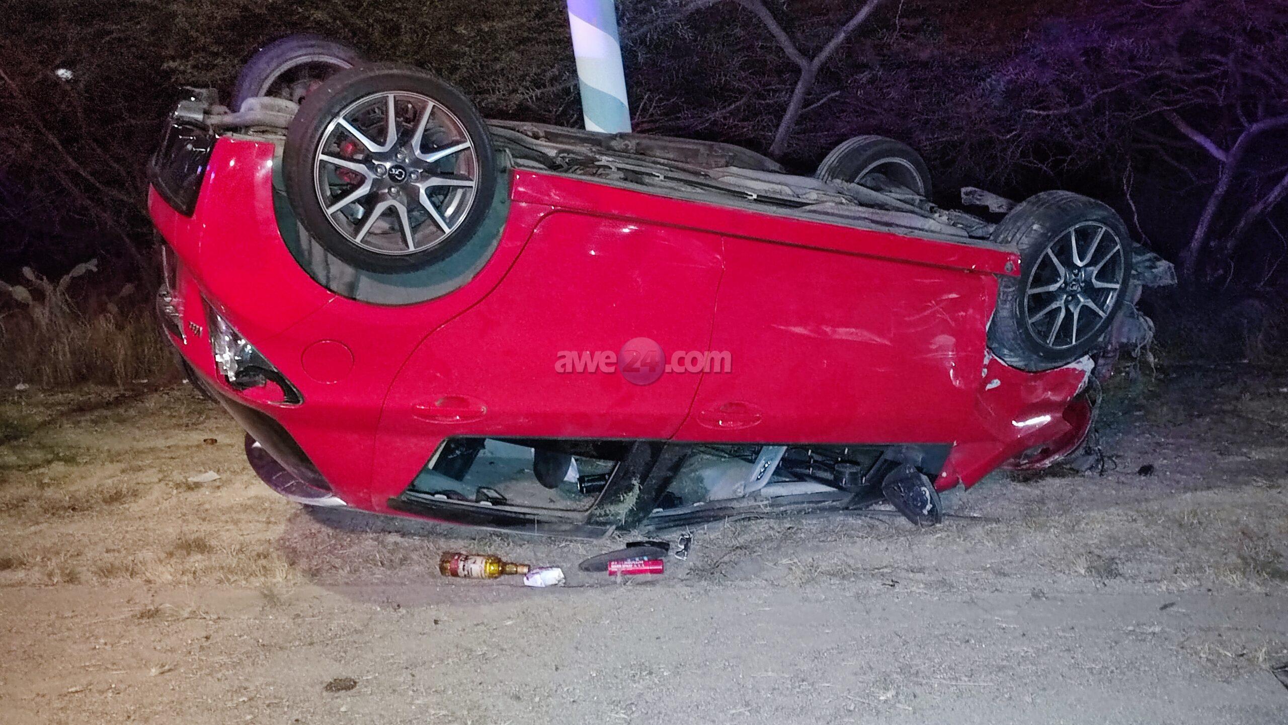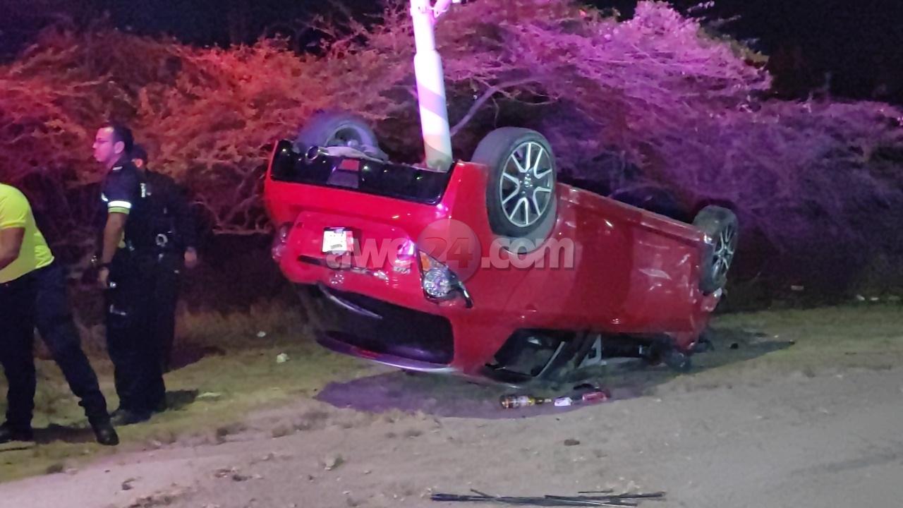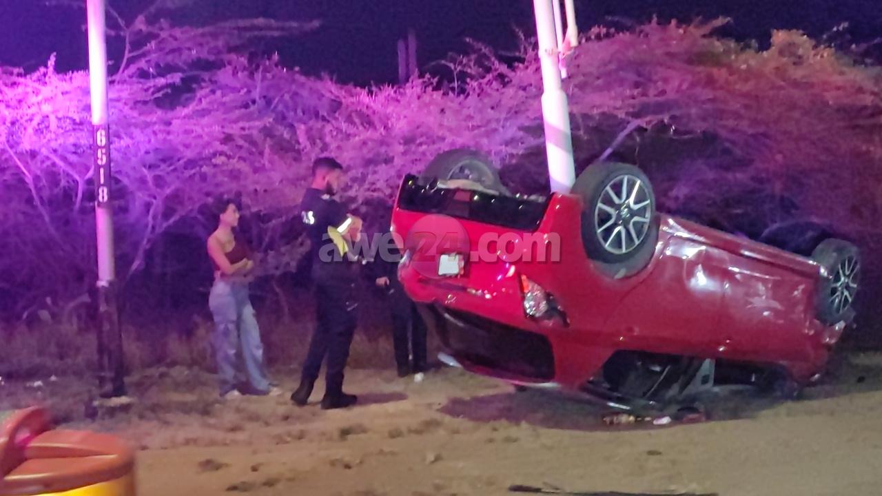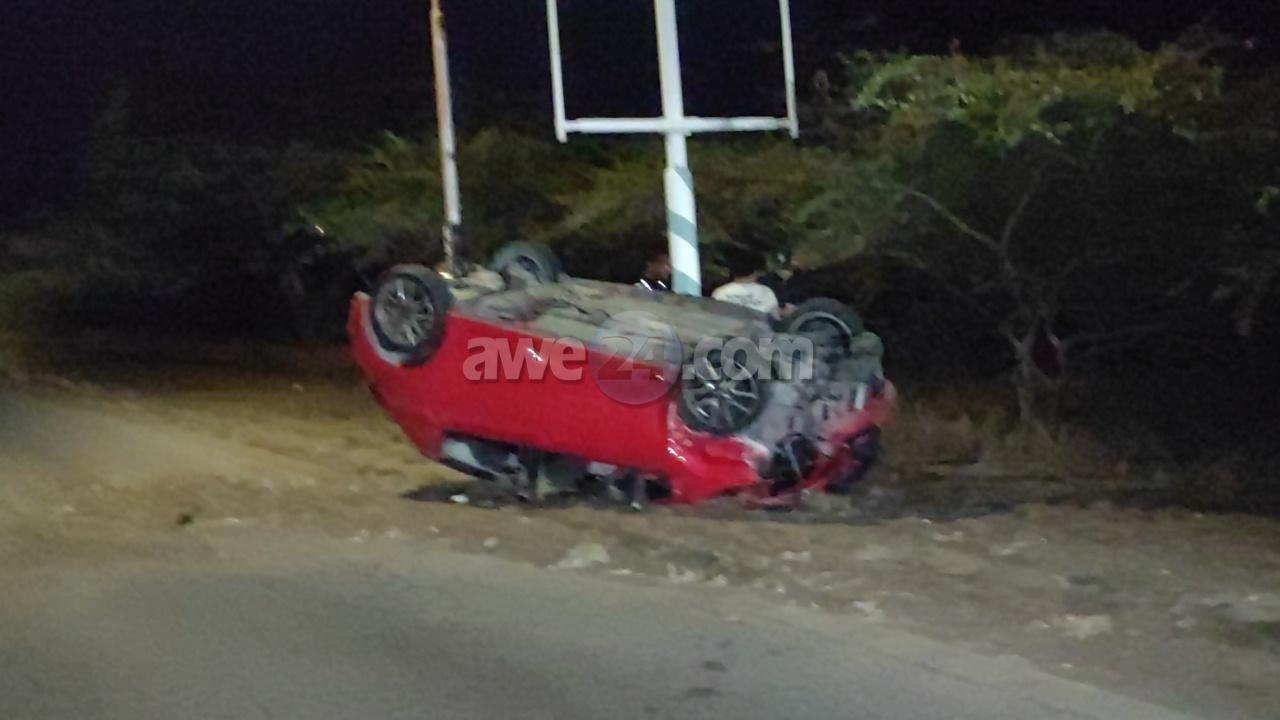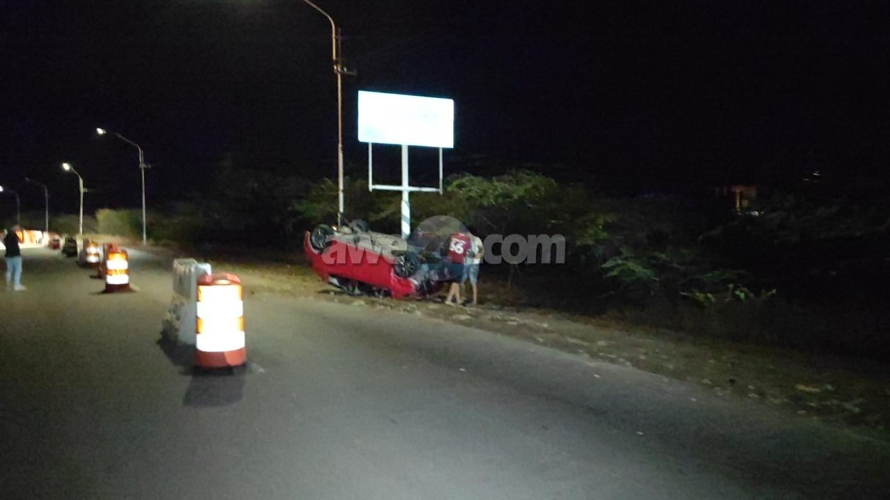 Den e ultimo minuutnan di dia di tata a drenta informe di un accidente cu hende herida riba Sasakiweg, mesora a dirigi tanto polis como ambulans na e sitio. Na yegada di e patruya a bin compronde cu aki ta trata di un accidente unda e dama chauffeur di un auto Toyota bayendo nort cu velocidad halto a perde control dal contra e baricadanan di plastic na Sasakiweg y bolter. Debi na esaki e 2 pasaheronan masculino a resulta herida y tabata keha di dolor. Na yegada di e ambulans nan a atende 2 di e victimanan y a transporta nan pa hospital. mientras cu e dama chauffeur y un otro pasahero femenino a sali ileso.