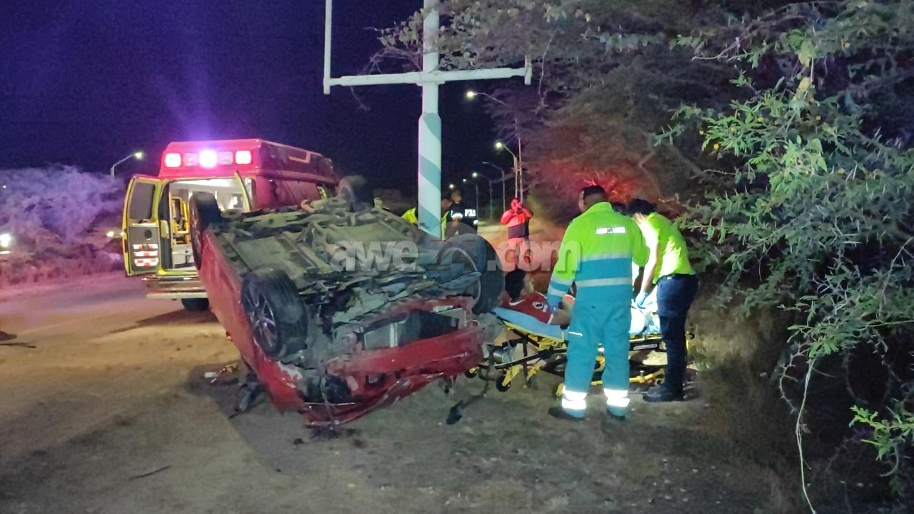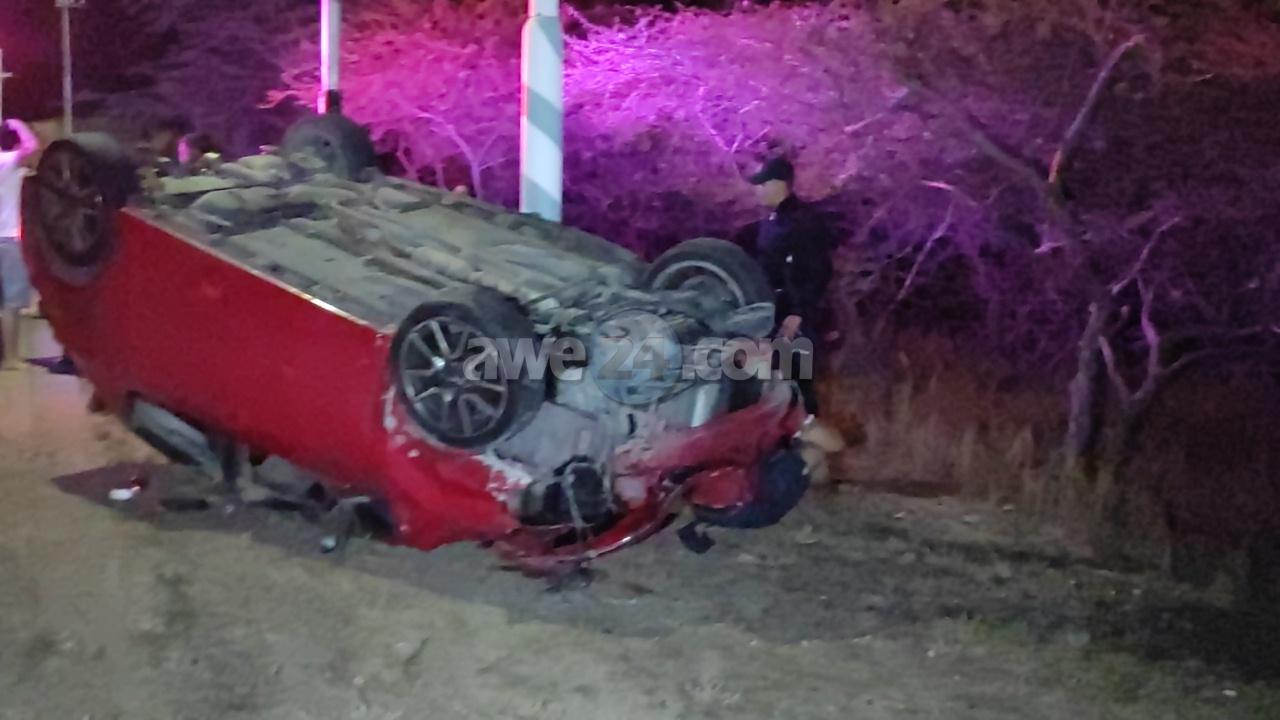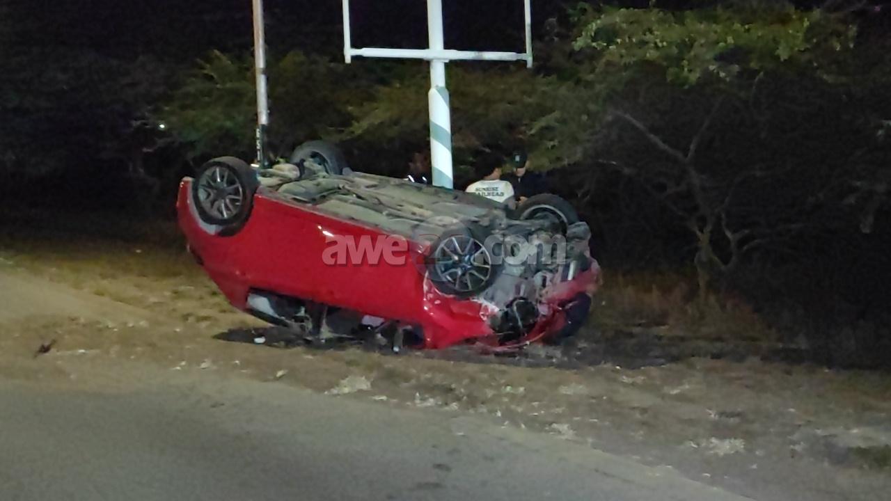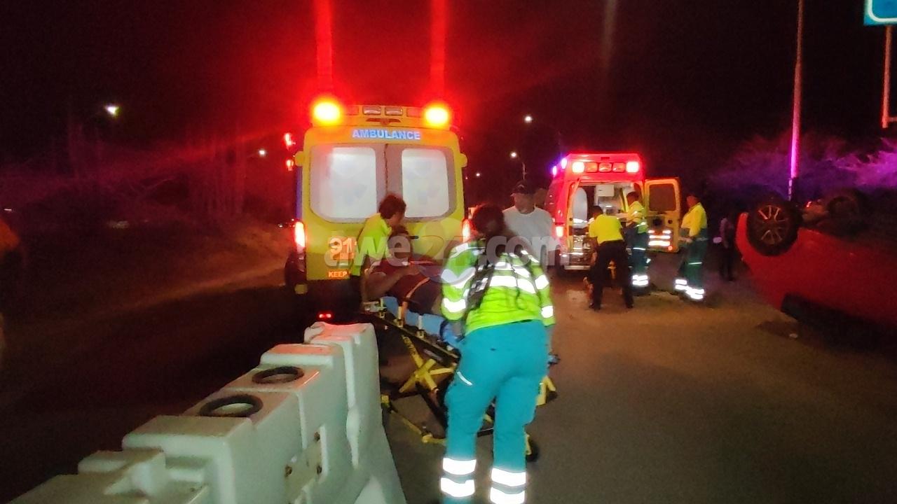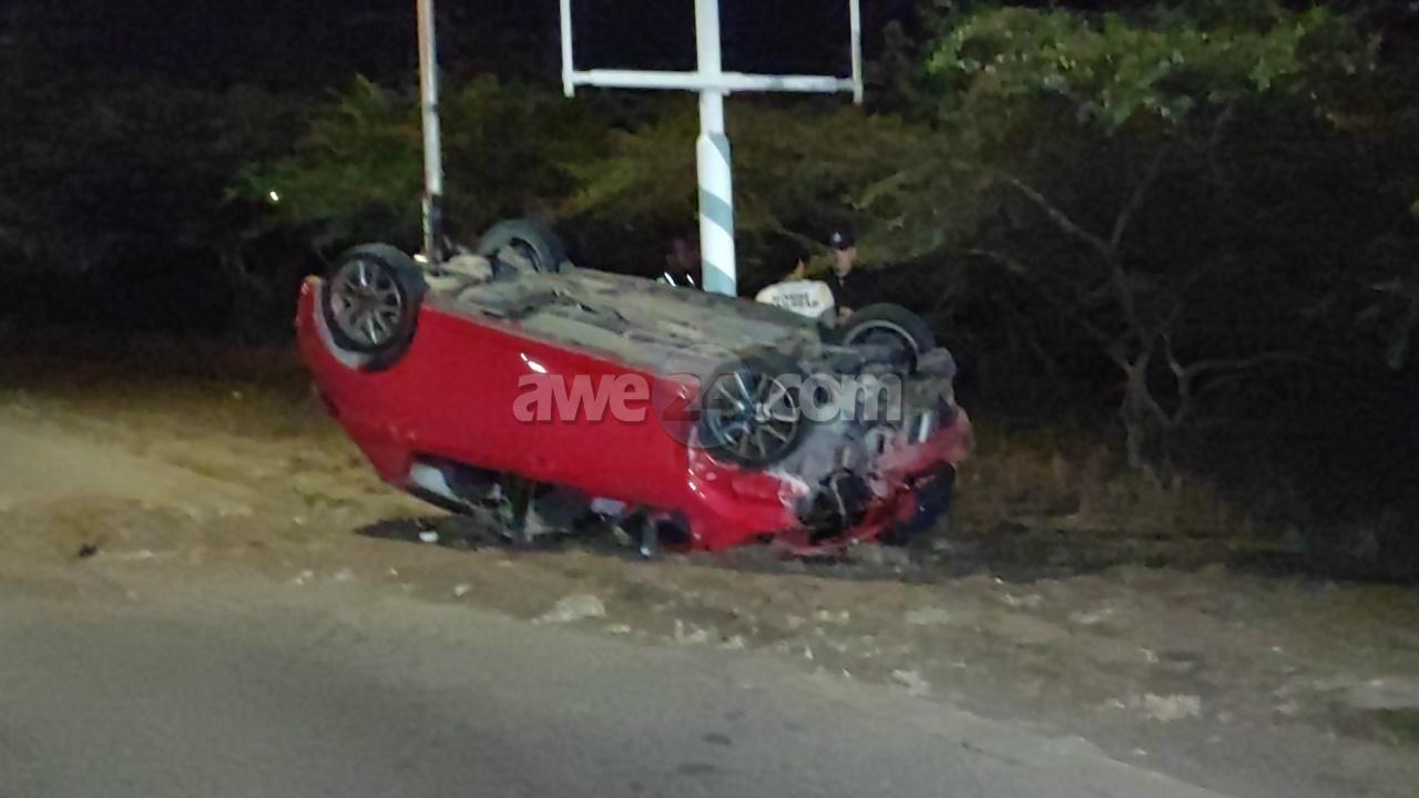 Den e ultimo minuutnan di dia di tata a drenta informe di un accidente cu hende herida riba Sasakiweg, mesora a dirigi tanto polis como ambulans na e sitio. Na yegada di e patruya a bin compronde cu aki ta trata di un accidente unda e dama chauffeur di un auto Toyota bayendo nort cu velocidad halto a perde control dal contra e baricadanan di plastic na Sasakiweg y bolter. Debi na esaki e 2 pasaheronan masculino a resulta herida y tabata keha di dolor. Na yegada di e ambulans nan a atende 2 di e victimanan y a transporta nan pa hospital. mientras cu e dama chauffeur y un otro pasahero femenino a sali ileso.