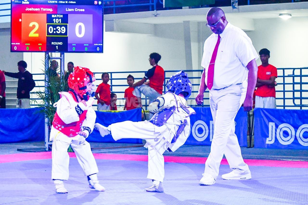 ORANJESTAD: Diasabra mainta, a tuma luga apertura di e di 23 edicion di Taekwondo del Caribe Aruba 2024 organisa pa Stichting Tiger Taekwondo Academy y Impact Taekwondo Aruba. Alrededor di 100 atleta di diferente pais entre otro, Colombia, Surnam, Honduras, Guadeloupe, Curaçao y Aruba a competi den e torneo. Minister di Deporte Endy Croes a atende e ceremonia di apertura, unda cu el a hiba palabra y a declara e campeonato oficialmente habri. Ademas di esaki, a gradici Sr. Theofilo Rodriguez, Sr. Moises Fernandez, Sr. Guaicaipuro Jimenez, Sra. Marilu de Veer y Sra. Soraida Boekhoudt pa nan gran contribucion na e deporte di taekwondo. Pa finalisa, Minister Endy Croes ta gradici pa e invitacion y ta felicita Sr. Theo Rodriguez y e comision pa organisa un otro exitoso campeonato di taekwondo.
