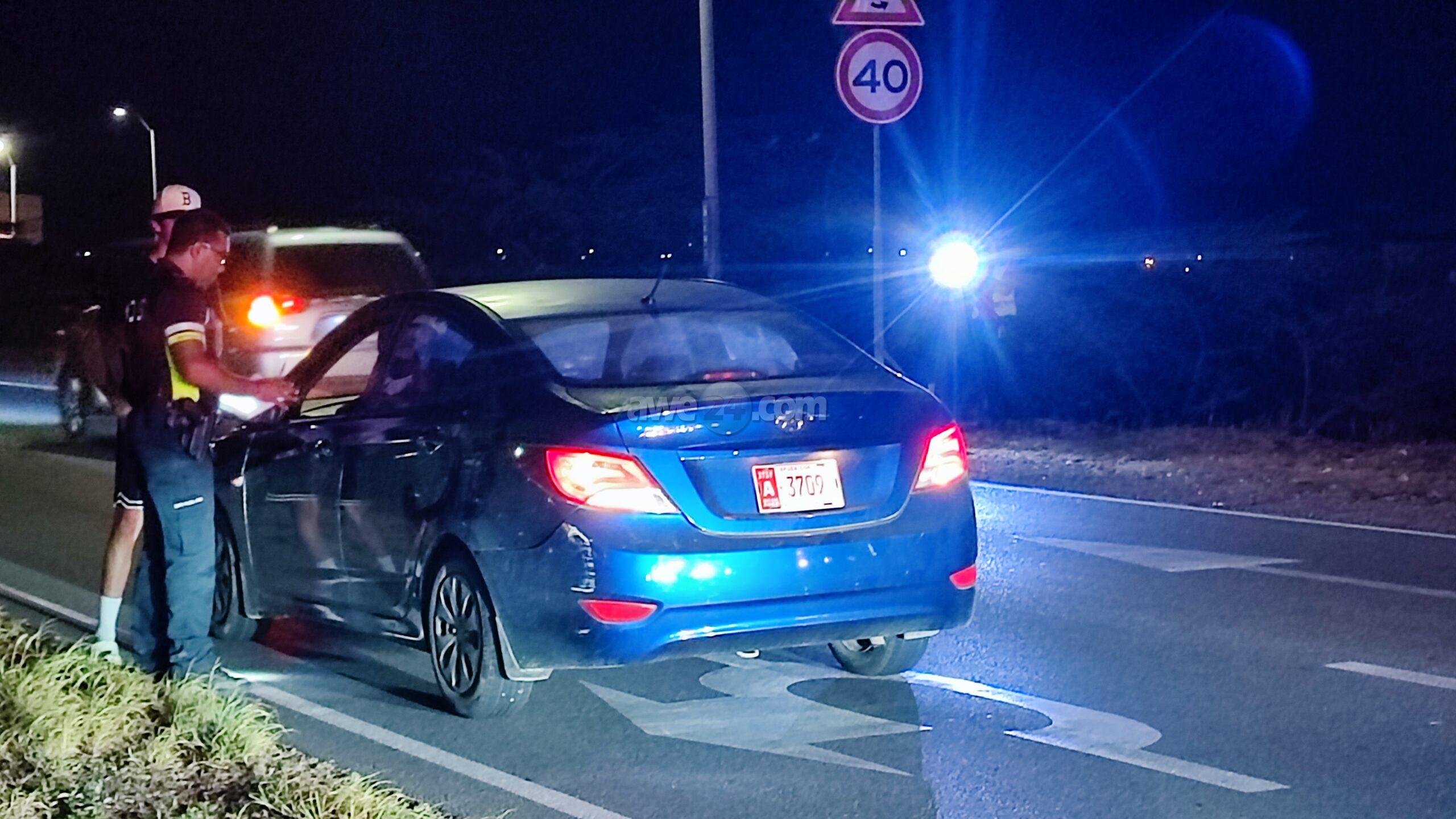 Diamars anochi a drenta informe di un accidente riba Sasakiweg, mesora a dirigi un patruya na e sitio. Na yegada di e patruya a bin compronde cu aki ta trata di un accidente hit & run unda cu un auto a dal un Hyundai Accent y a sigui core bay. E chauffeur a logra tuma nota di e number y e modelo di auto cu a core bay y a bisa polis esey. Polis a pasa e informacion aki pa departamento di polis di trafico cual lo presenta un momento inespera serca dje pa atende e accidente aki cun’e.