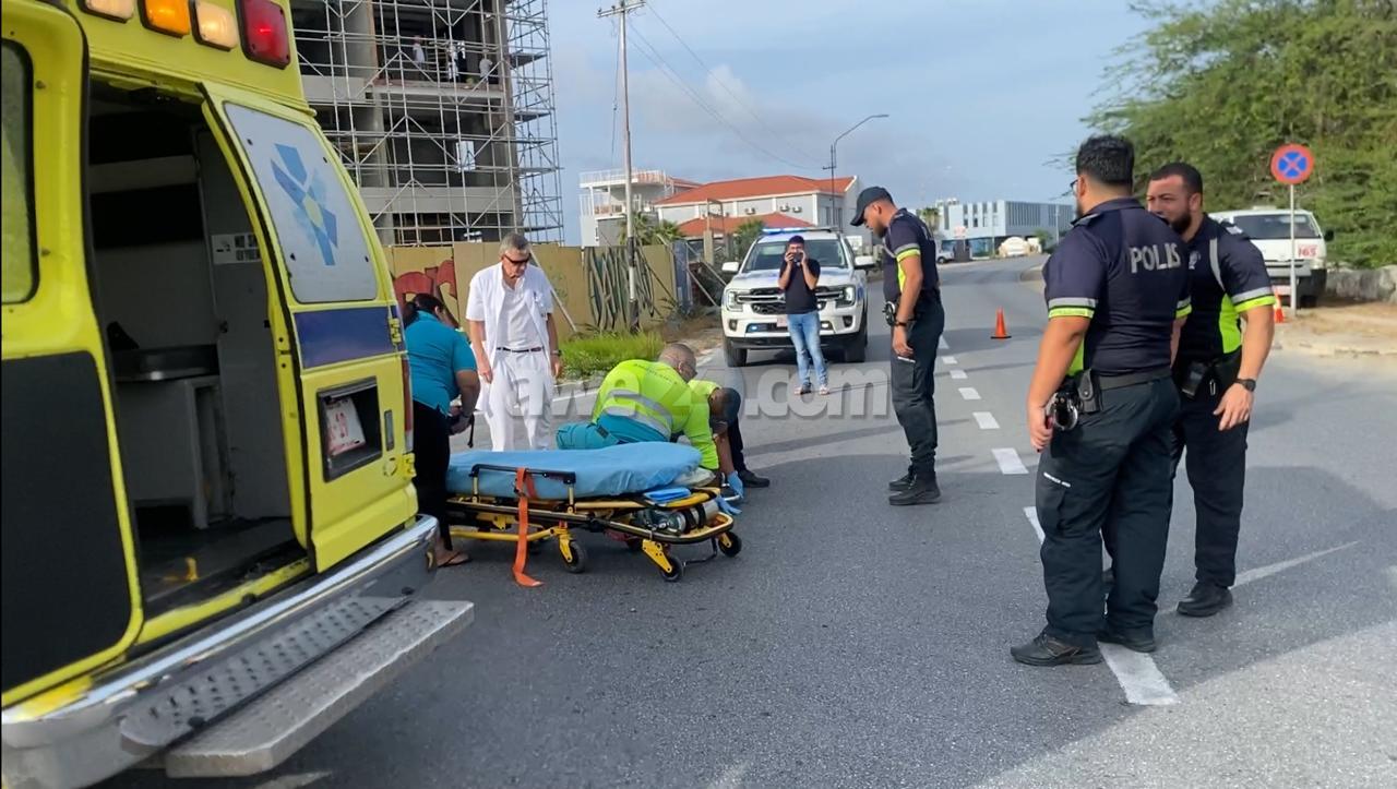Diahuebs atardi a drenta informe di un accidente cu hende herida na e crusada Caya Punta Brabo cu Dr. Horacio Oduber Blvd., mesora a dirigi tanto polis como ambulans na e sitio. Na yegada di e patruya a bin compronde cu aki ta trata di un accidente unda cu e chauffeur di un Kia Sportage a bay bira na su man drechi pero no a mira e ciclista riba un bais electrico na banda drechi di dje y a dal e bente abao. Aparentemente e ciclista lo a fractura su pia y tabata keha di hopi dolor. Na yegada di e ambulans nan a atende y a transporte pa hospital.