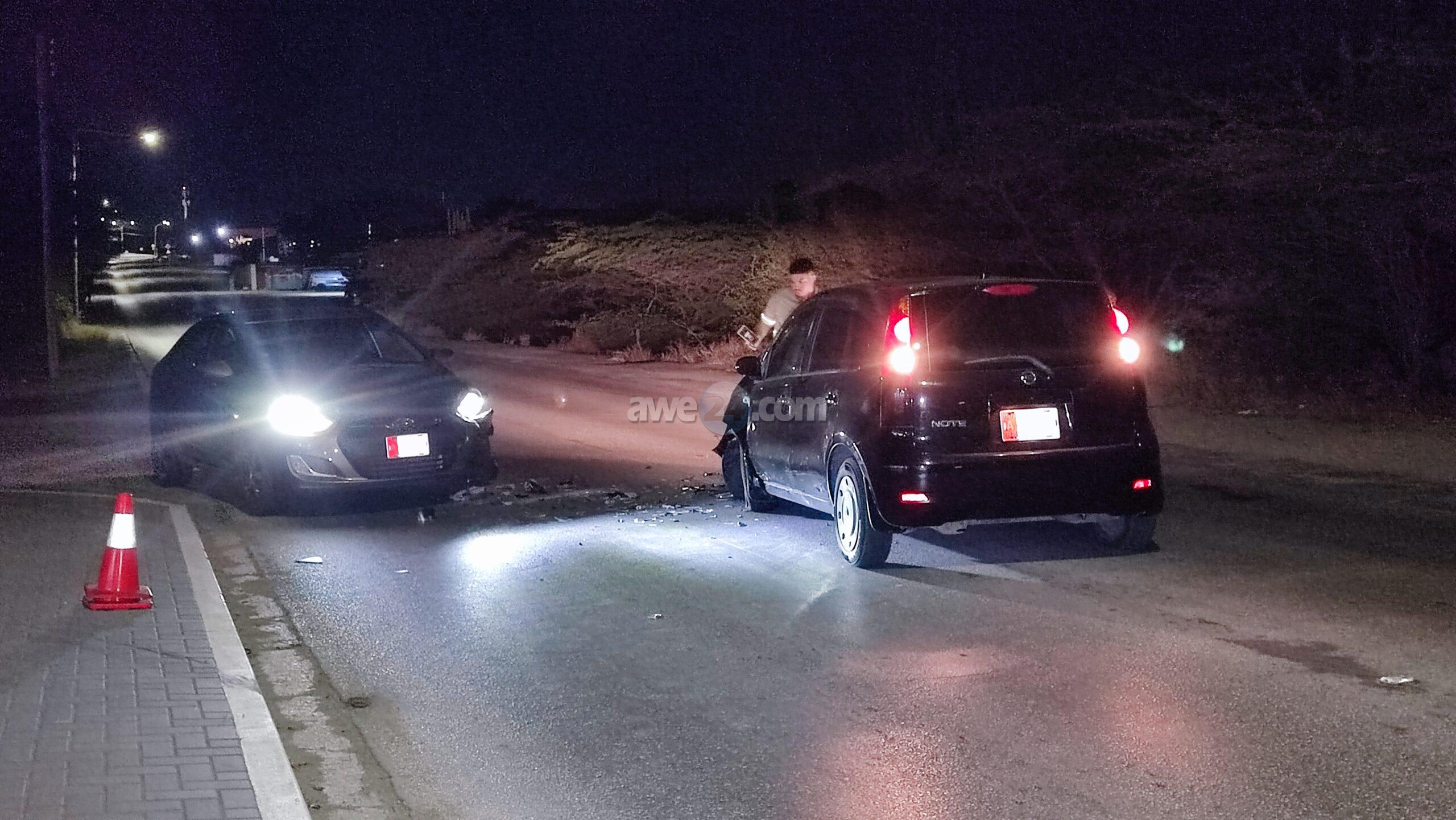 Diabierna madruga a drenta informe di un accidente na Paradera, mesora a dirigi un patruya na e sitio. Na yegada di e patruya a bin compronde cu aki ta trata di un accidente unda cu un dama chauffeur coriendo un auto bao influencia a bay banda robes di caminda cu su Nissan Note y a bay dal frontal riba un Hyundai Accent. Afortunadamente ningun hende a resulta herida. Polis a detene e dama chauffeur ya cu e tabata core auto bao influencia di alcohol y a ocasiona un accidente.