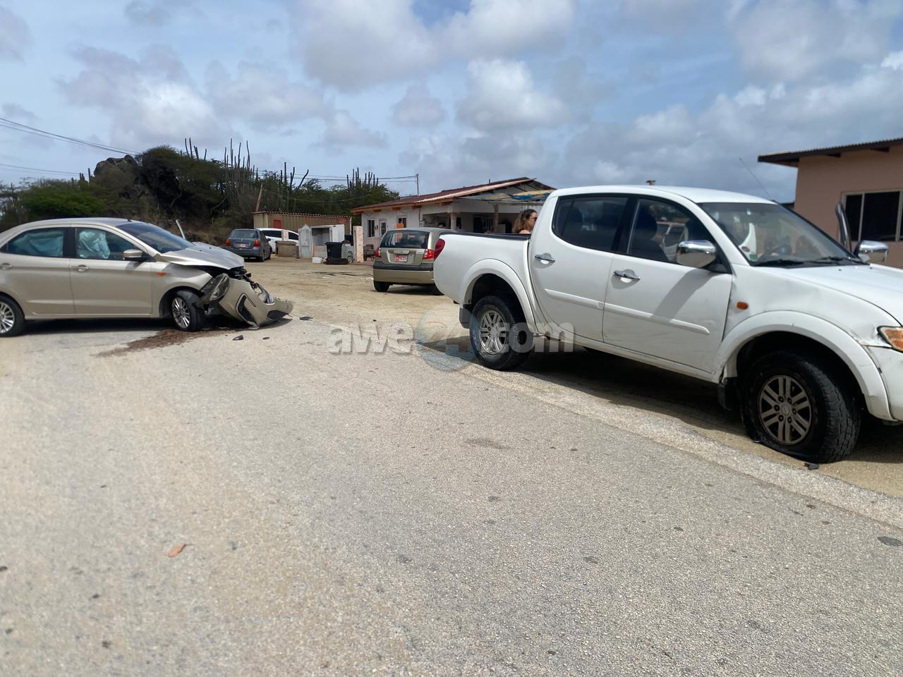 Diamars atardi a drenta informe di un accidente cu hende herida na Rooi Afor, mesora a dirigi tanto polis como ambulans na e sitio. Na yegada di e patruya a bin compronde cu aki ta trata di un accidente unda cu e chauffeur di un Ford Figo saliendo for di un caminda di tera no a duna e chauffeur di un Mitsubishi Sportero L200 biniendo for di pariba. Den e Ford Figo tabata tin un dama di edad cu ta sufri di curason y tabata na banda como pasahero y tabata keha di dolor. Mientras den e Mitsubishi Sportero L200 tabata tin un dama na estado di 7 luna y pa tur segurida a pidi un ambulans extra pa bay hibe e dama pa un control medico ya cu e tabata keha di dolor.