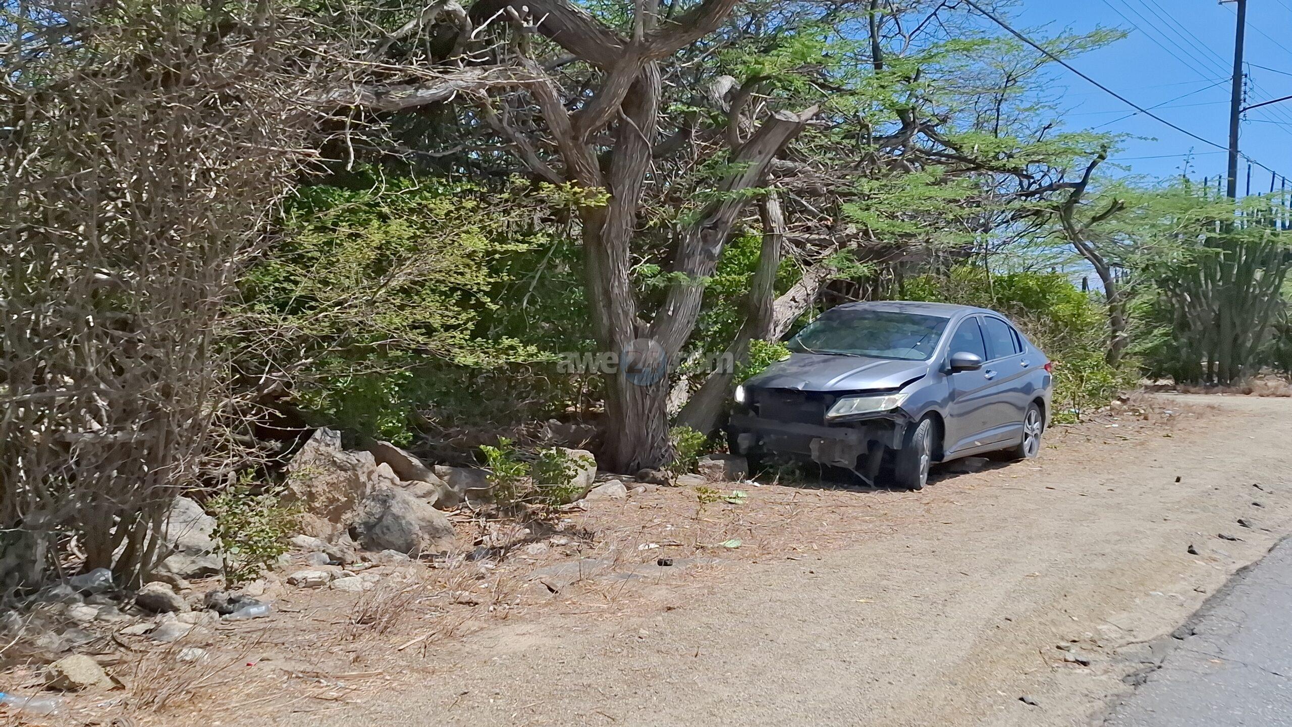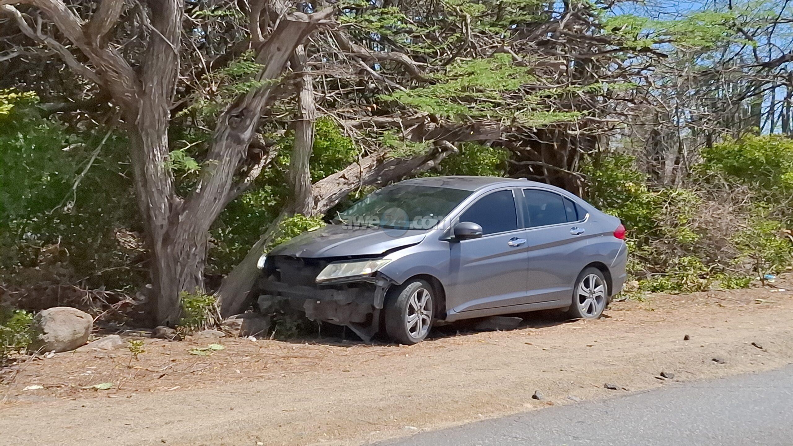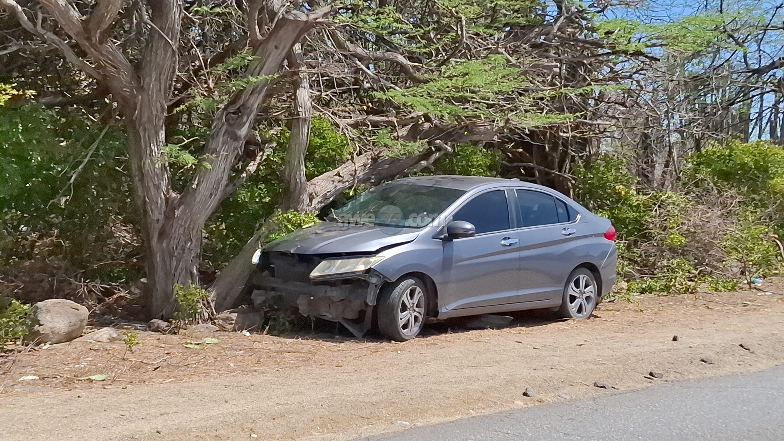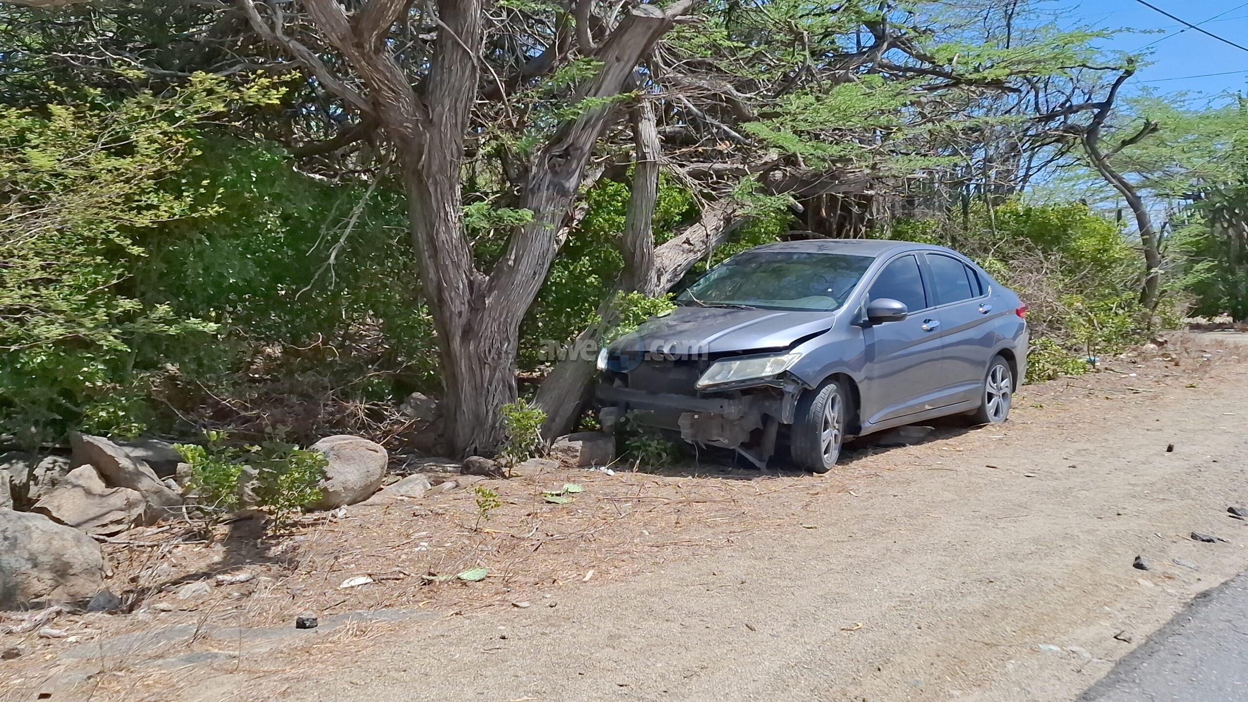 Diaranson atardi a drenta informe di un accidente na Siribana, mesora a dirigi un patruya na e sitio. Na yegada di e patruya a bin haya un Honda City pega na un troncon di un mata pero no a haya e chauffeur. Como no a haya ningun hende eynan, no tabata tin daño na otro y no tabata stroba den caminda polis a djies tuma e number y a bay traha e raport di e incidente aki.