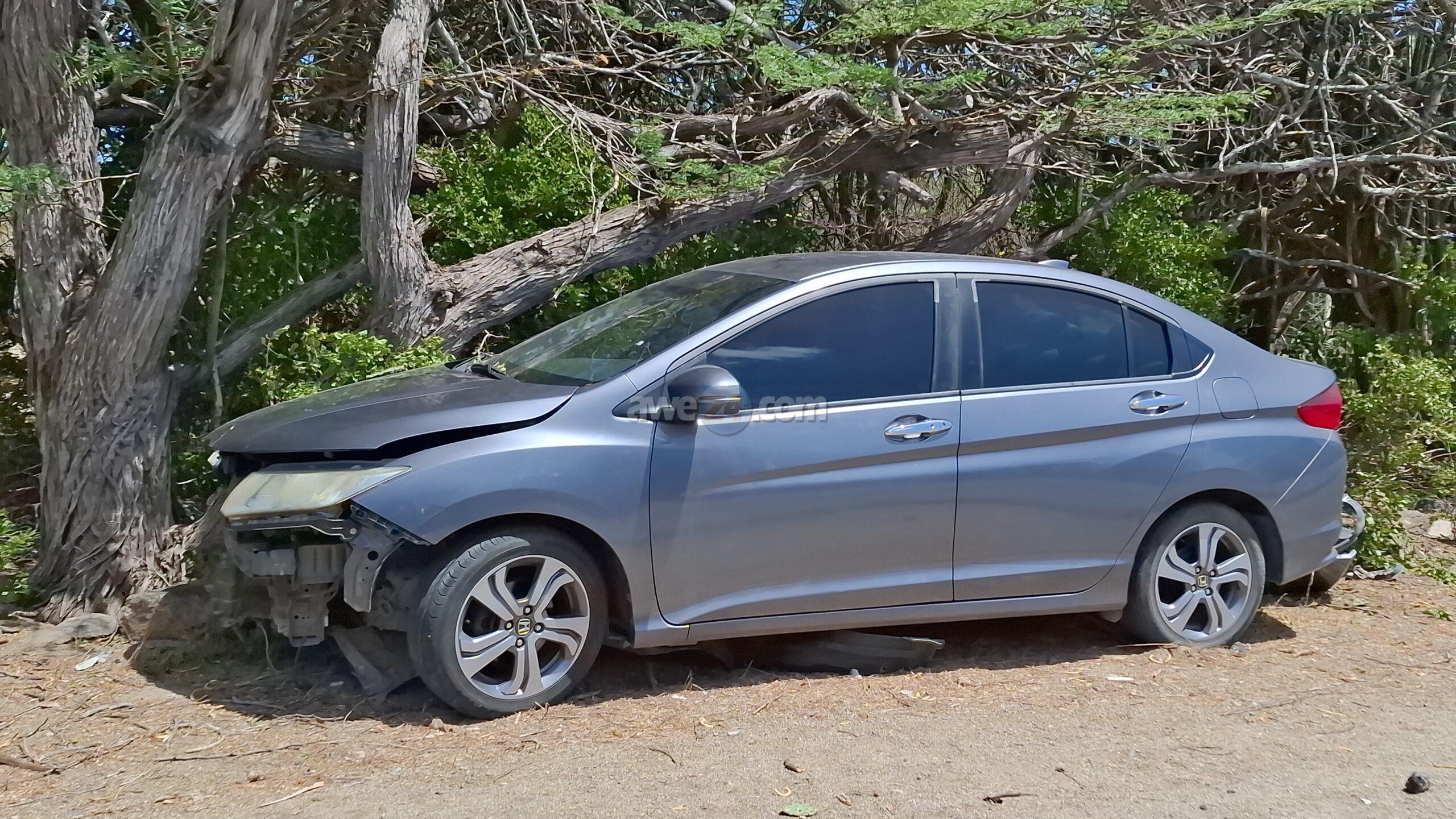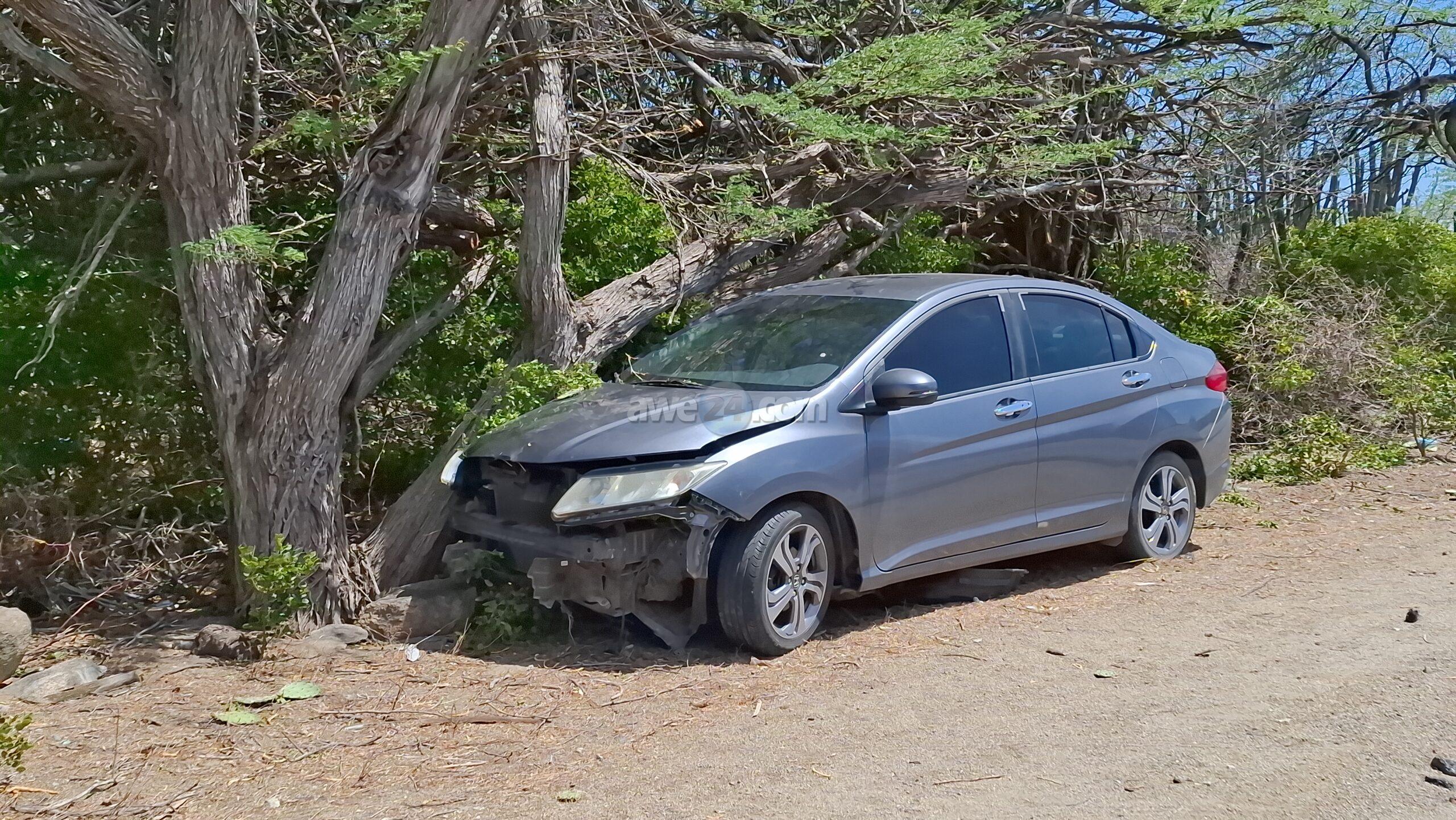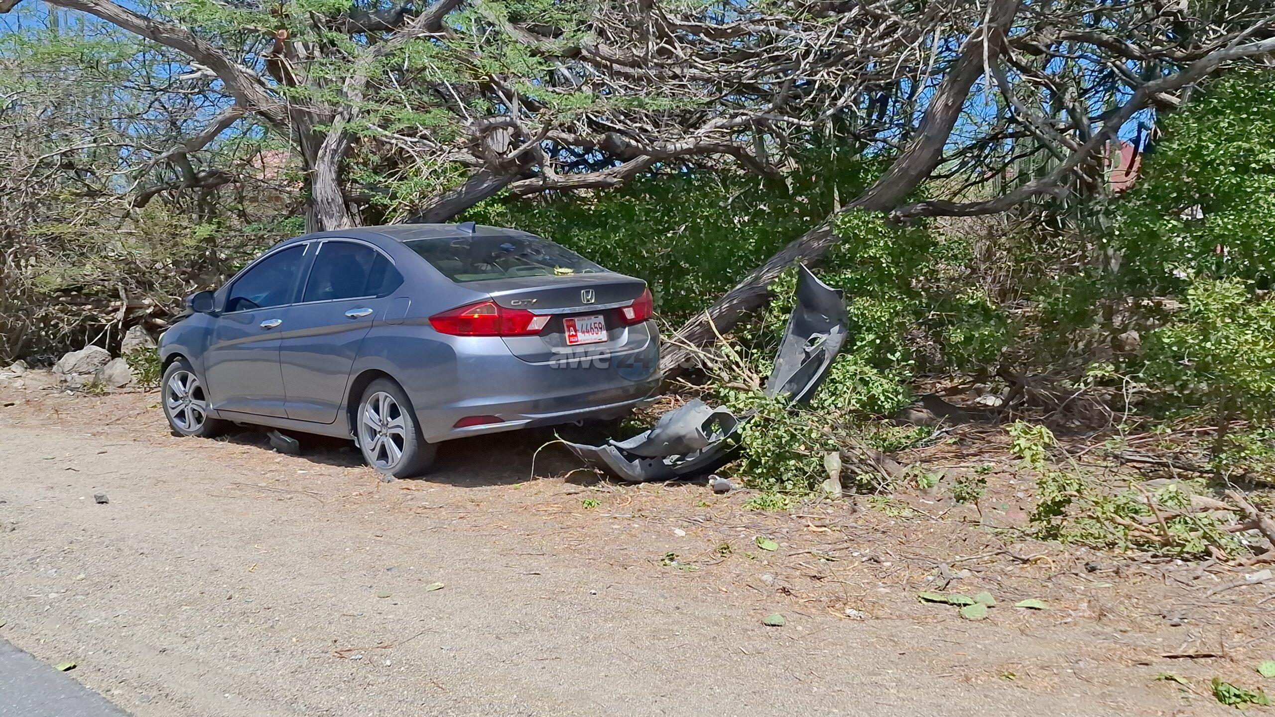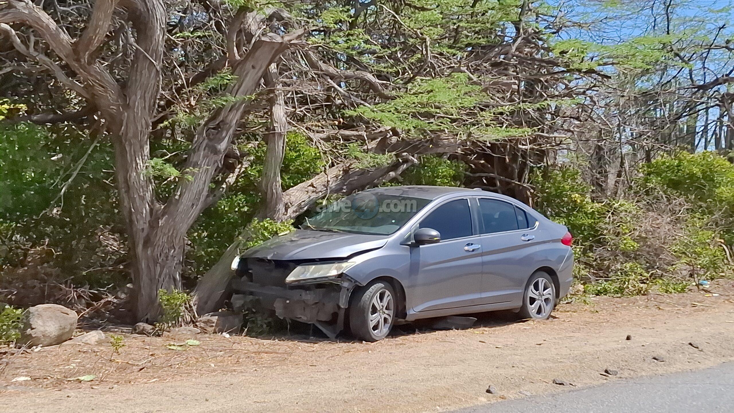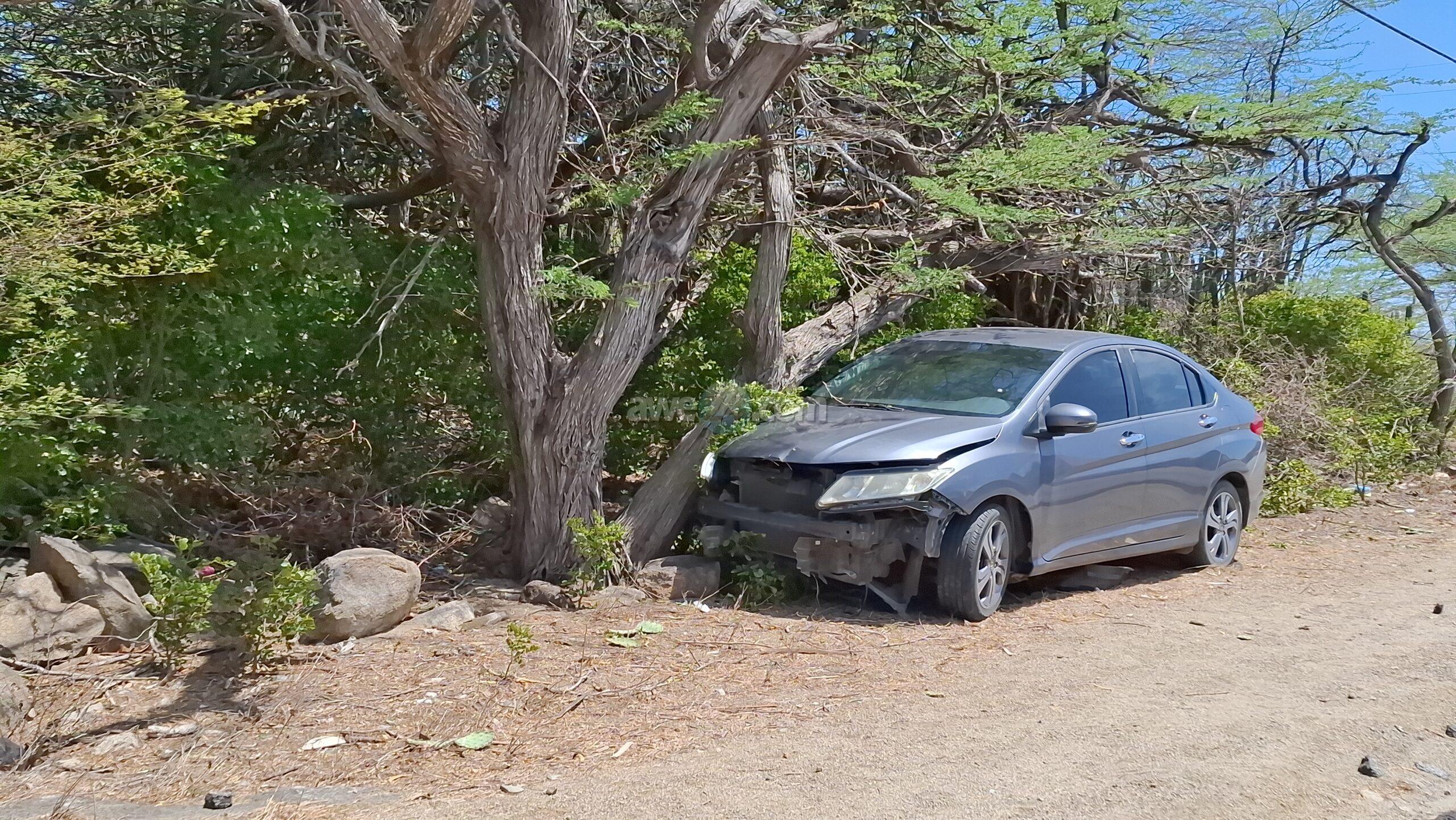 Diaranson atardi a drenta informe di un accidente na Siribana, mesora a dirigi un patruya na e sitio. Na yegada di e patruya a bin haya un Honda City pega na un troncon di un mata pero no a haya e chauffeur. Como no a haya ningun hende eynan, no tabata tin daño na otro y no tabata stroba den caminda polis a djies tuma e number y a bay traha e raport di e incidente aki.