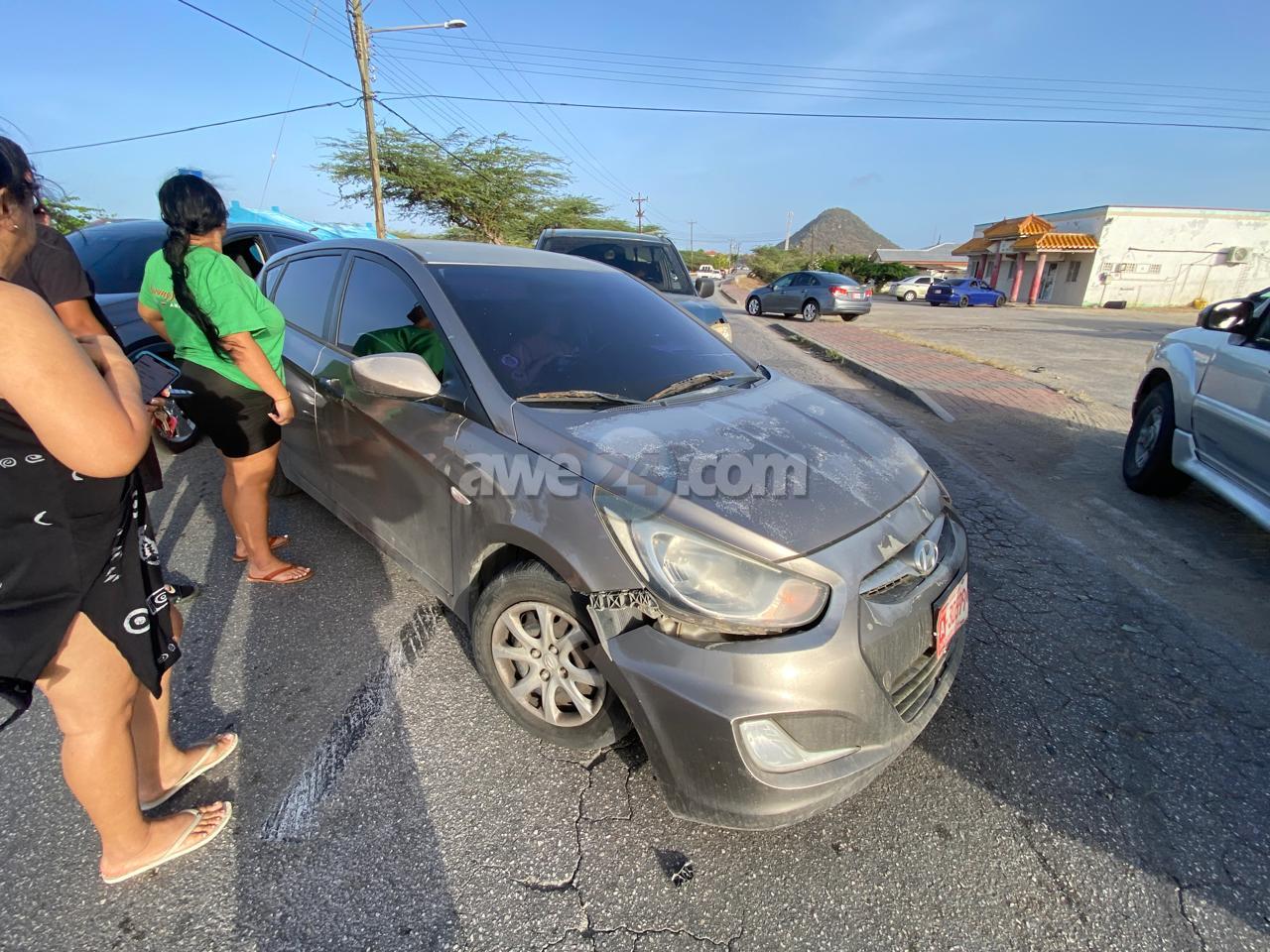 Diahuebs atardi a drenta informe di un accidente cu hende herida banda di Pacifico Paradera, mesora a dirigi tanto polis como ambulans na e sitio. Na yegada di e patruya a bin compronde cu aki ta trata di un accidente pa falta di preferencia unda e chauffeur di e hatchback no a duna preferencia na e pickup biniendo di pariba y a dal den dje. Debi na e impacto e dama na stuur di e auto a resulta herida y e mucha pasahero den e pickup. Na yegada di e ambulans nan a atende nan na e sitio mes.